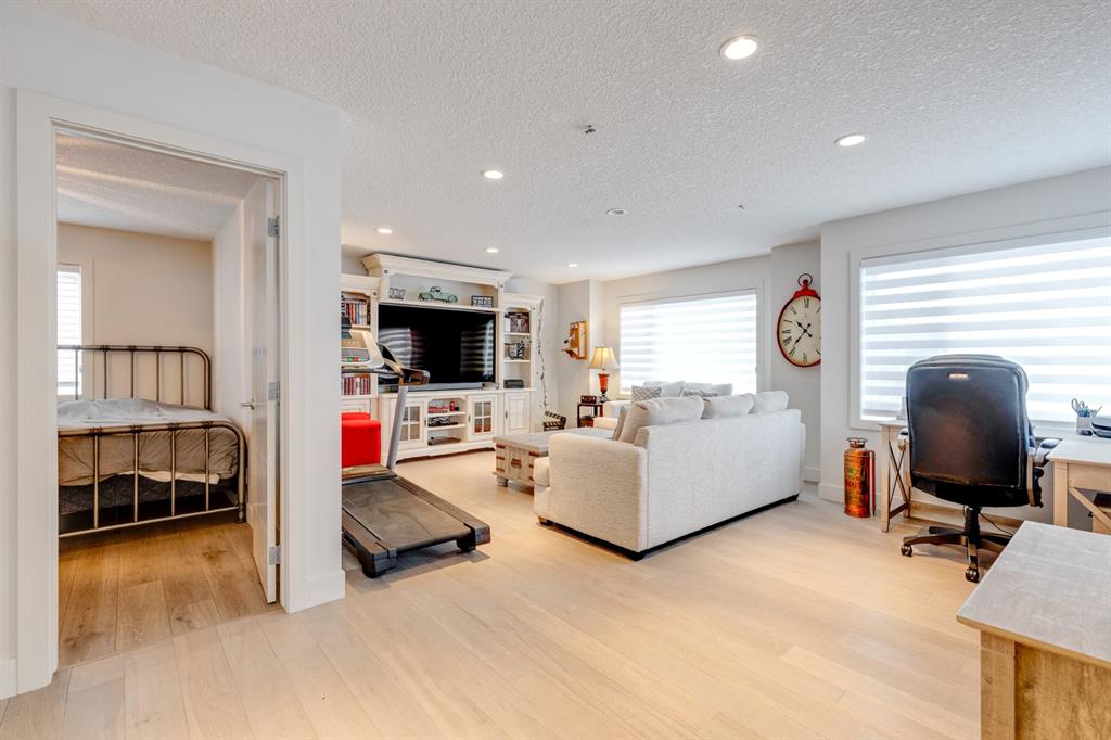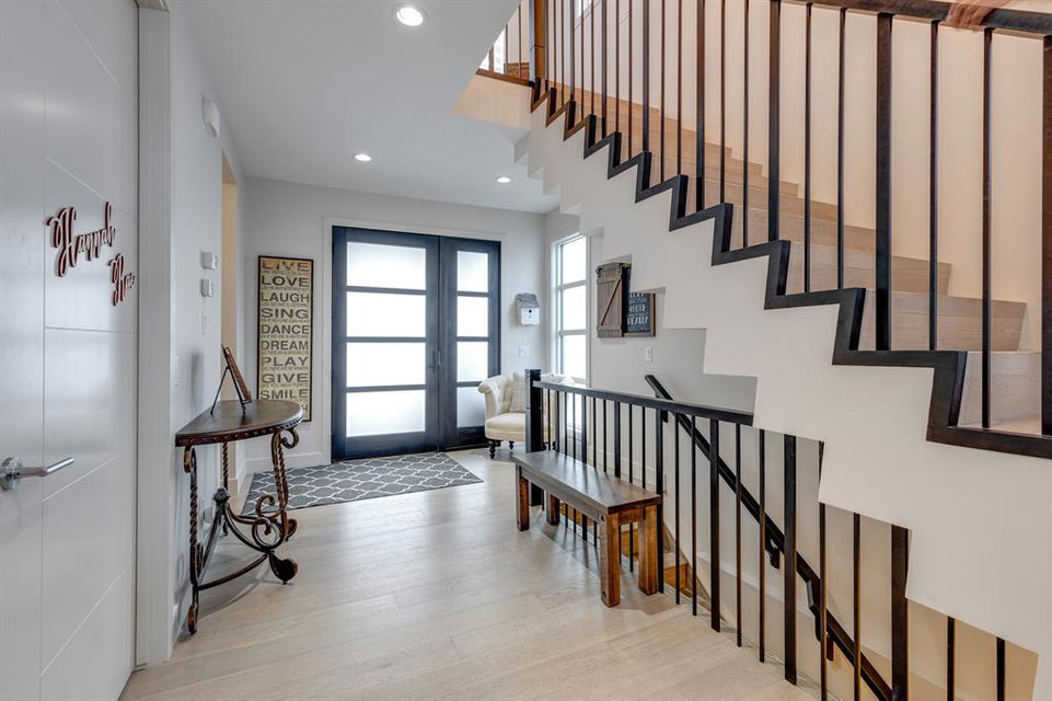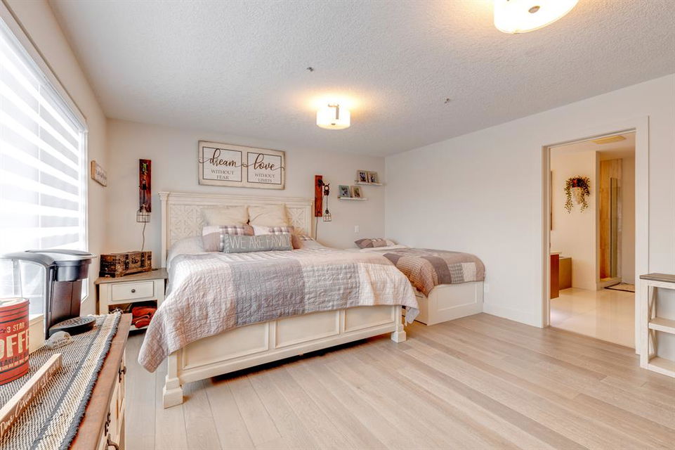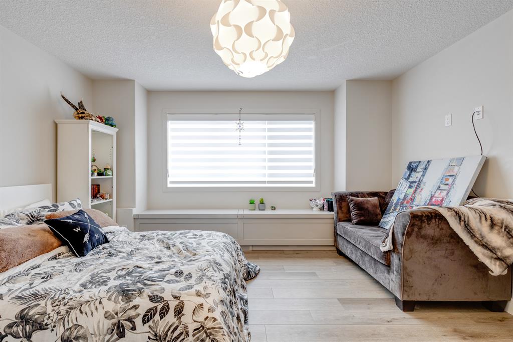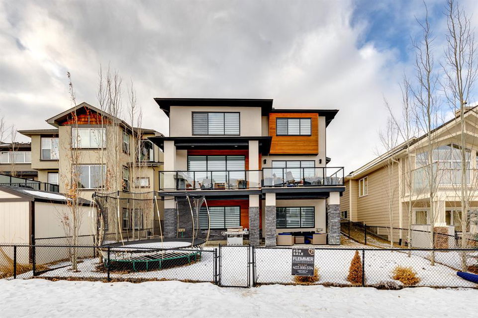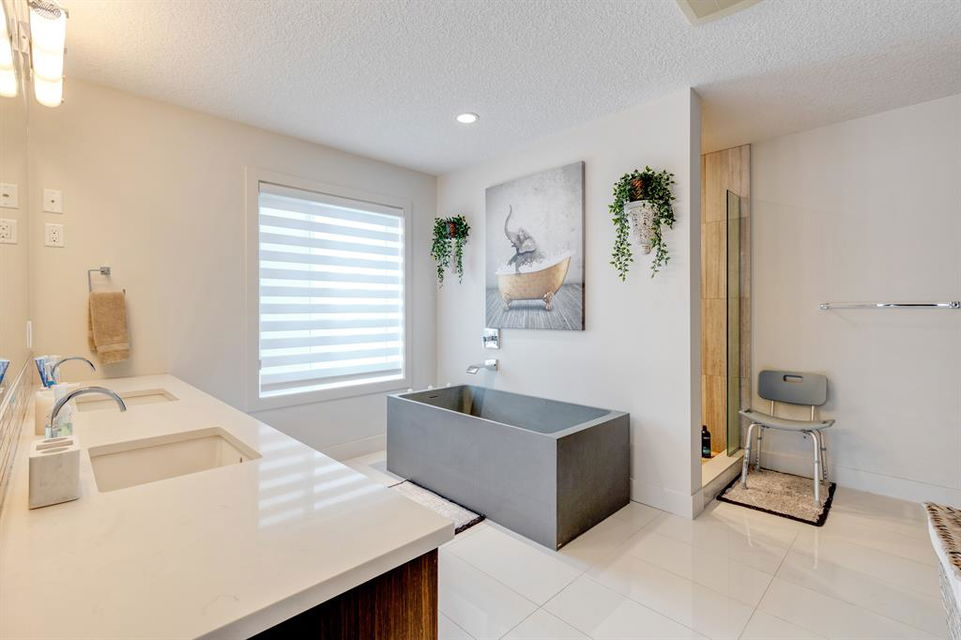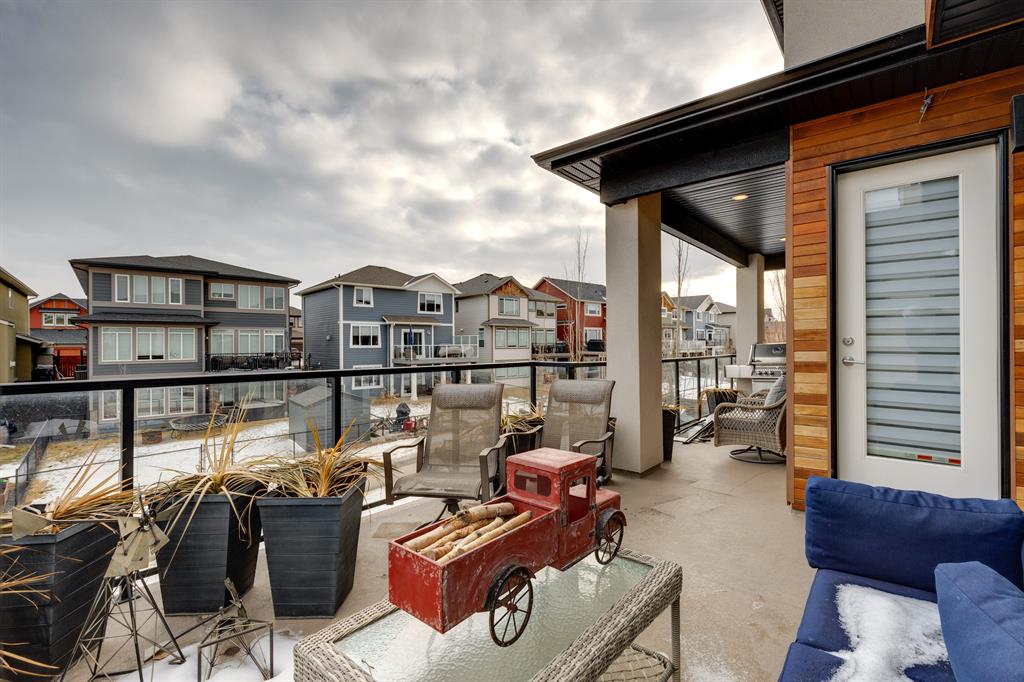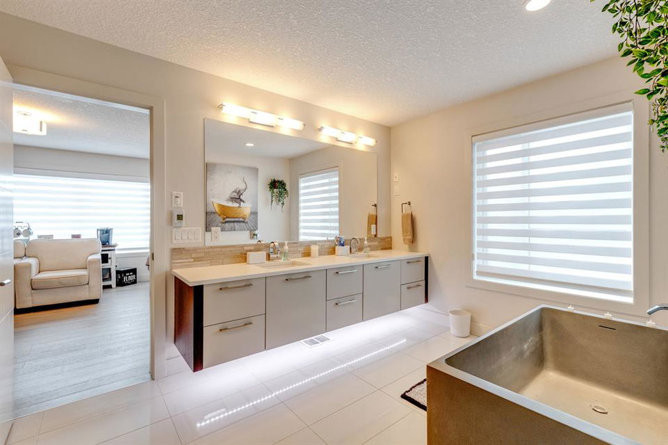 Don’t miss out on this phenomenal custom built home with modern luxury everywhere you look. From the moment you drive up this impressive home will wow you, starting with the oversized garage, extra wide front steps, and massive oversized front door. Inside the home is a dream come true. With over 2800 sq ft above and a full finished walkout basement there is ton of space to enjoy. Engineered hardwood flooring blankets the top two floors, while the 9′ ceilings and 8′ tall doors on the main level make the home feel extremely spacious. The kitchen is a showpiece, with a gigantic quartz island, high end Jenn Air appliances, and more cabinets than you’ll know what to do with. The upper cabinets near the stove have automatic openers, and the pantry style cabinets all have roll out inserts inside. There is a large pantry with built in shelving, and you can walk through into the mud room/laundry room on the main level. Inside the garage there is room for 2 large vehicles, including a full size truck, plus the vehicles will stay toasty warm thanks to the in floor heat in the garage. Other things you’ll love about the main level are the office space, impressive staircase and railings, plus access to a large east facing deck with gas line for your BBQ. Upstairs are 3 bedrooms plus a massive bonus room. All of the bathrooms have floating vanities with undercabinet lighting. The master suite is truly impressive, with ample room for king sized furniture. The ensuite is a dream with double vanities, free standing tub, and a huge tile shower with 2 shower heads. In the master closet there is a second set of laundry to make this tiresome chore a breeze. The fully finished walkout basement features bedrooms #4 and #5, as well as a full bathroom and a huge recreation room. In floor heat keeps the epoxy coated floor beautifully warm, and the large windows look out over the landscaped back yard that is separated from your neighbors by a walking path. In the mechanical room everything has been upgraded. The entire home runs off a high efficient boiler system that feeds the in floor heat, as well as two separate fan coil style furnaces. With too many custom upgrades to name you’ll need to come see this home for yourself. Book a showing with your favorite realtor today!