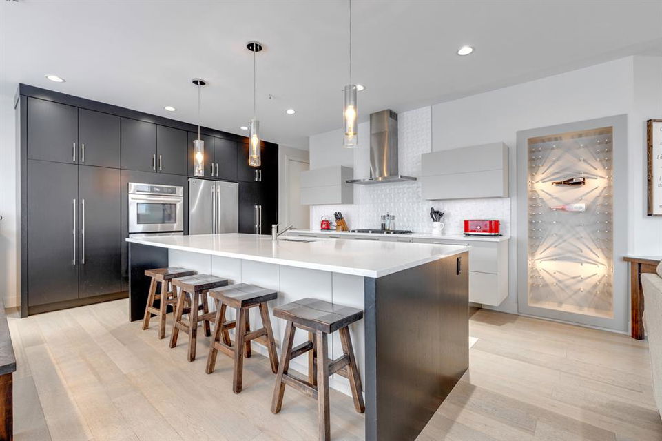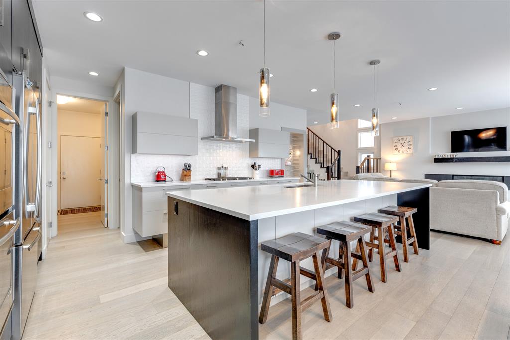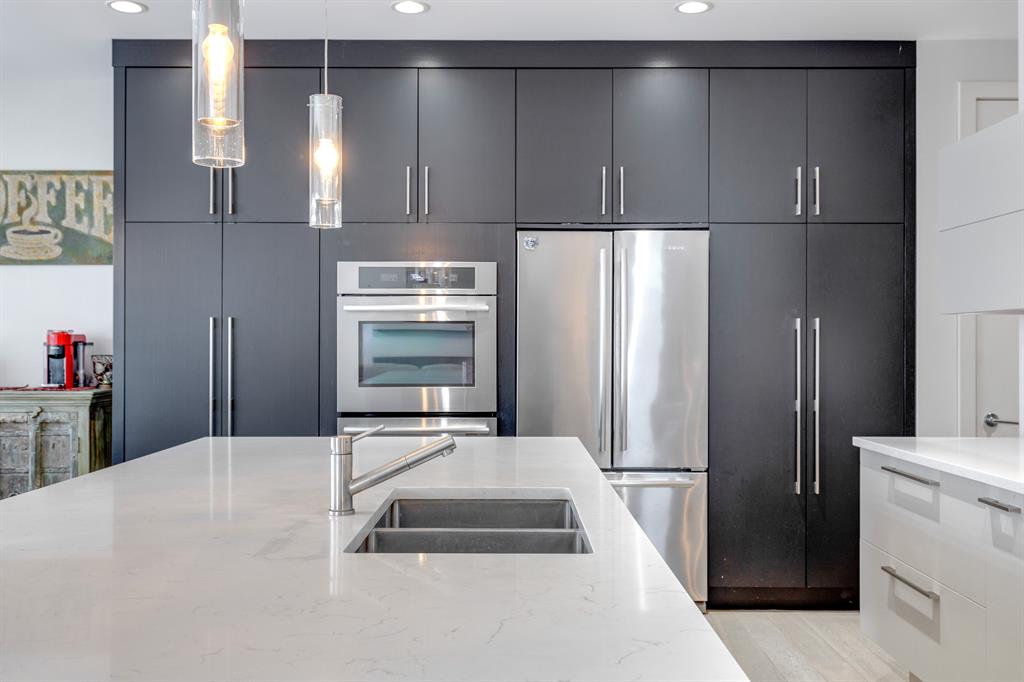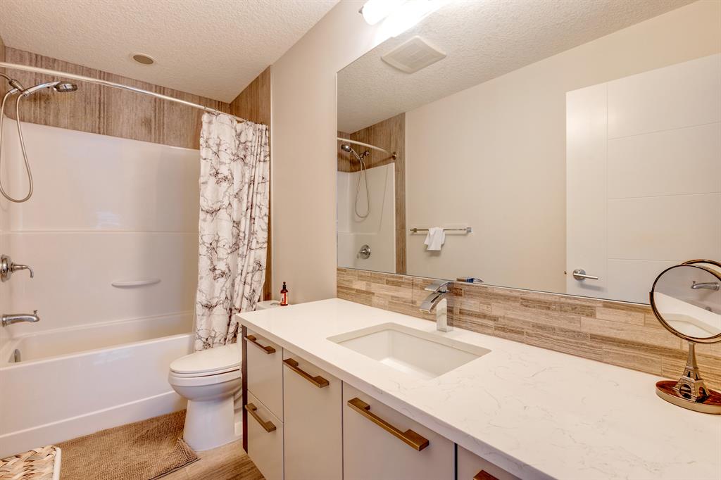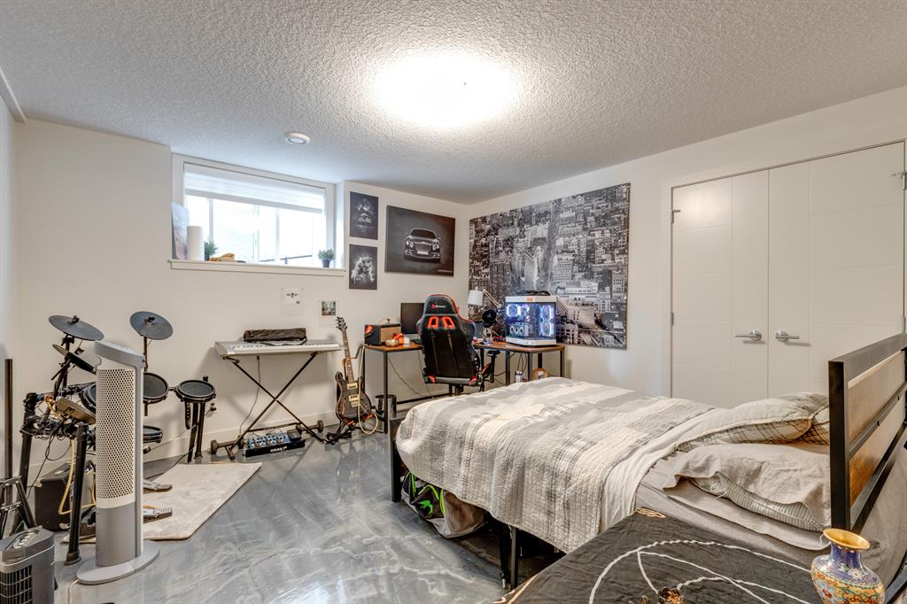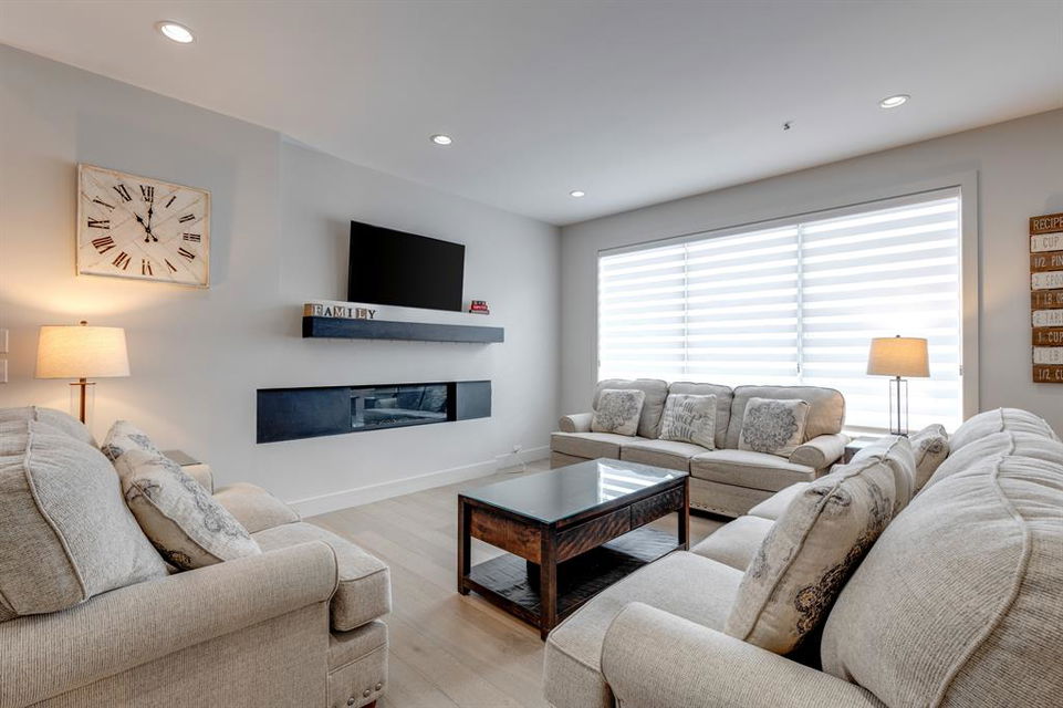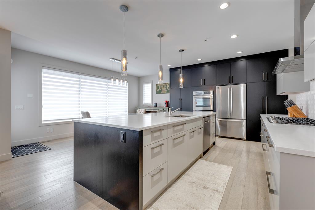 Don’t miss out on this phenomenal custom built home with modern luxury everywhere you look. From the moment you drive up this impressive home will wow you, starting with the oversized garage, extra wide front steps, and massive oversized front door. Inside the home is a dream come true. With over 2800 sq ft above and a full finished walkout basement there is ton of space to enjoy. Engineered hardwood flooring blankets the top two floors, while the 9′ ceilings and 8′ tall doors on the main level make the home feel extremely spacious. The kitchen is a showpiece, with a gigantic quartz island, high end Jenn Air appliances, and more cabinets than you’ll know what to do with. The upper cabinets near the stove have automatic openers, and the pantry style cabinets all have roll out inserts inside. There is a large pantry with built in shelving, and you can walk through into the mud room/laundry room on the main level. Inside the garage there is room for 2 large vehicles, including a full size truck, plus the vehicles will stay toasty warm thanks to the in floor heat in the garage. Other things you’ll love about the main level are the office space, impressive staircase and railings, plus access to a large east facing deck with gas line for your BBQ. Upstairs are 3 bedrooms plus a massive bonus room. All of the bathrooms have floating vanities with undercabinet lighting. The master suite is truly impressive, with ample room for king sized furniture. The ensuite is a dream with double vanities, free standing tub, and a huge tile shower with 2 shower heads. In the master closet there is a second set of laundry to make this tiresome chore a breeze. The fully finished walkout basement features bedrooms #4 and #5, as well as a full bathroom and a huge recreation room. In floor heat keeps the epoxy coated floor beautifully warm, and the large windows look out over the landscaped back yard that is separated from your neighbors by a walking path. In the mechanical room everything has been upgraded. The entire home runs off a high efficient boiler system that feeds the in floor heat, as well as two separate fan coil style furnaces. With too many custom upgrades to name you’ll need to come see this home for yourself. Book a showing with your favorite realtor today!