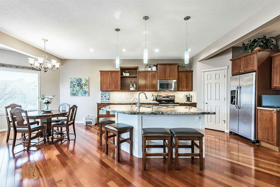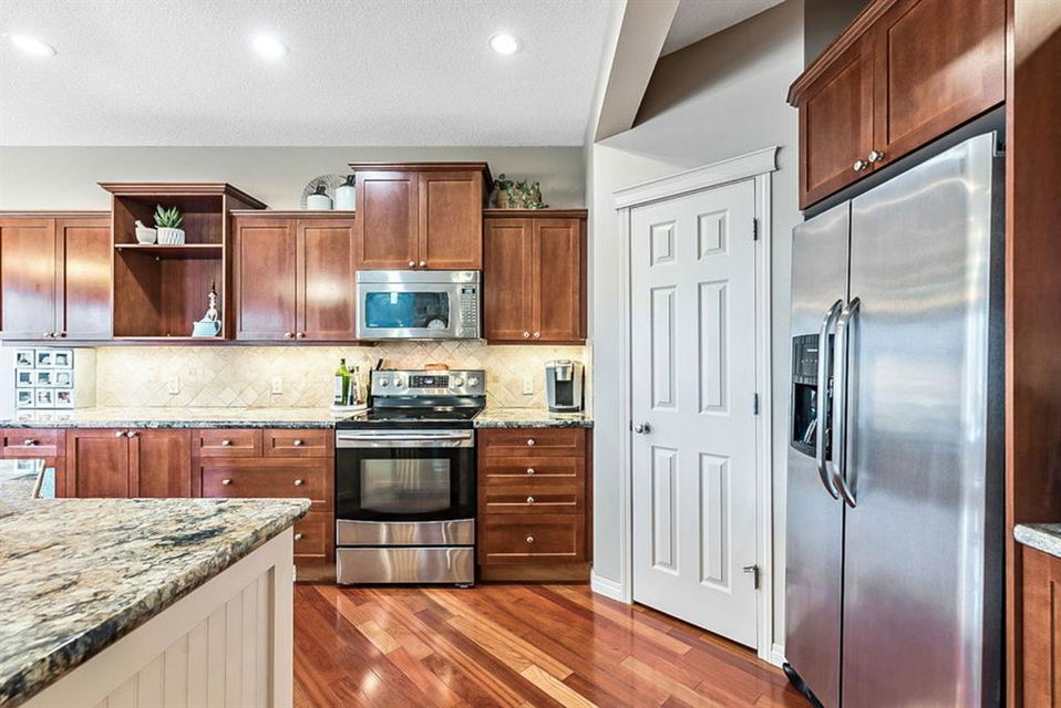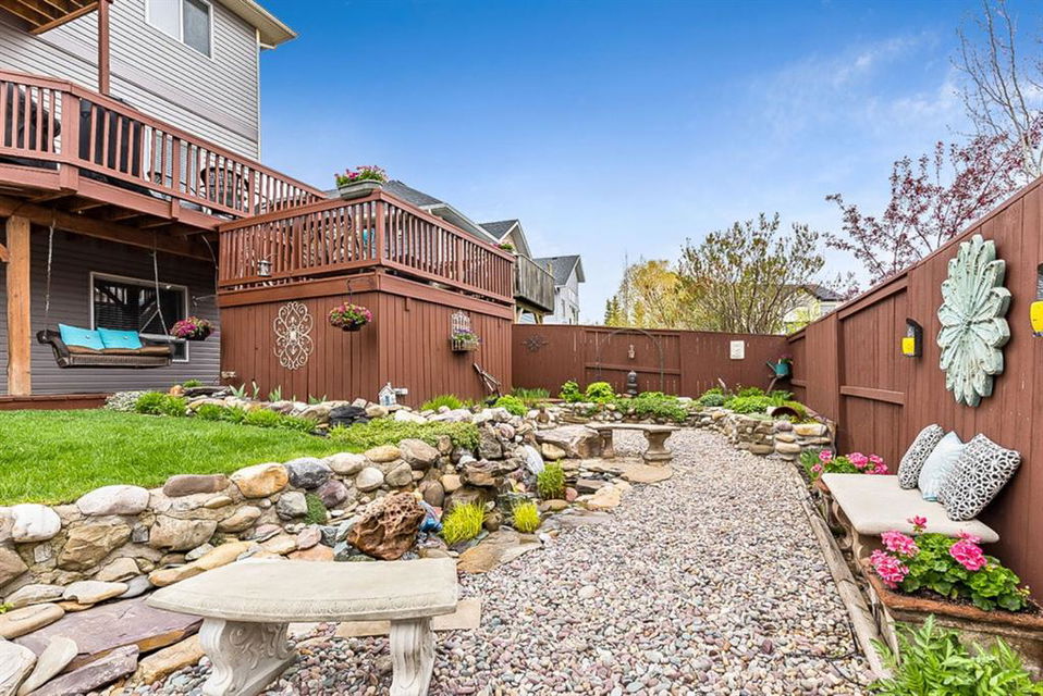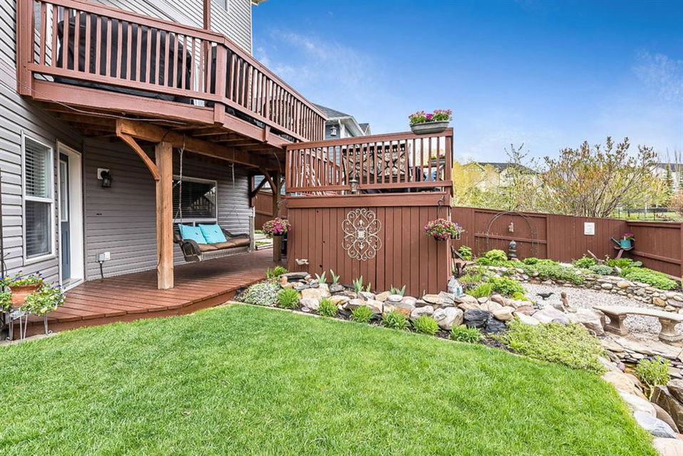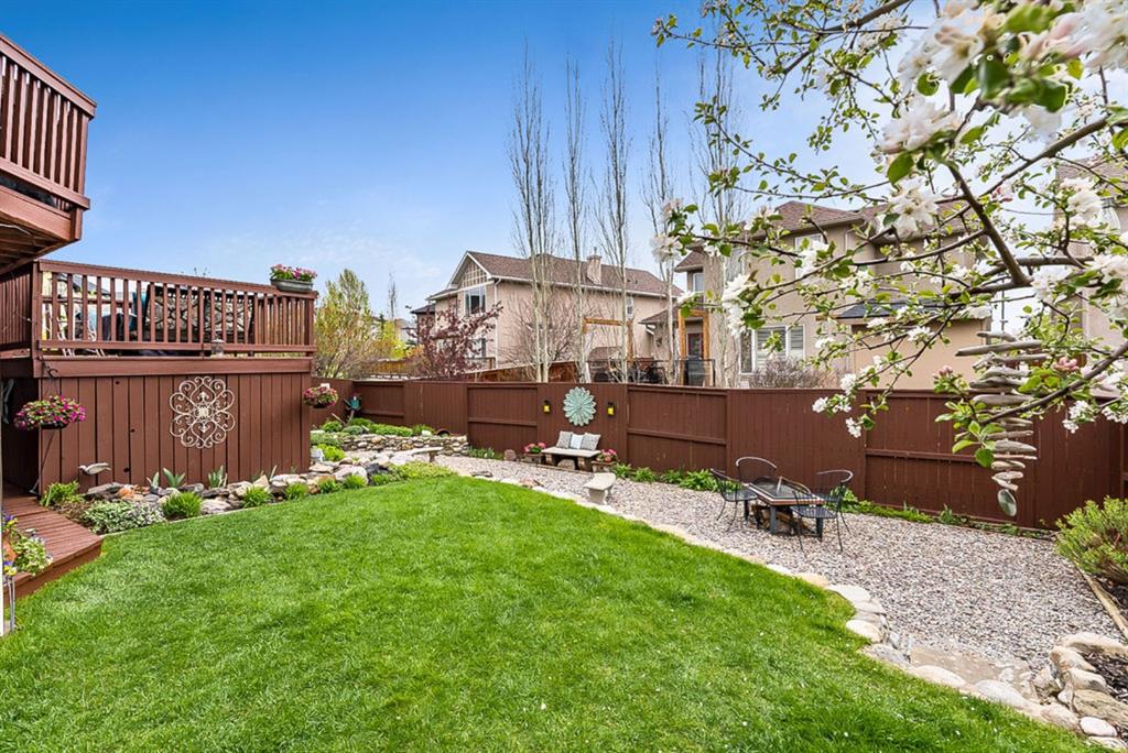 **BACK ON MARKET … here is your chance to snap up an awesome 5bdrm home in Crystal!** If you’ve been looking for LAKE ACCESS + 4BDRM UP + BONUS ROOM + FULLY DEVELOPED WALK-OUT BASEMENT W 5TH BDRM + GORGEOUS YARD + OVERSIZED GARAGE with built-in storage, then this is the one! Superbly maintained over the years with countless updates, this Crystal Shores home exudes charm, quality & warm ambiance inside and out. MAIN floor with jatoba hardwood throughout features bright dining room, huge kitchen with island & highest grade granite, living room with fireplace, eating nook, laundry and back hall leading to garage. UPPER floor features master bedroom with ensuite bath and walk-in closet, three other bedrooms, full bathroom and even a bonus room with mountain views. LOWER level features walk-out basement with large windows, huge rec room with high efficiency fireplace, spacious bedroom, full bathroom, and engineered hardwood with added Drycore and plywood under for added warmth throughout, and even a cold storage pantry. STUNNING BACK YARD with tiered deck, two sheds, numerous flower beds, perennials, trees, water feature with pond, and plenty of grassed area for kids to play. All this in the amazing lake-community of Crystal Shores, minutes from schools, parks, paths, rec centre and club house for year-round recreation.