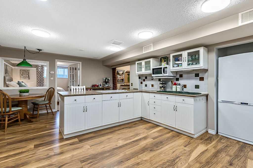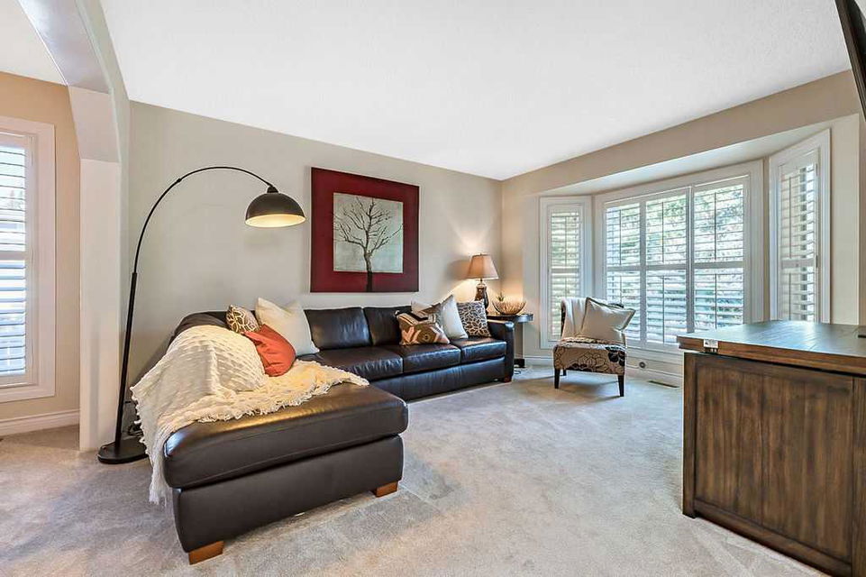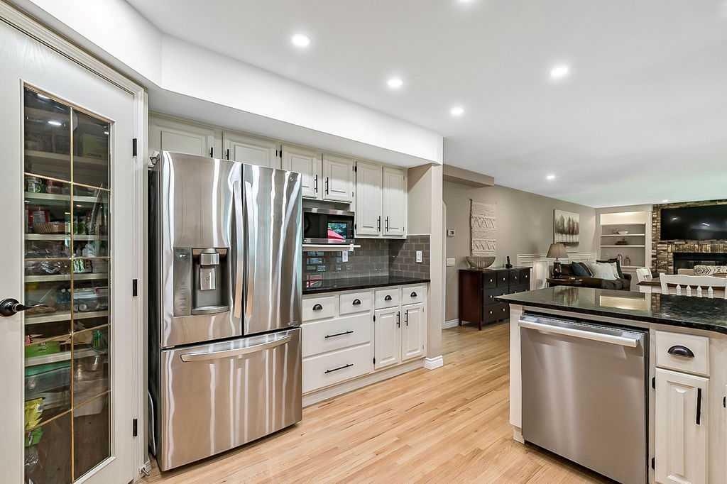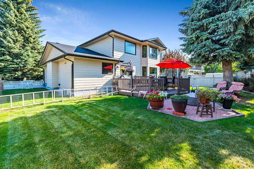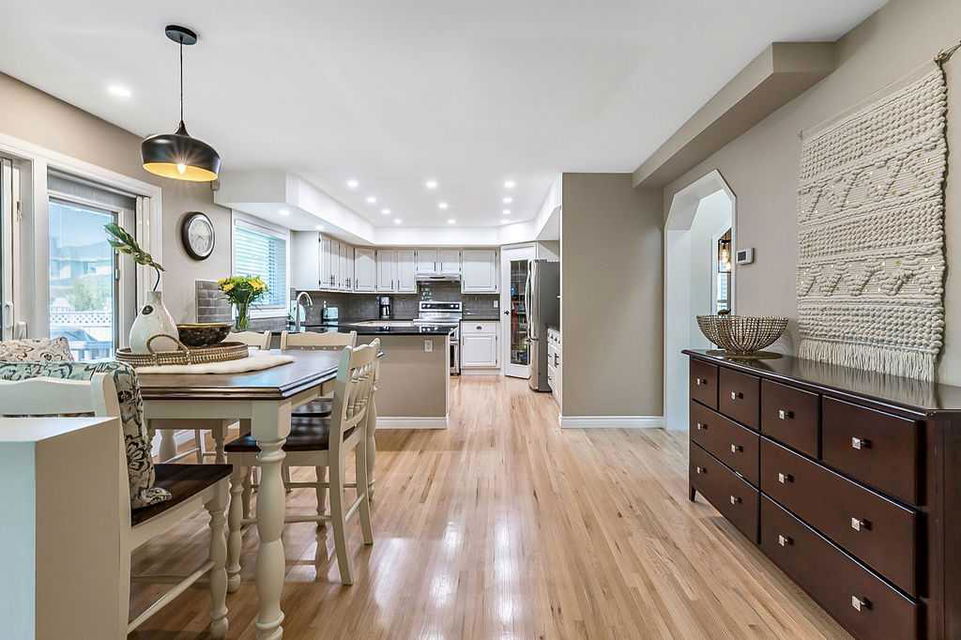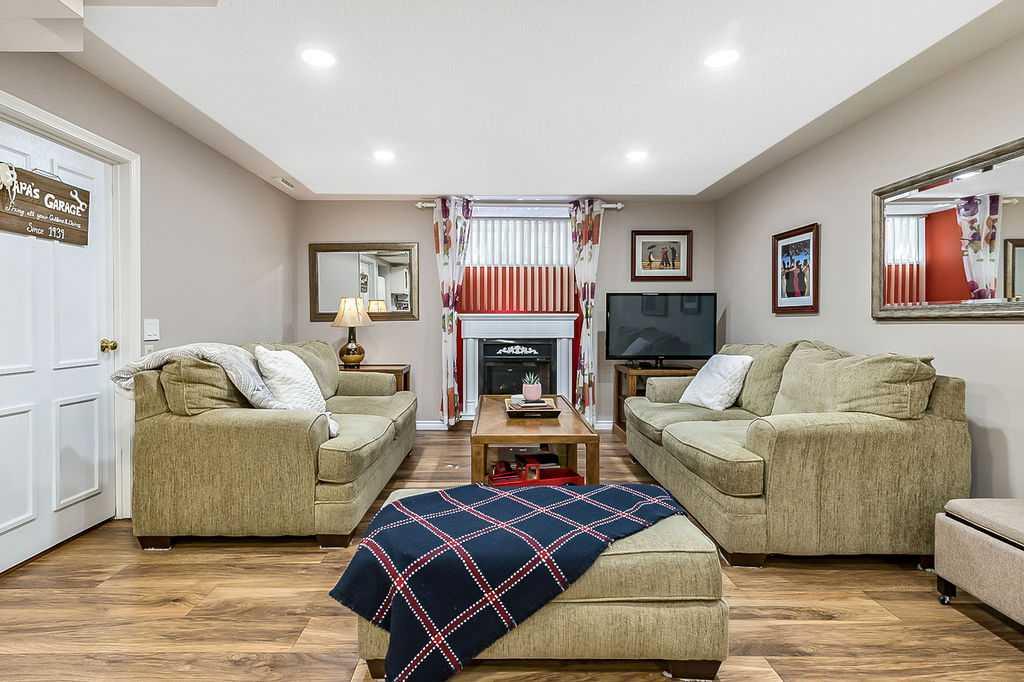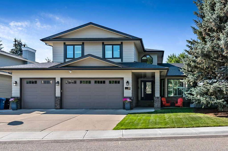 GORGEOUS RENOVATED 6bdrm 2800SQFT+ SUNDANCE ESTATE home with TRIPLE GARAGE plus $130K+ of updates, within walking distance of lake, schools & Fish Creek Park! This one will check all the boxes if you’re after a meticulously maintained family home with large 70’x115′ lot, elegant finishing throughout, and in a popular LAKE COMMUNITY. STEP IN (click 3D video) … MAIN FLOOR features open concept plan, starting with spacious entry way with formal living room and dining room to one side and main floor study (or 7th bedroom) with updated half bath on the other, followed by beautifully updated white kitchen with granite countertop, eating nook with double French doors to back yard, and cozy family room with wood burning fireplace & built-in shelving. UPPER LEVEL features large primary bedroom with walk-in closet & beautifully renovated ensuite bathroom w in-floor heating & oversized air-jet tub, three additional bedrooms, plus renovated main bathroom. LOWER LEVEL features a mother-in-law suite (it was set up for grandparents living in the home) with large living room, two bedrooms, spacious bathroom, and utility room with woodwork room. Note that kitchenette can be removed with relative ease, but is a bonus for large families (or live-in nanny). Gorgeous hardwood flooring, new carpet, fresh paint with contemporary colours, new light fixtures and exquisite details throughout the home. Did we mention AC on upper floor, and outdoor Gemstone lights? BACK YARD is a fabulous oasis with large deck, mature vegetation, ample space for play or quiet lounging, shed, underground sprinkler system in front yard. LOCATION is fantastic, in highly sought-after quiet cul-de-sac, with access to private lake throughout the year for swimming, boating, fishing, skating & more. Home is minutes from Fish Creek Park for fabulous walks & bike rides, and within walking distance of schools (Fish Creek Elementary, Midsun Junior High, Centennial High & more). RECENT UPDATES: new paint (2022/2023), new plumbing / poly_B replaced (2022), new steam washer/dryer (2020), new fridge/freezer with water and ice dispenser (2021), Gemstone lights (2021), exterior painted (2020), Miele dishwasher (2020), French doors to patio (2018), 2 new furnaces (2016), kitchen remodel (2018), primary ensuite remodel (2015), main bath remodel (2017), hardwood refinished (2015), new carpet (2018), roof and skylight (2014), doors/windows (2010-2017).