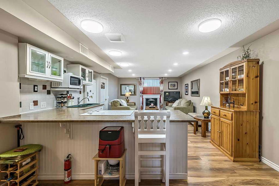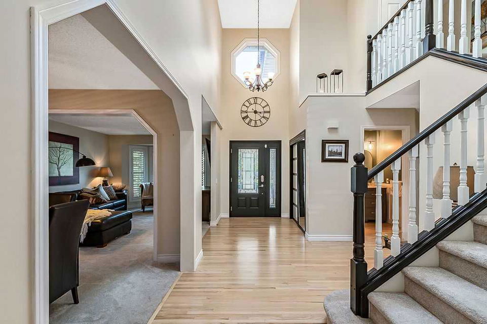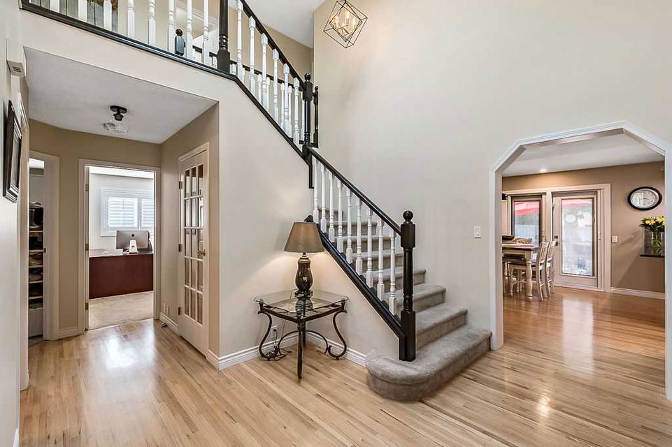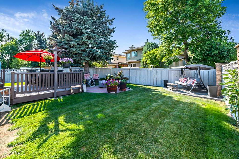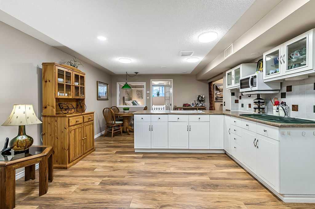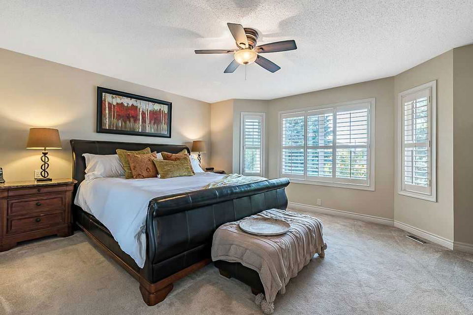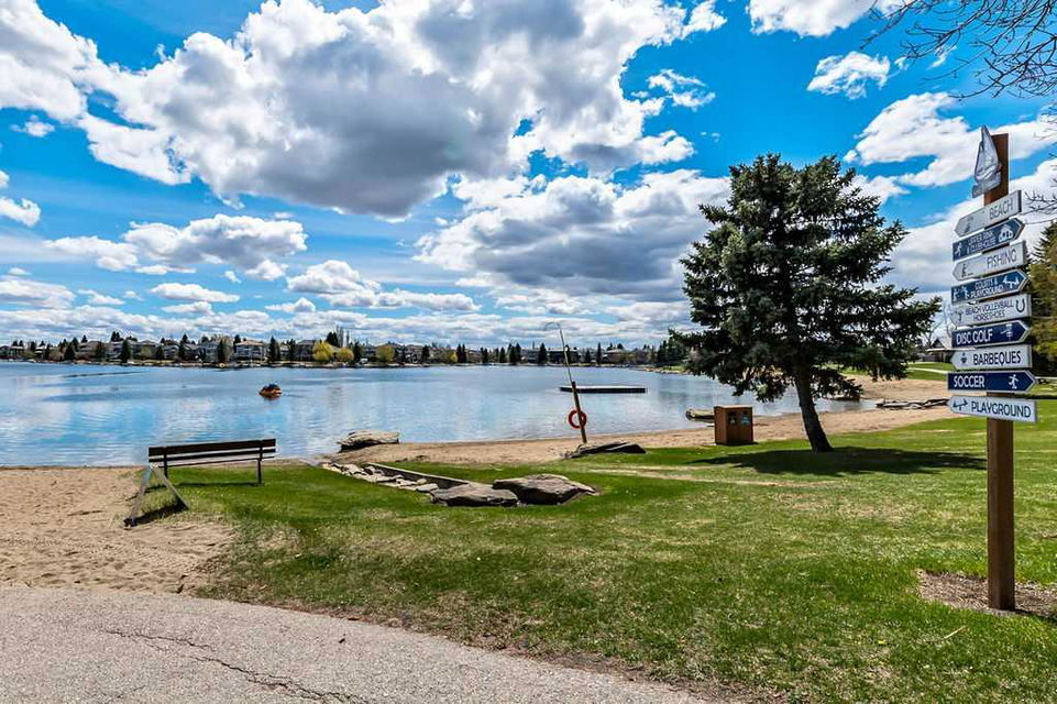 GORGEOUS RENOVATED 6bdrm 2800SQFT+ SUNDANCE ESTATE home with TRIPLE GARAGE plus $130K+ of updates, within walking distance of lake, schools & Fish Creek Park! This one will check all the boxes if you’re after a meticulously maintained family home with large 70’x115′ lot, elegant finishing throughout, and in a popular LAKE COMMUNITY. STEP IN (click 3D video) … MAIN FLOOR features open concept plan, starting with spacious entry way with formal living room and dining room to one side and main floor study (or 7th bedroom) with updated half bath on the other, followed by beautifully updated white kitchen with granite countertop, eating nook with double French doors to back yard, and cozy family room with wood burning fireplace & built-in shelving. UPPER LEVEL features large primary bedroom with walk-in closet & beautifully renovated ensuite bathroom w in-floor heating & oversized air-jet tub, three additional bedrooms, plus renovated main bathroom. LOWER LEVEL features a mother-in-law suite (it was set up for grandparents living in the home) with large living room, two bedrooms, spacious bathroom, and utility room with woodwork room. Note that kitchenette can be removed with relative ease, but is a bonus for large families (or live-in nanny). Gorgeous hardwood flooring, new carpet, fresh paint with contemporary colours, new light fixtures and exquisite details throughout the home. Did we mention AC on upper floor, and outdoor Gemstone lights? BACK YARD is a fabulous oasis with large deck, mature vegetation, ample space for play or quiet lounging, shed, underground sprinkler system in front yard. LOCATION is fantastic, in highly sought-after quiet cul-de-sac, with access to private lake throughout the year for swimming, boating, fishing, skating & more. Home is minutes from Fish Creek Park for fabulous walks & bike rides, and within walking distance of schools (Fish Creek Elementary, Midsun Junior High, Centennial High & more). RECENT UPDATES: new paint (2022/2023), new plumbing / poly_B replaced (2022), new steam washer/dryer (2020), new fridge/freezer with water and ice dispenser (2021), Gemstone lights (2021), exterior painted (2020), Miele dishwasher (2020), French doors to patio (2018), 2 new furnaces (2016), kitchen remodel (2018), primary ensuite remodel (2015), main bath remodel (2017), hardwood refinished (2015), new carpet (2018), roof and skylight (2014), doors/windows (2010-2017).