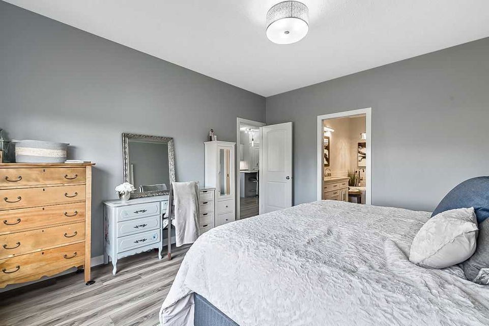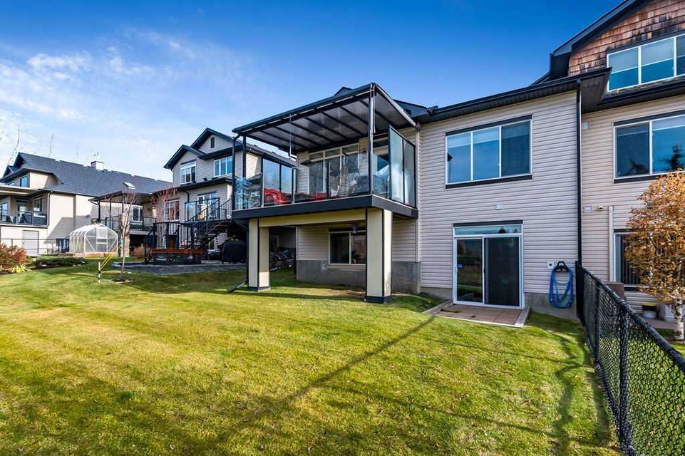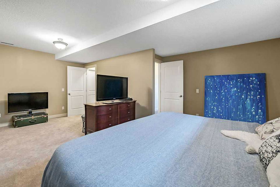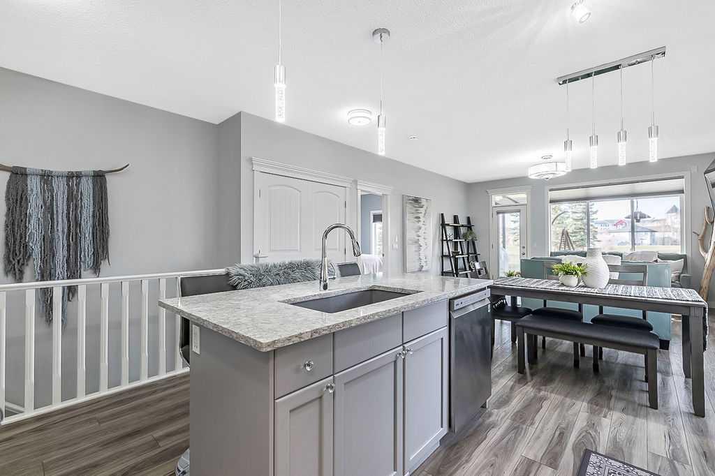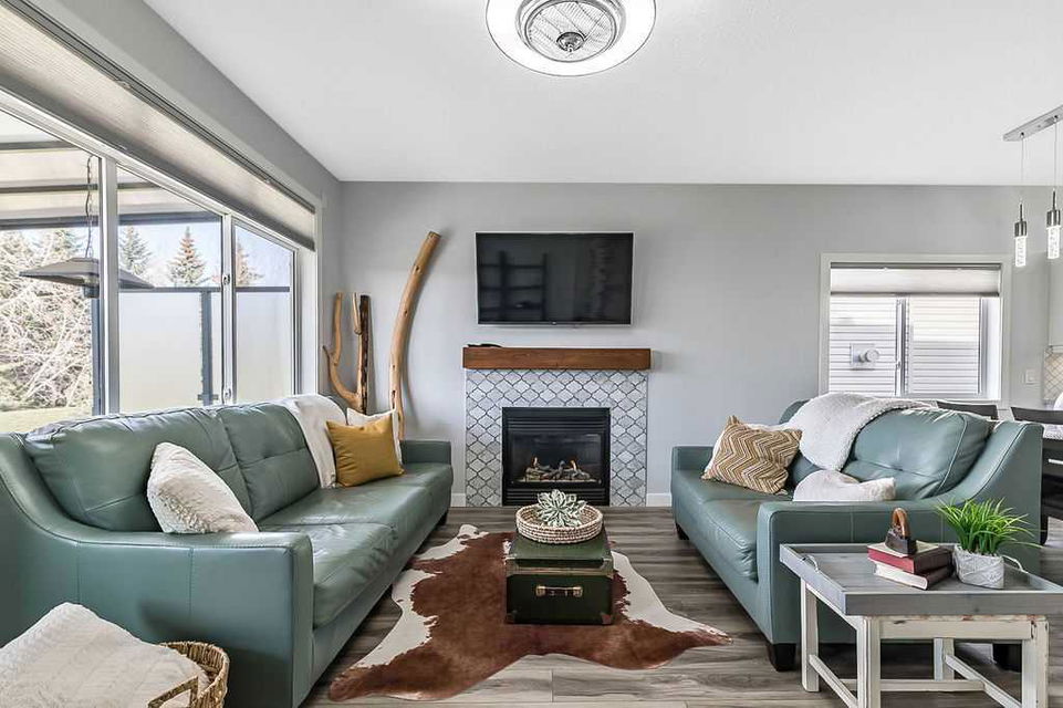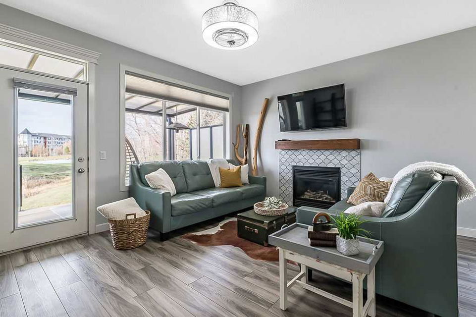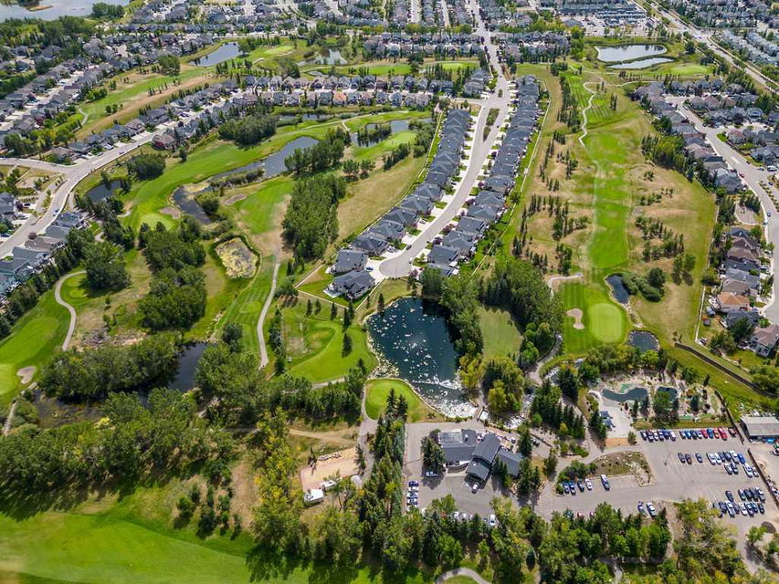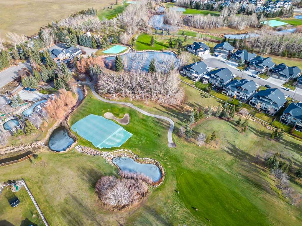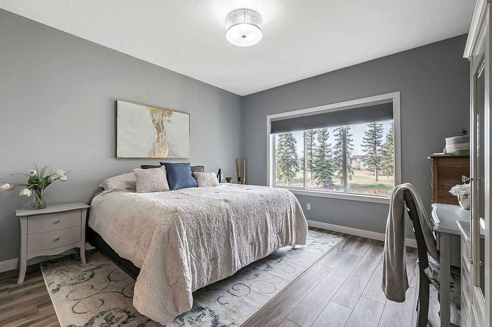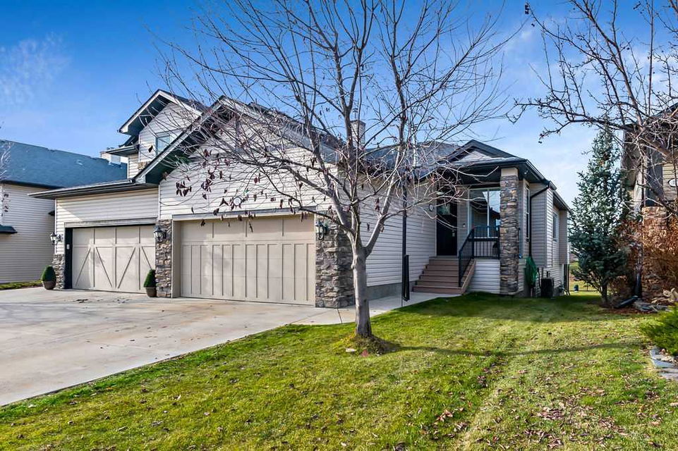 If you’ve been searching for a beautifully renovated walk-out bungalow with GORGEOUS MOUNTAIN & GOLF COURSE VIEWS in an established lake community with NO CONDO FEES, then this is the one! Step in (click 3D for virtual tour) and you will fall in love with this home’s warm ambiance, superb updates & well laid out spaces. MAIN LEVEL features private study w double barn doors, kitchen with new ss appliances, white cabinetry, quartz countertop & 2 oversized pantries, living room with gas fireplace and access to spacious covered deck with composite board & seamless glass railing for perfect views of golf course & mountains. Primary bedroom with large window & views, plus stunning ensuite bathroom w white cabinetry, double vanity, gorgeous soaker tub, glass shower & large walk-in closet create the perfect retreat. Main floor laundry and half bath complete this level. LOWER LEVEL features two additional large bedrooms, full bathroom with huge steam shower, double vanity, soaker jetted tub & in floor heat, and huge rec room with in-floor heating throughout. Did we mention A/C, new blinds, new garage heater, and new water softener? NEIGHBOURHOOD is lovely and calm, with the amazing perk of all snow removal and front/back lawn maintenance included for just $110 monthly HOA fee (note there are no condo fees). Home owners can plant flower beds and additional trees as they wish. The golf course main building is a short walk away to enjoy dining, a game of golf or even mini golf. Neighbourhood is also part of the Crystal Shores, where home comes with year-round lake access for swimming, boating, fishing, skating & more. RECENT UPDATES (2019-2020) $137K+ renovation included new front door, new paint, updated cabinetry, new quartz, new faucets sink & garburator, new appliances, new pantry, new office doors, new flooring, new backsplash & tile on fireplace & ensuite, new ensuite tub & shower glass & toilet, new blinds, new lighting, new furnace motor, new A/C, new garage heater, new water softener & fireplace fan, new extended rear deck with composite board & cover & seamless glass railing. Lake membership $262.50 annual fee. SHOWINGS START FRIDAY.