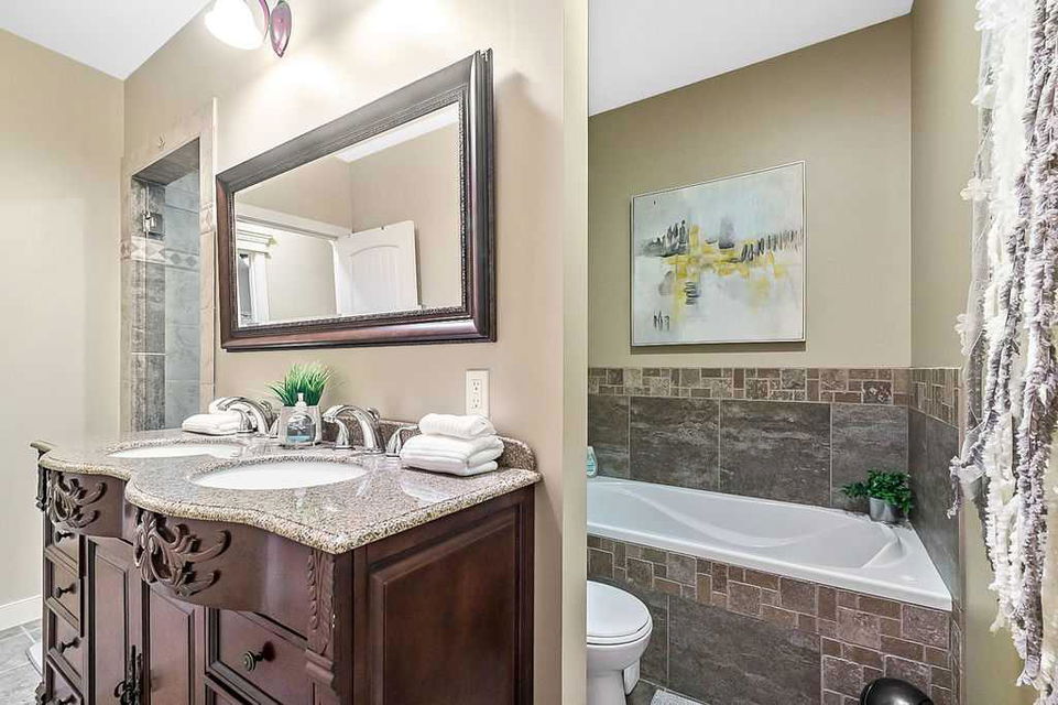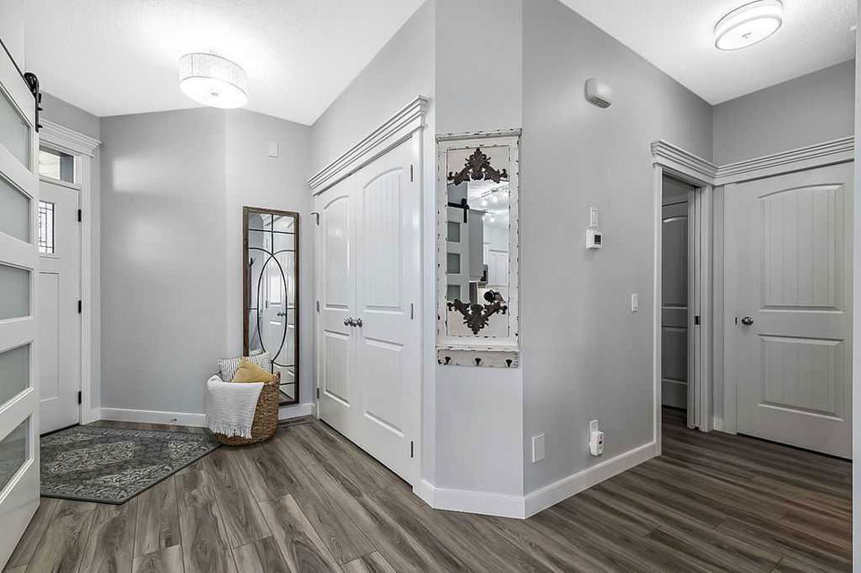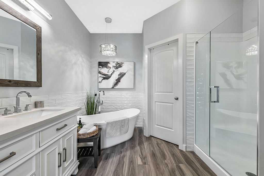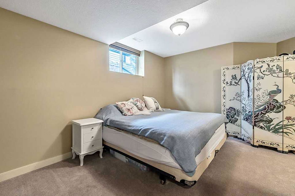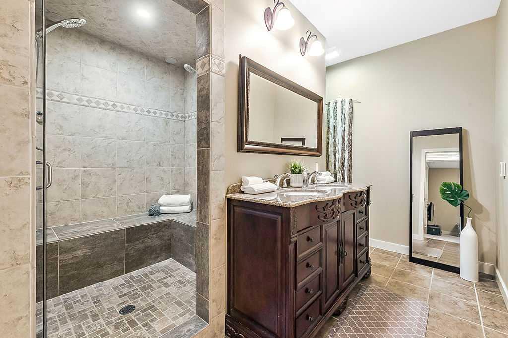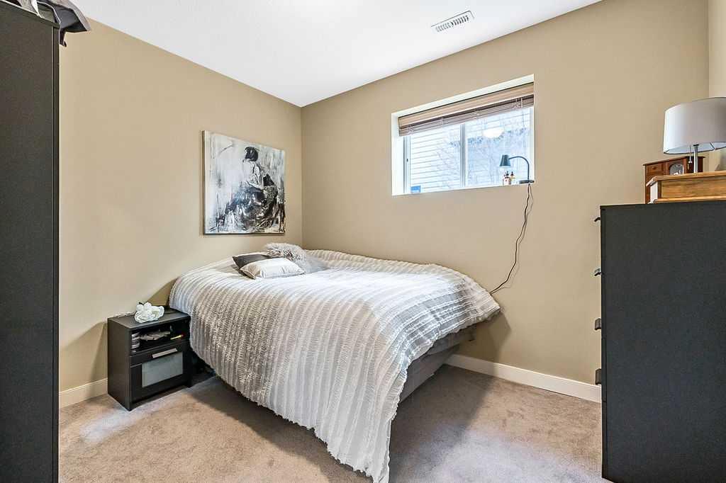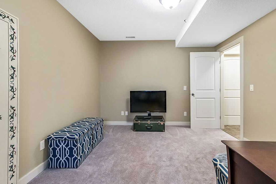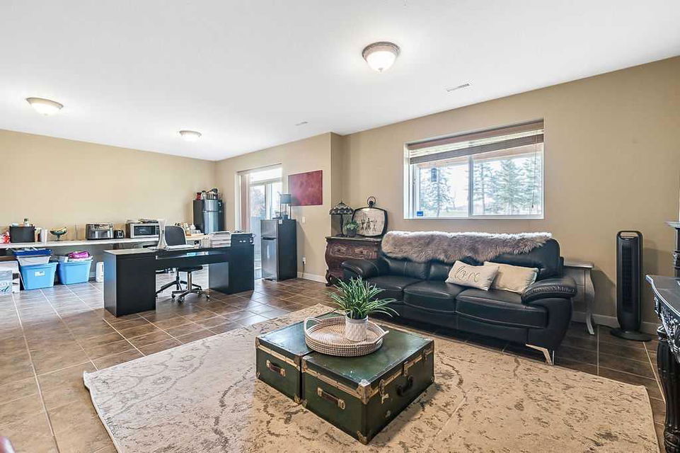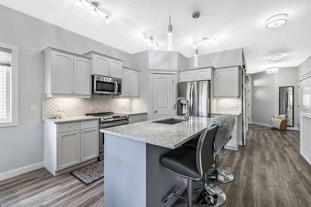 If you’ve been searching for a beautifully renovated walk-out bungalow with GORGEOUS MOUNTAIN & GOLF COURSE VIEWS in an established lake community with NO CONDO FEES, then this is the one! Step in (click 3D for virtual tour) and you will fall in love with this home’s warm ambiance, superb updates & well laid out spaces. MAIN LEVEL features private study w double barn doors, kitchen with new ss appliances, white cabinetry, quartz countertop & 2 oversized pantries, living room with gas fireplace and access to spacious covered deck with composite board & seamless glass railing for perfect views of golf course & mountains. Primary bedroom with large window & views, plus stunning ensuite bathroom w white cabinetry, double vanity, gorgeous soaker tub, glass shower & large walk-in closet create the perfect retreat. Main floor laundry and half bath complete this level. LOWER LEVEL features two additional large bedrooms, full bathroom with huge steam shower, double vanity, soaker jetted tub & in floor heat, and huge rec room with in-floor heating throughout. Did we mention A/C, new blinds, new garage heater, and new water softener? NEIGHBOURHOOD is lovely and calm, with the amazing perk of all snow removal and front/back lawn maintenance included for just $110 monthly HOA fee (note there are no condo fees). Home owners can plant flower beds and additional trees as they wish. The golf course main building is a short walk away to enjoy dining, a game of golf or even mini golf. Neighbourhood is also part of the Crystal Shores, where home comes with year-round lake access for swimming, boating, fishing, skating & more. RECENT UPDATES (2019-2020) $137K+ renovation included new front door, new paint, updated cabinetry, new quartz, new faucets sink & garburator, new appliances, new pantry, new office doors, new flooring, new backsplash & tile on fireplace & ensuite, new ensuite tub & shower glass & toilet, new blinds, new lighting, new furnace motor, new A/C, new garage heater, new water softener & fireplace fan, new extended rear deck with composite board & cover & seamless glass railing. Lake membership $262.50 annual fee. SHOWINGS START FRIDAY.