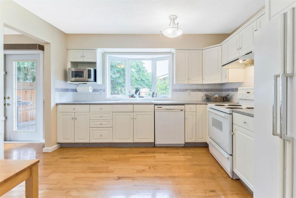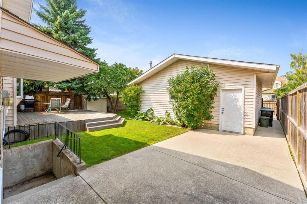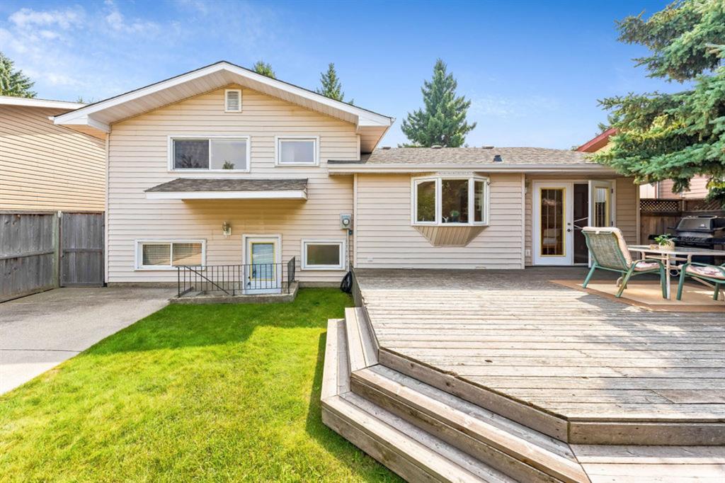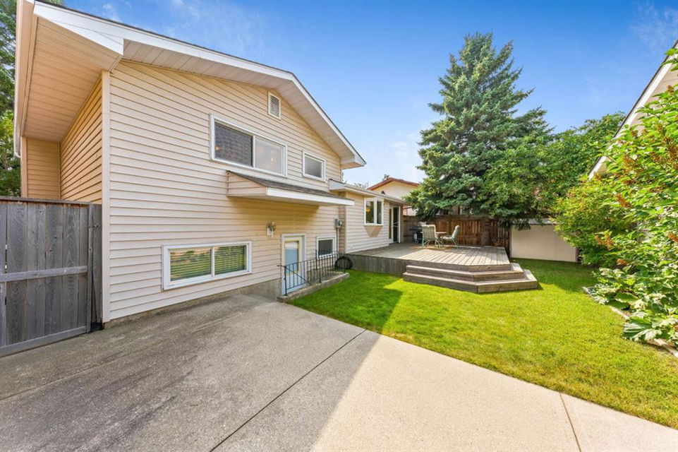 Awesome four-level split in UPPER NORTH HAVEN boasting 2260SQ.FT.+ DEVELOPED SPACE with OVERSIZED DOUBLE DETACHED GARAGE on 50’x110’ LEVEL LOT on amazing quiet street near Nose Hill Park. Home has been superbly maintained over the years and is perfectly primed for an easy makeover. *CLICK 3D* for a virtual tour … and check out main floor with living room and large bay window, spacious kitchen, and dining room with double doors to back yard, then check out upper floor with large master bedroom and full ensuite bathroom, two more bedrooms and one full main bathroom. Lower level features recreation room with electric fireplace, study, bathroom and separate entrance to back yard … and a few more steps down you will find play room, storage room and laundry room. Back yard is very private & spacious with beautiful 23’ by 16’ cedar deck, mature trees, raised garden beds, and garage. Property is located in established neighbourhood where many homes have seen stunning renovations, and is walking distance to Nose Hill Park, Egerts Park, and local elementary school. RECENT UPDATES include fence (2010), carpet (2017), paint (2017), hot water tank (2015), roof (2011).