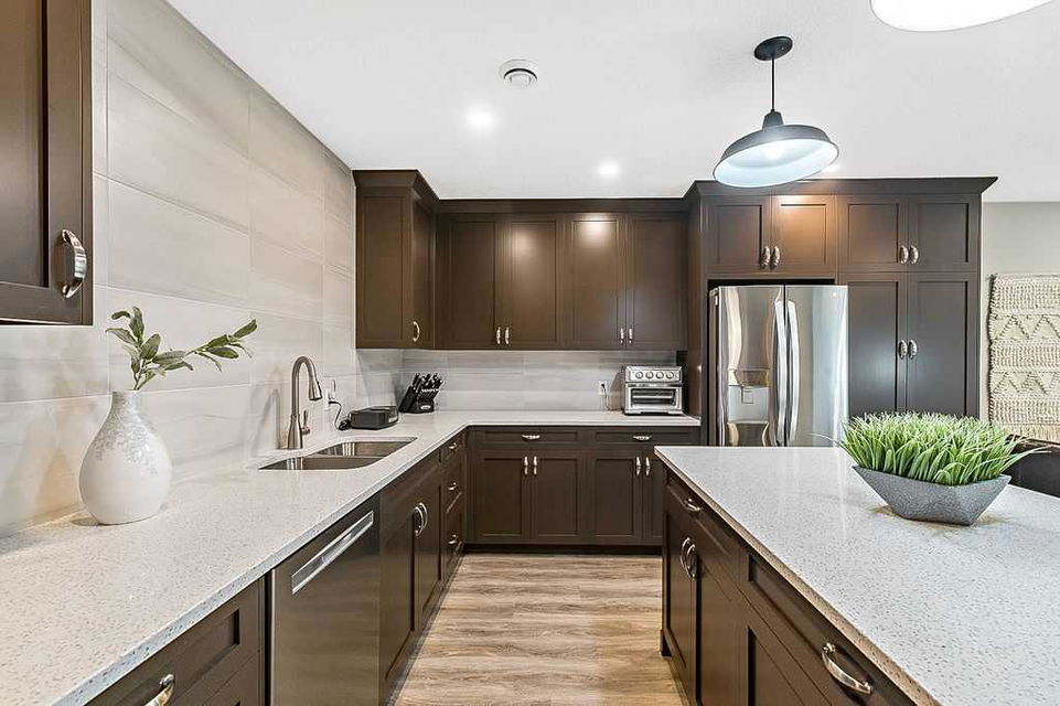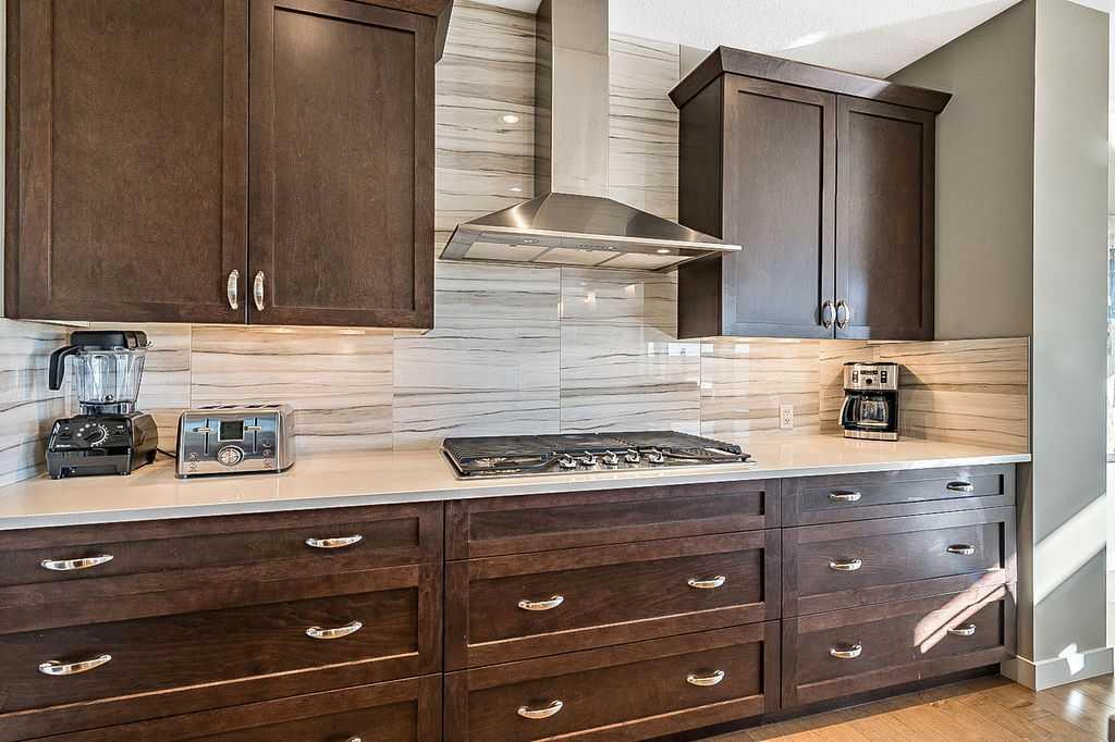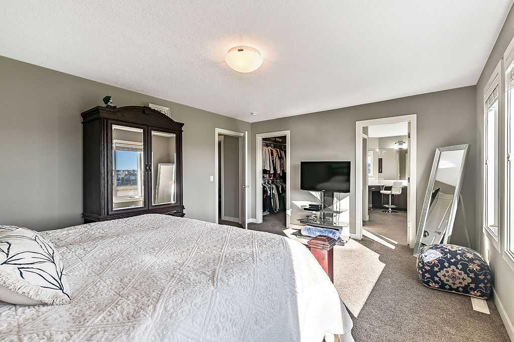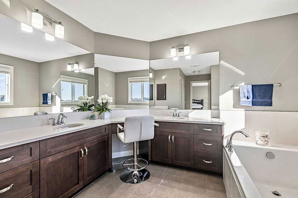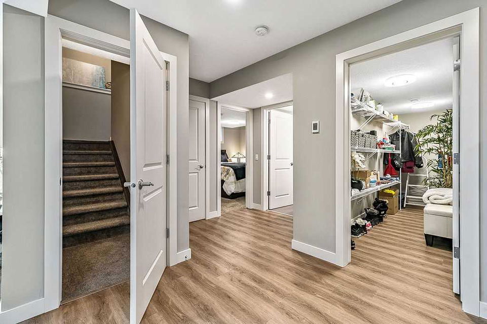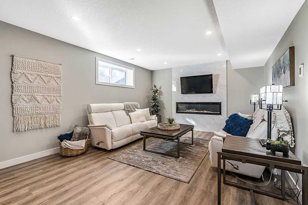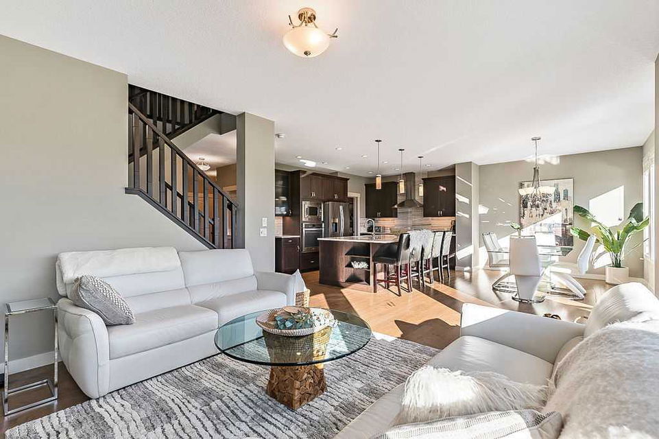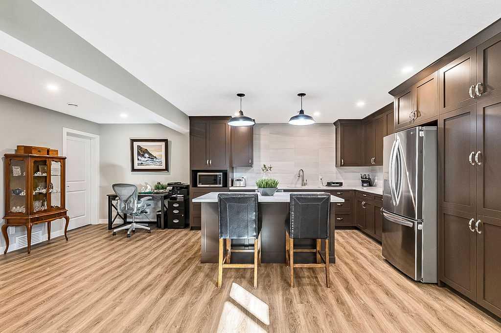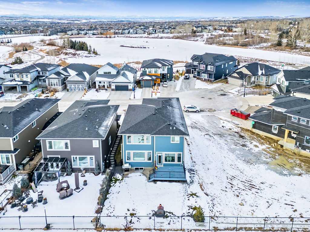 Have you been to Okotoks lately? SMALL TOWN CHARM with BIGGER SPACES & BETTER PRICES! This GORGEOUS 5BDRM estate home with over 4000sq.ft.+ developed space is located in one of Okotoks’ premier neighbourhoods, surrounded by gorgeous homes & pond, park & pathways right across the street! This one has it all … step in (see 3D video) and you’ll fall in love with its impeccable quality, attention to detail, elegant finishing and superb indoor/outdoor living spaces. Home exudes the contemporary elegance of a new-build yet offers the perks of an established home with all window coverings, basement and landscaping in place. MAIN FLOOR features spacious entrance, study with large window, gorgeous executive kitchen with built-in stainless steel appliances and walk-through pantry, huge island with quartz countertop, under cabinet lighting and extra pots & pans drawers. Dining room and living room with gas fire place showcase large triple-paned windows which offer beautiful natural light throughout the day. Mudroom with built-in bench leads to double detached garage. Beautiful hardwood, tile and 9′ ceilings throughout. UPPER FLOOR features huge primary bedroom with walk-in closet and 5-piece ensuite bathroom, three additional kids’ rooms, full bathroom, laundry room, and superb bonus room. LOWER LEVEL is professionally finished and is perfectly set up to accommodate older kids, grandparents or a nanny who want some privacy & autonomy with fifth bedroom, living room, large wet bar with island, laundry, full bathroom, IN-FLOOR HEAT, and storage room. Note that lower level development does not have separate entrance from the outside. BACK YARD features large deck, gas line for BBQ, hot tub wiring, and huge stamped concrete patio with mature vegetation around. Air Ranch is one of the nicest communities in Okotoks, and this particular location is one of the best ones in a cul-de-sac and just across from paths, ponds and school … and mere minutes to recreation centre and shopping amenities. Hands down one of the of the best homes in one of the nicest neighbourhoods!! February possession preferable.