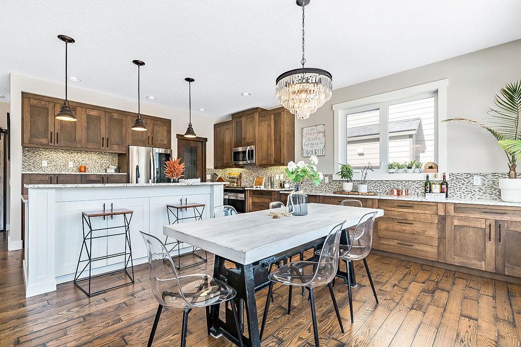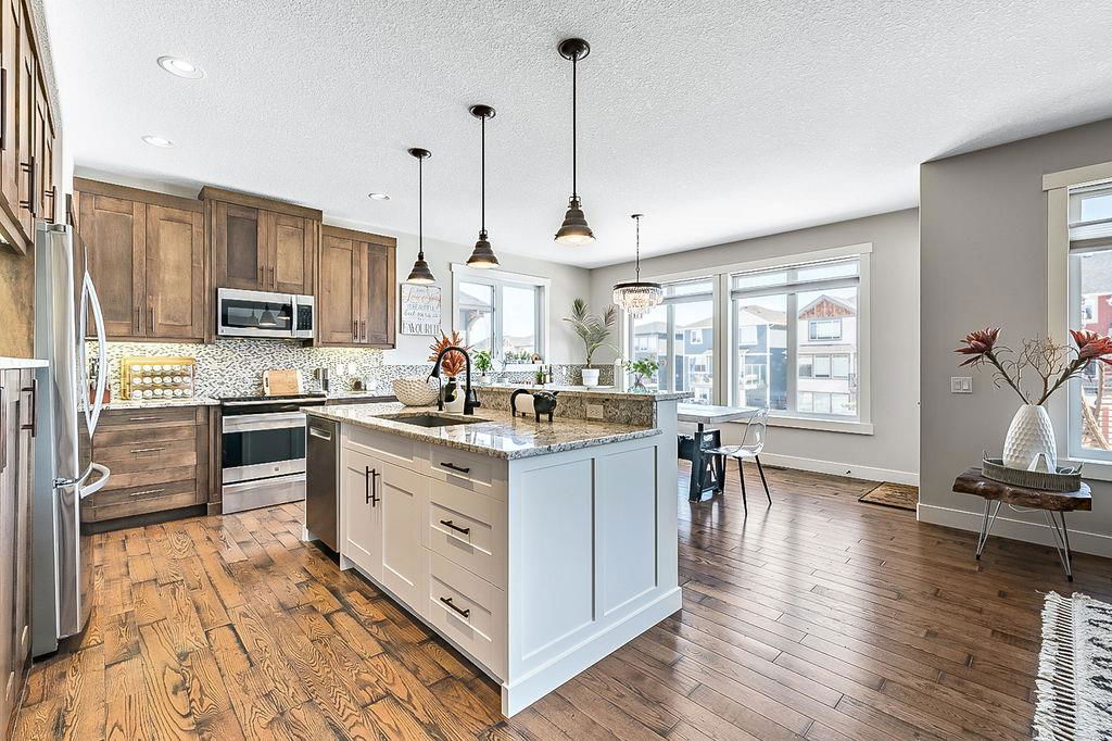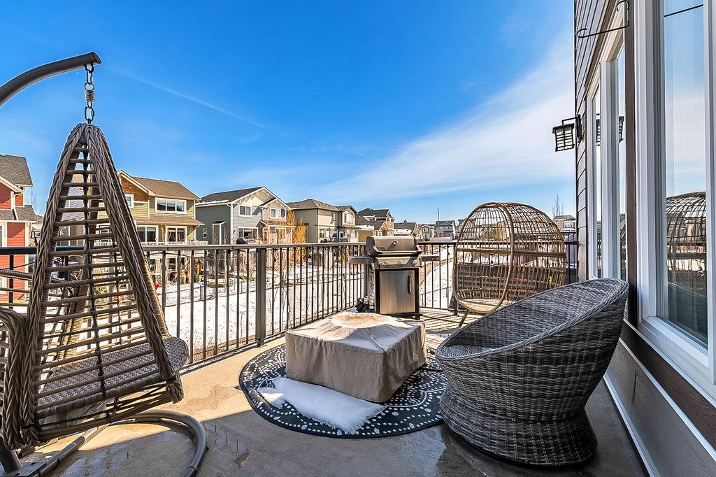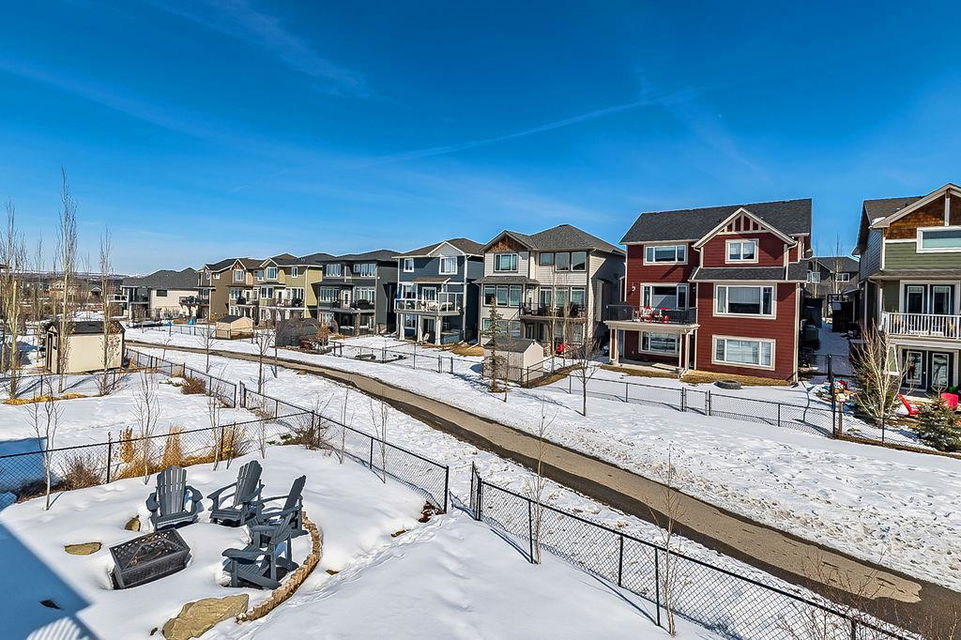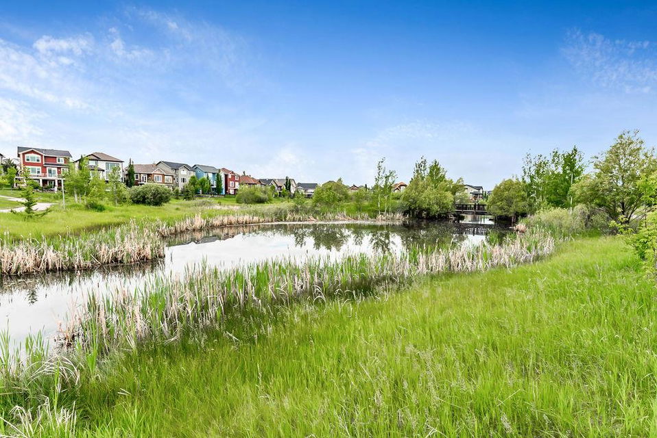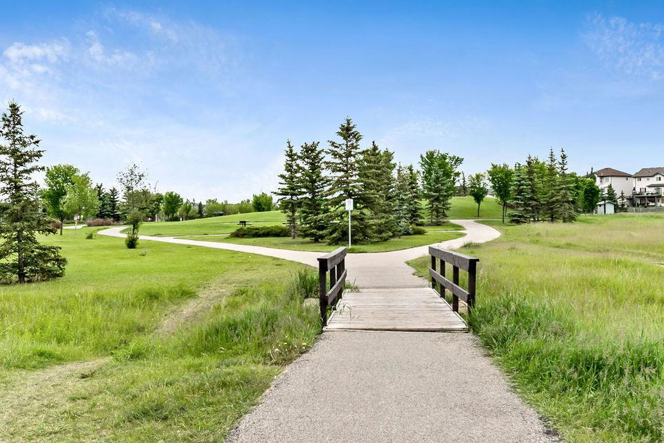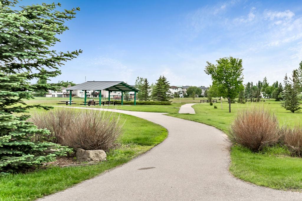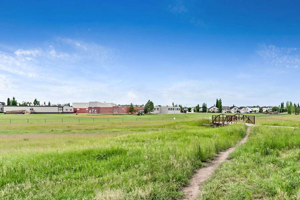 STUNNING two story 4bdrm home with walk-out basement BACKING ONTO GREEN SPACE in the gorgeous community of Cimarron Springs. MAIN FLOOR features open concept plan, living room with gas fire place and custom built-in cabinetry, spacious kitchen with granite countertop, huge island and walk-through pantry with plenty of additional storage, and dining nook with windows all around overlooking green space and back yard. Main-floor den features double barn doors that close for full privacy when working at home. Mud room is spacious and offers built-in cabinetry. UPPER FLOOR features bonus room with vaulted ceiling & custom accent wall, huge master bedroom with walk-in closet and superb ensuite bathroom with modern free-standing soaker tub, his & her sinks, shower & separate toilet area. Two more bedrooms, full bathroom and upstairs laundry room complete this floor. WALKOUT BASEMENT is spacious and bright, boasts heated flooring, and offers huge recreation room w games area, plus large bedroom and bathroom. BACK YARD is superb with gorgeous fire pit and opens onto green space with incredible pathway system leading to Sheep River & beyond. GARAGE is heated and offers built-in shelving. PLUS A/C, humidifier, new water softener with reverse osmosis & more!!! RECENT $50K+ UPDATES include new paint throughout, new carpet throughout, new vinyl flooring in bonus room, bonus room accent wall, basement accent wall, den with barn doors, professional spraying of kitchen island & fireplace cabinetry, backyard fire pit, new fridge, and new water filtration/softener plus reverse osmosis. This home exudes modern elegance & perfection throughout, is located minutes from schools & amenities, backs onto pathway, and is hands down one of the best values in town!!!