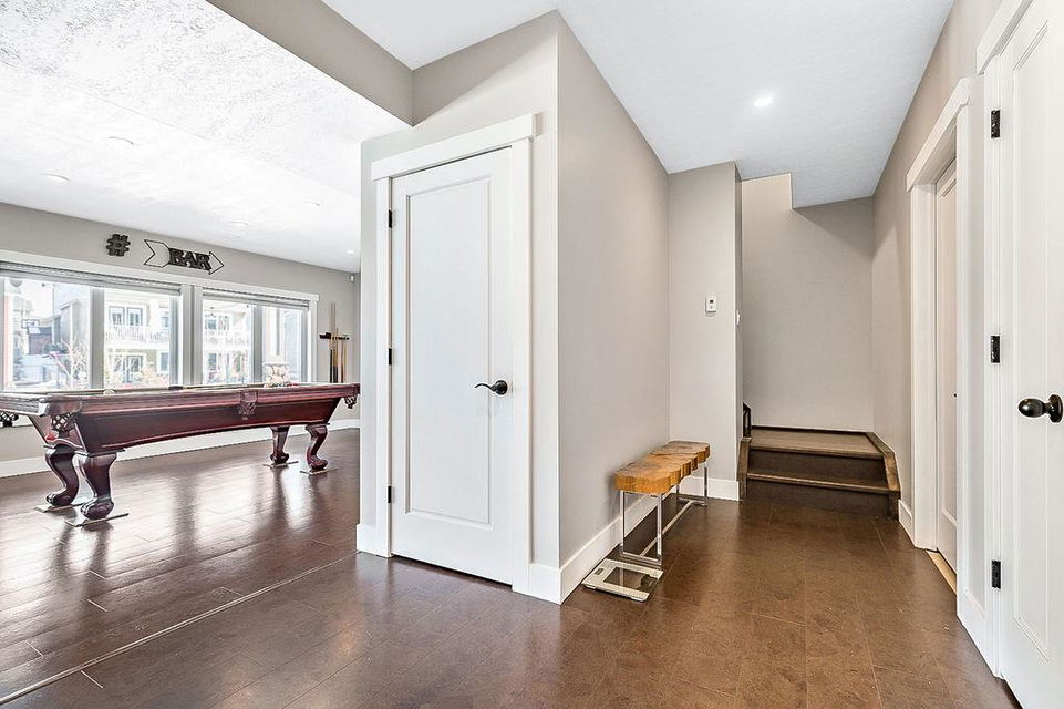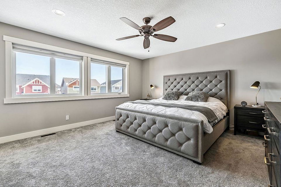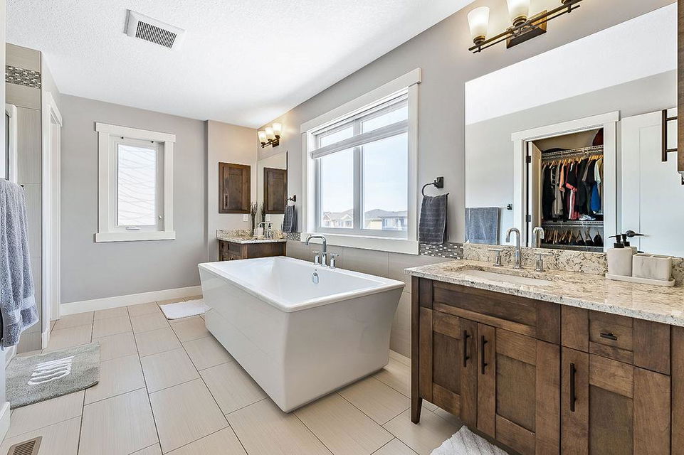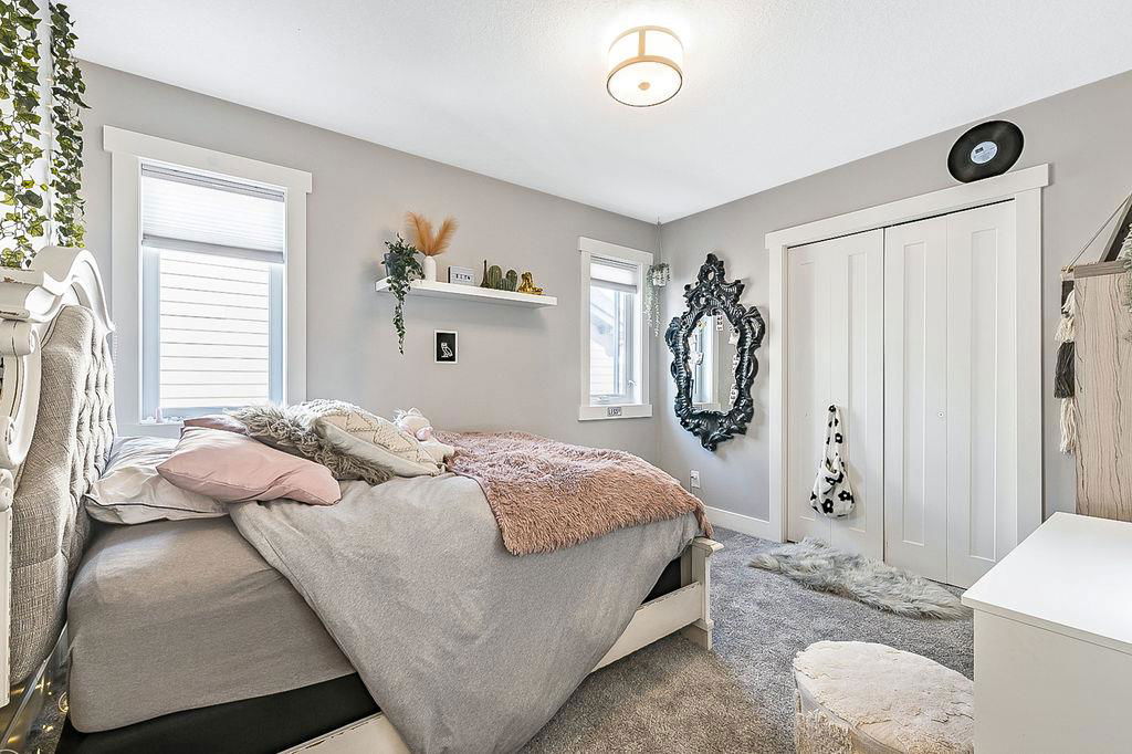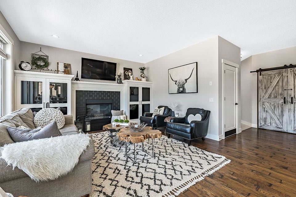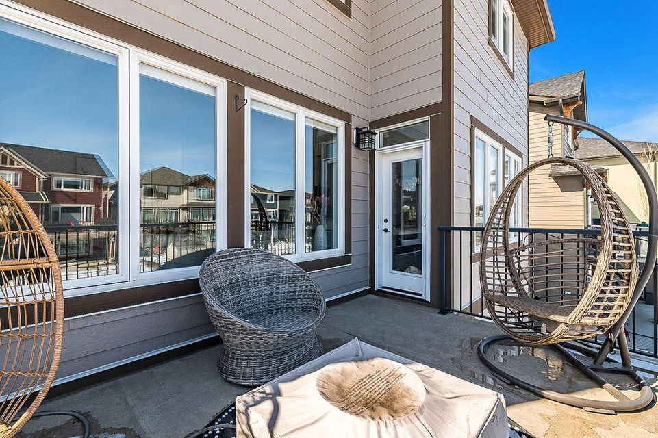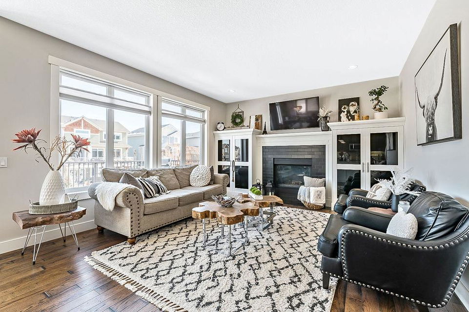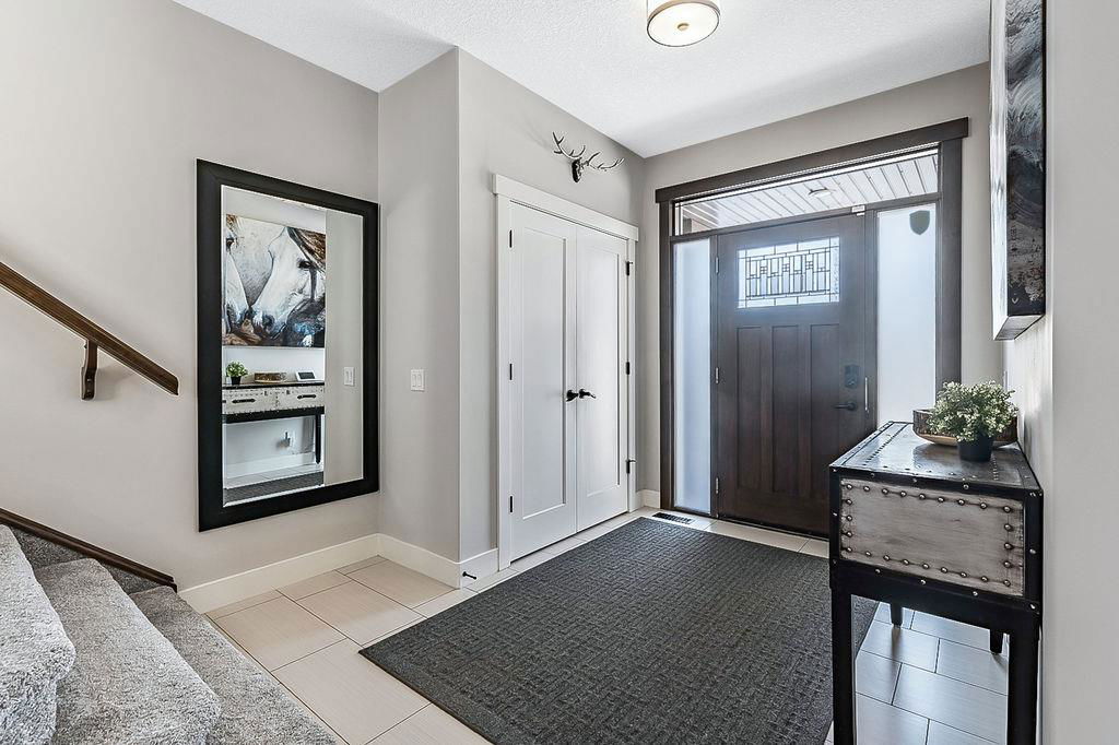STUNNING two story 4bdrm home with walk-out basement BACKING ONTO GREEN SPACE in the gorgeous community of Cimarron Springs. MAIN FLOOR features open concept plan, living room with gas fire place and custom built-in cabinetry, spacious kitchen with granite countertop, huge island and walk-through pantry with plenty of additional storage, and dining nook with windows all around overlooking green space and back yard. Main-floor den features double barn doors that close for full privacy when working at home. Mud room is spacious and offers built-in cabinetry. UPPER FLOOR features bonus room with vaulted ceiling & custom accent wall, huge master bedroom with walk-in closet and superb ensuite bathroom with modern free-standing soaker tub, his & her sinks, shower & separate toilet area. Two more bedrooms, full bathroom and upstairs laundry room complete this floor. WALKOUT BASEMENT is spacious and bright, boasts heated flooring, and offers huge recreation room w games area, plus large bedroom and bathroom. BACK YARD is superb with gorgeous fire pit and opens onto green space with incredible pathway system leading to Sheep River & beyond. GARAGE is heated and offers built-in shelving. PLUS A/C, humidifier, new water softener with reverse osmosis & more!!! RECENT $50K+ UPDATES include new paint throughout, new carpet throughout, new vinyl flooring in bonus room, bonus room accent wall, basement accent wall, den with barn doors, professional spraying of kitchen island & fireplace cabinetry, backyard fire pit, new fridge, and new water filtration/softener plus reverse osmosis. This home exudes modern elegance & perfection throughout, is located minutes from schools & amenities, backs onto pathway, and is hands down one of the best values in town!!!