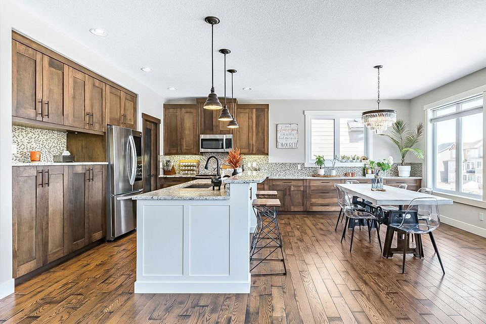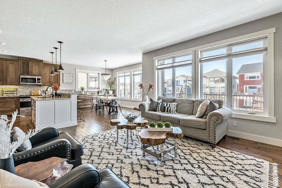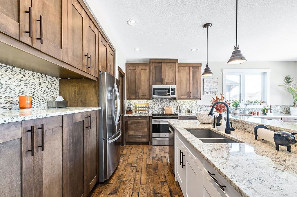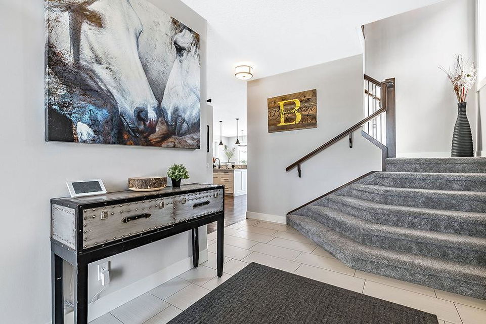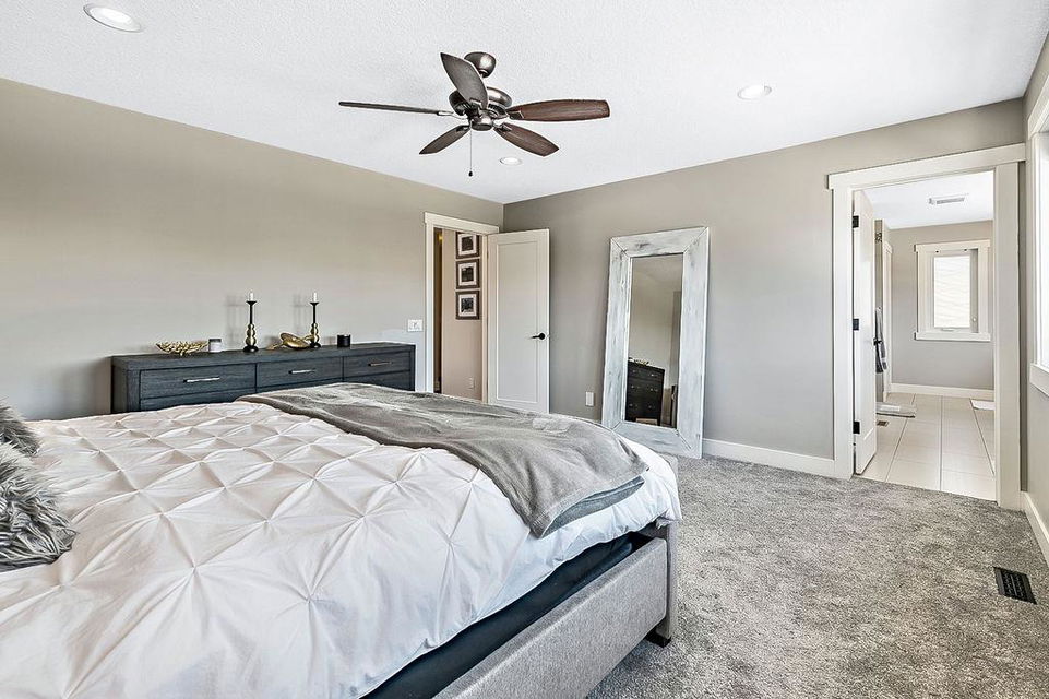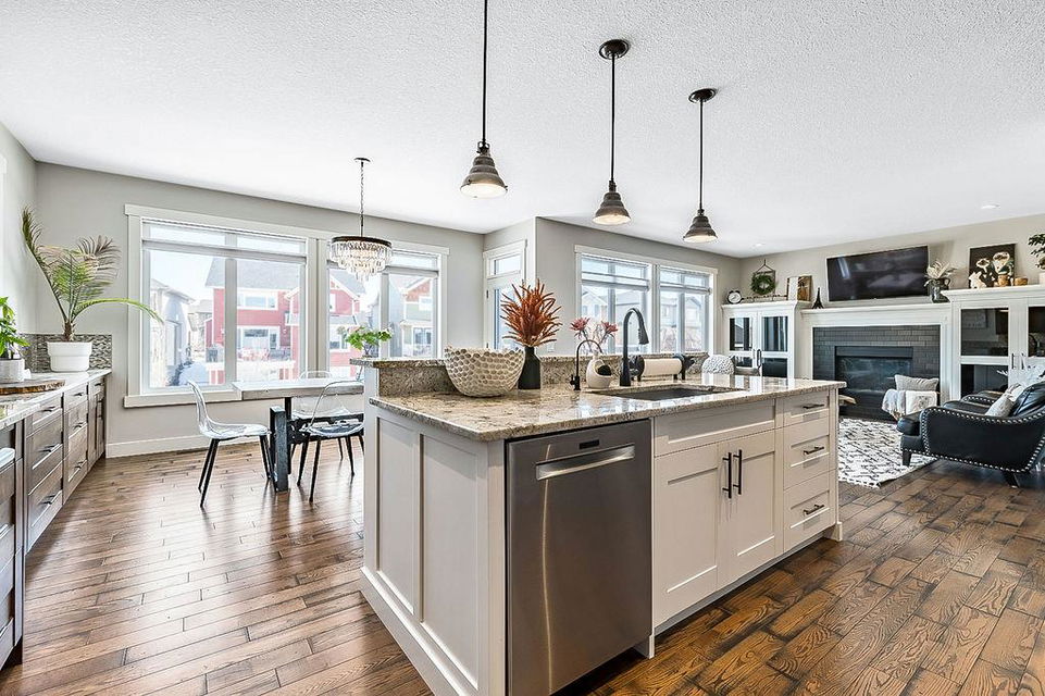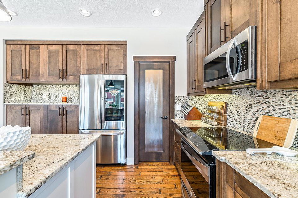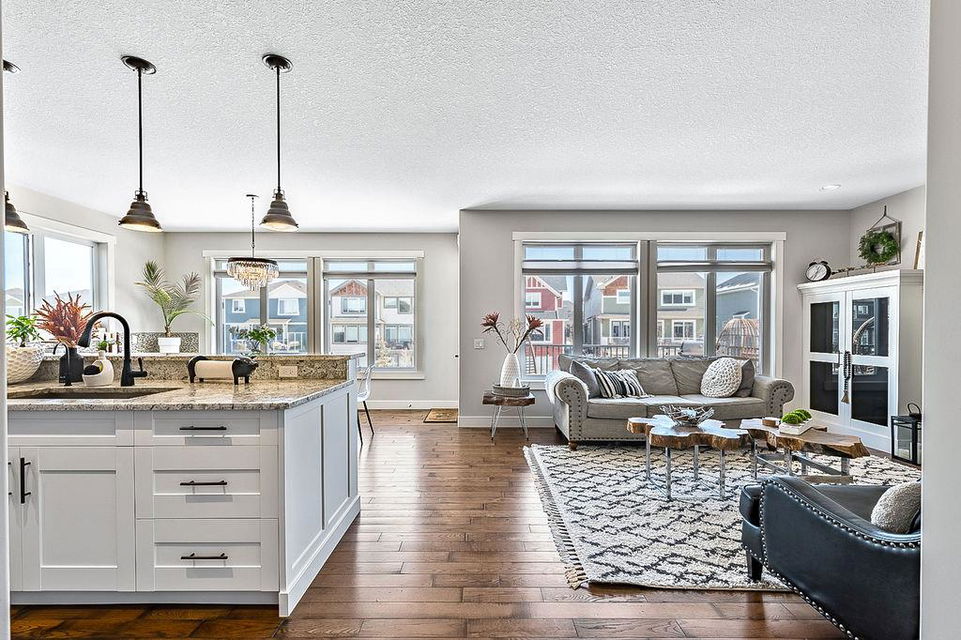 STUNNING two story 4bdrm home with walk-out basement BACKING ONTO GREEN SPACE in the gorgeous community of Cimarron Springs. MAIN FLOOR features open concept plan, living room with gas fire place and custom built-in cabinetry, spacious kitchen with granite countertop, huge island and walk-through pantry with plenty of additional storage, and dining nook with windows all around overlooking green space and back yard. Main-floor den features double barn doors that close for full privacy when working at home. Mud room is spacious and offers built-in cabinetry. UPPER FLOOR features bonus room with vaulted ceiling & custom accent wall, huge master bedroom with walk-in closet and superb ensuite bathroom with modern free-standing soaker tub, his & her sinks, shower & separate toilet area. Two more bedrooms, full bathroom and upstairs laundry room complete this floor. WALKOUT BASEMENT is spacious and bright, boasts heated flooring, and offers huge recreation room w games area, plus large bedroom and bathroom. BACK YARD is superb with gorgeous fire pit and opens onto green space with incredible pathway system leading to Sheep River & beyond. GARAGE is heated and offers built-in shelving. PLUS A/C, humidifier, new water softener with reverse osmosis & more!!! RECENT $50K+ UPDATES include new paint throughout, new carpet throughout, new vinyl flooring in bonus room, bonus room accent wall, basement accent wall, den with barn doors, professional spraying of kitchen island & fireplace cabinetry, backyard fire pit, new fridge, and new water filtration/softener plus reverse osmosis. This home exudes modern elegance & perfection throughout, is located minutes from schools & amenities, backs onto pathway, and is hands down one of the best values in town!!!
