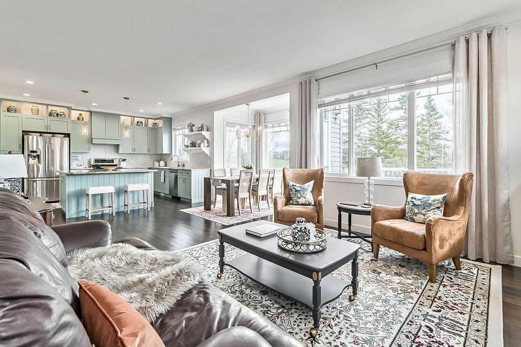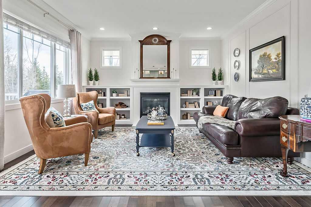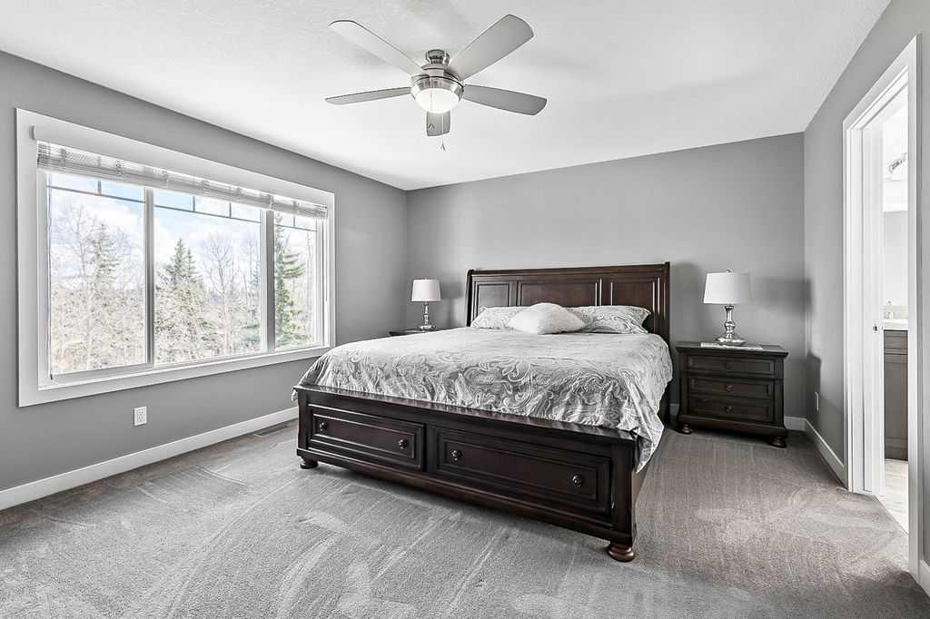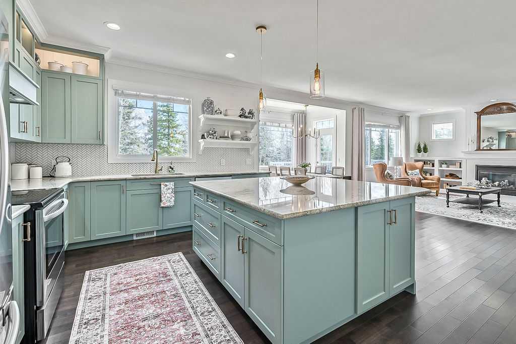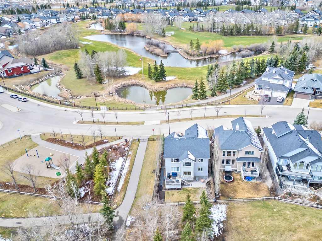 ** Open House cancelled ** STUNNING GOLF COURSE PROPERTY with approx. $200K renovation showcasing impeccable finishing and gorgeous updates throughout! THE VIEWS alone make this property a standout … fronting onto rolling landscape & pond, backing onto lush vegetation of the golf course, with superb mountain views from two floors. BUT THEN THERE IS THE HOME . . . one step inside and you will fall in love with everything this home has to offer from its warm ambiance and timeless charm to its simple elegance and refined quality. If you are after VIEWS, QUALITY and DESIGNER STYLE, then THIS IS THE ONE!!! MAIN FLOOR features spacious entry, large study with built-in wall unit, gorgeous kitchen with tall cabinets and oversized island, newer stainless steel appliances, bright living room with fire place and built in cabinetry, and dining room area with windows overlooking golf course. Back hall features built-ins and walk-through pantry, and a beautifully updated half bath. UPPER FLOOR features primary bedroom with views of golf course and spacious ensuite bathroom, two additional bedrooms, full bathroom and large bonus room with mountain views. BASEMENT features fourth bedroom and full bathroom, large recreational room, and spacious workshop area (that could potentially be converted into fifth bedroom with the addition of a window). BACK YARD is beautifully done with large deck and mature vegetation. Simply put, if you are after views, well laid out spaces, quality and designer style, then THIS IS IT!