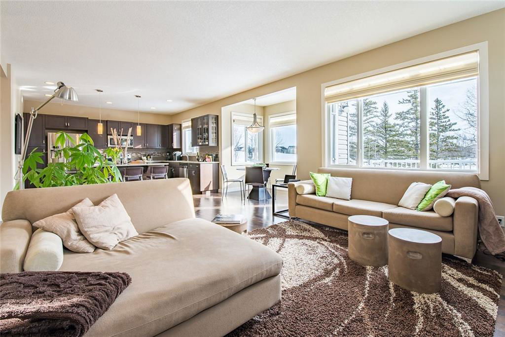 PREMIERE LOT on CRYSTAL RIDGE GOLF COURSE in quiet Cul-de-sac. NO NEIGHBOURS on three sides. 2429 SQ SF STUNNING two storey Crossley home. Wonderful OPEN CONCEPT main floor: SPACIOUS foyer opens to second level, DEN at the front of the home, DREAM kitchen featuring MASSIVE ISLAND, STAINLESS STEEL appliances, WALK THROUGH PANTRY, dining area has NATURAL LIGHT FLOWING on three sides, CUSTOM BOOK SHELVES surround the GAS FIREPLACE in living room. All in TRENDY DESIGNER colour scheme. HARDWOOD and TILE flooring, 9’ ceiling, custom boot room LOCKERS at back entrance are only a few of the many features. BONUS ROOM has VAULTED CEILING, owner’s suite offers a SITTING AREA to enjoy a PARK-LIKE yard, LUXURIOUS 5 piece ensuite , two more good size bedrooms and LAUNDRY AREA complete the upper level. Home owner association for LAKE ACCESS. Tough Markets come and go, but this EXQUISITE PLAN and LOCATION are FOREVER!!!