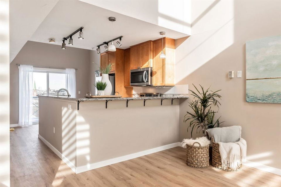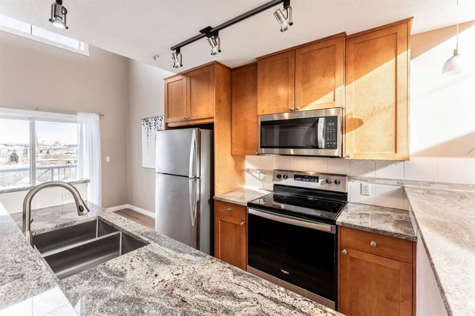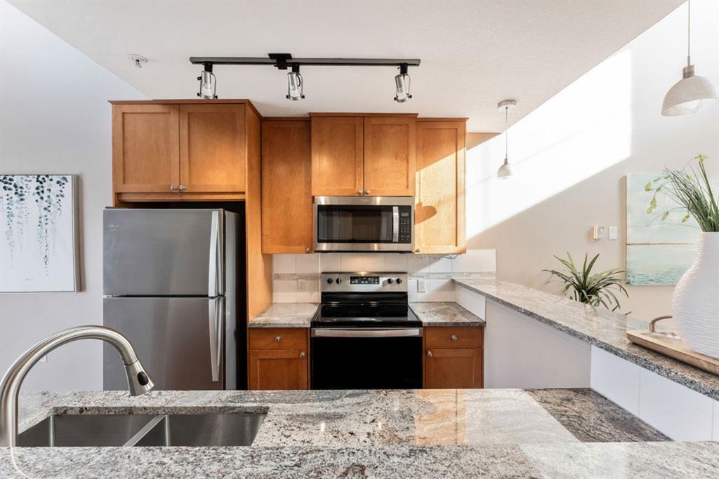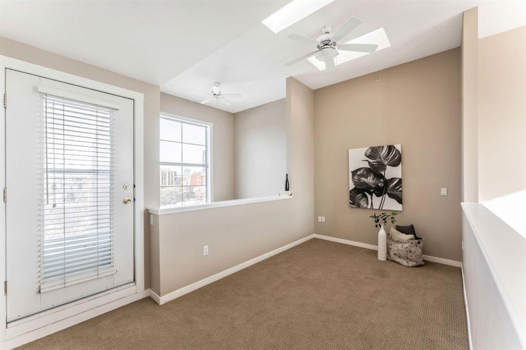 TOP-FLOOR PENTHOUSE LOFT on 17th Ave & Entertainment District, minutes from Calgary’s bike paths, Bow River paths, best restaurants, boutique shops & vibrant urban life. Bright open concept two story layout with kitchen, dining, living room, laundry, den, fireplace, bathroom and master bedroom with Juliette-balcony on main floor and open loft and second bathroom on upper floor. Recent upgrades include new stainless steel appliances, granite countertop in kitchen, and luxury vinyl plank flooring on main. Stunning huge windows throughout, balcony with gas hook-ups next to kitchen, and a PRIVATE 10’x12′ ROOFTOP PATIO offer spectacular unobstructed views of the city. Titled underground parking with storage locker conveniently located right next to the elevator. Use 3D VIRTUAL TOUR to walk through the home virtually, or book an appointment to check out in person.