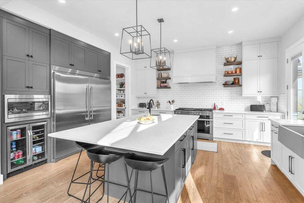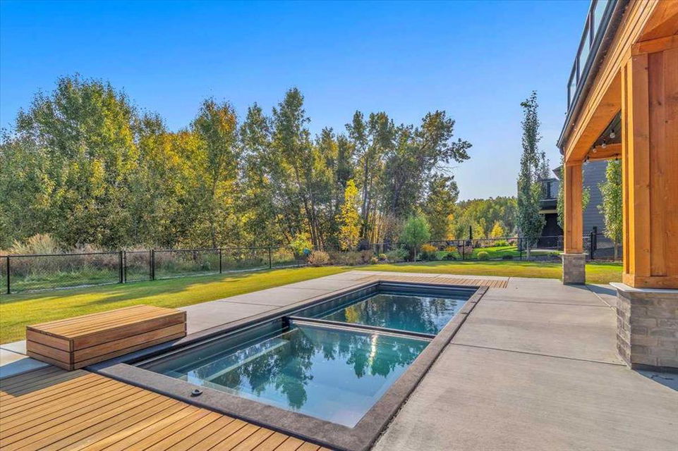 This stunning four-bedroom Estate home in Artesia at Heritage Pointe draws you in with style, warmth and stunning selections. With over 3,200 sq ft above grade, soaring windows throughout and vaulted ceilings take advantage of the breathtaking views of the tranquil woodland reserve behind while inviting in loads of natural light. Designed for both entertaining and family life, the heart of the home is a gourmet kitchen with upscale features, custom cabinetry, walkthrough pantry, farm sink and prep sink in the oversized island. Flowing into the dining area with lofty 2 story ceiling with reclaimed wood beams and views from above, you’ll enjoy your morning coffee on the expansive rear upper deck which provides the perfect spot for outdoor dining and relaxing while overlooking your year-round heated pool and trees beyond. Also on this main level is the living room with ambient wood-burning fireplace, guest bath and private main floor office. Upstairs, the private king-sized primary suite features tranquil views, vaulted ceiling and a spa-inspired ensuite with an oversized shower, heated floors, smart bidet, soaker tub and walk-in closet. Three more generously-sized bedrooms, two additional full baths, laundry room and a large family-sized bonus room offering flexible living space complete this floor. The Walkout lower level extends the living space with direct access to the professionally landscaped yard complete with a modular pool with safety cover featuring LED lighting, fountain and a seamless connection to the outdoors with space ready for your outdoor kitchen. The irrigation system, Triple Heated garage, Air Conditioning and Gemstone lighting add comfort and convenience with Smart home technology controlling lighting, climate, audio and security throughout. The community offers walking paths, ponds, green areas and is located just minutes from Heritage Pointe Golf Club, South Health Campus, shopping and dining, nearby amenities include gas station, pharmacy, childcare and top-rated schools. Quick access to Deerfoot and Stoney Trail makes commuting effortless. This exceptional home combines luxury, comfort and natural beauty in one of the region’s most prestigious communities. Video tour also available. Book your private showing today.