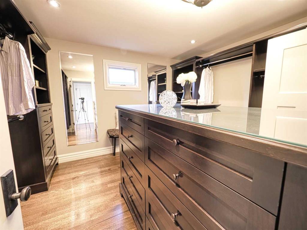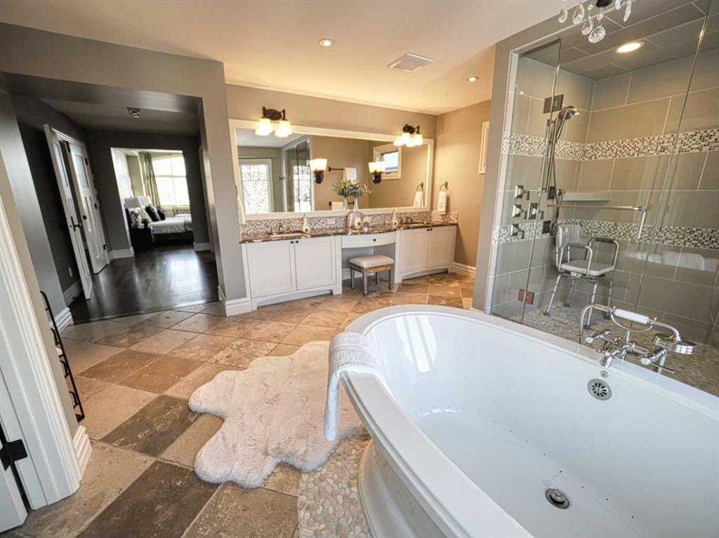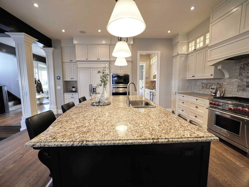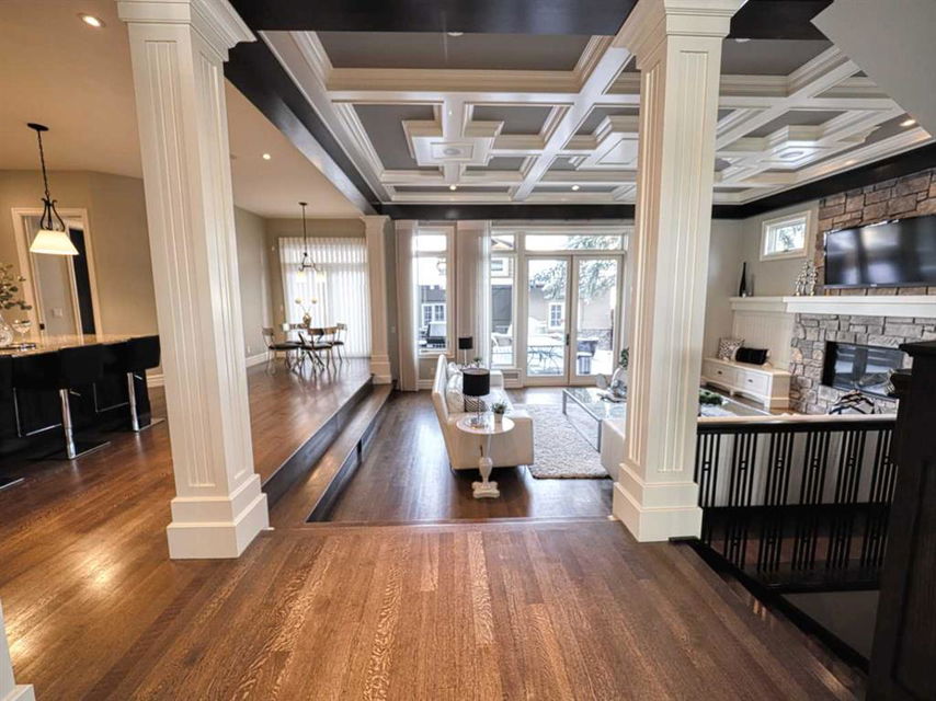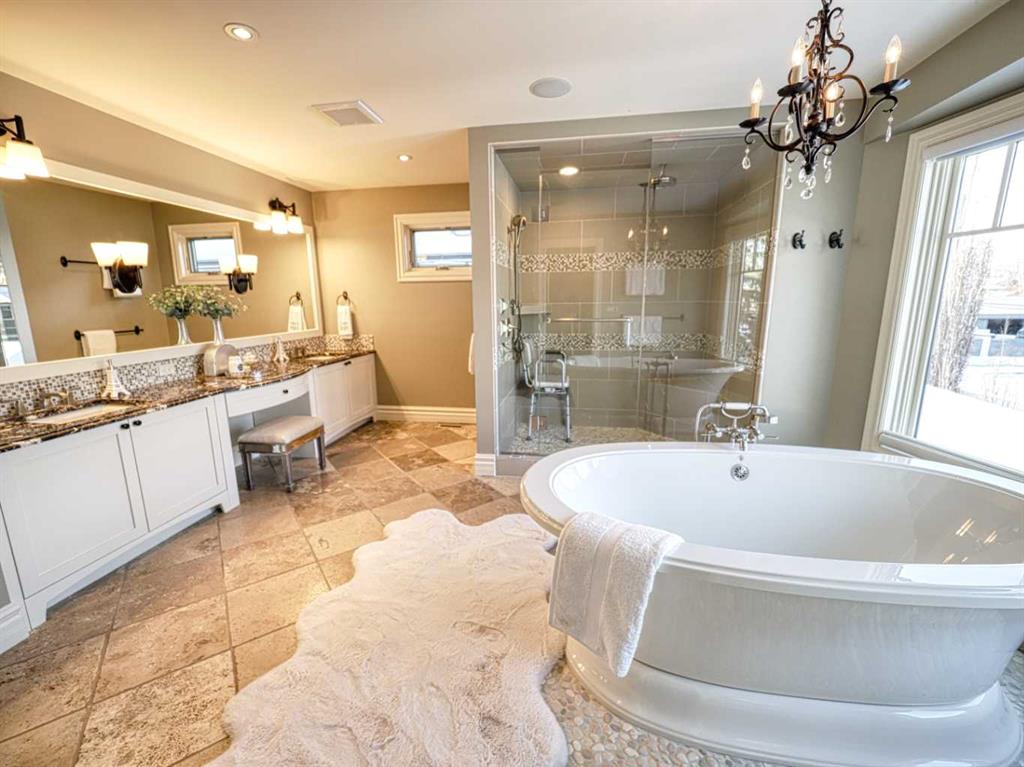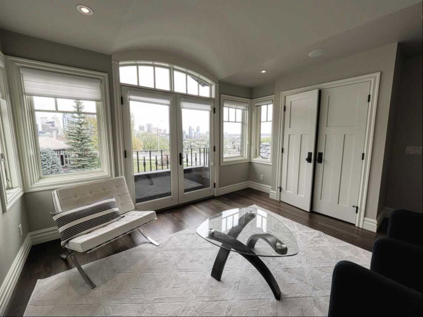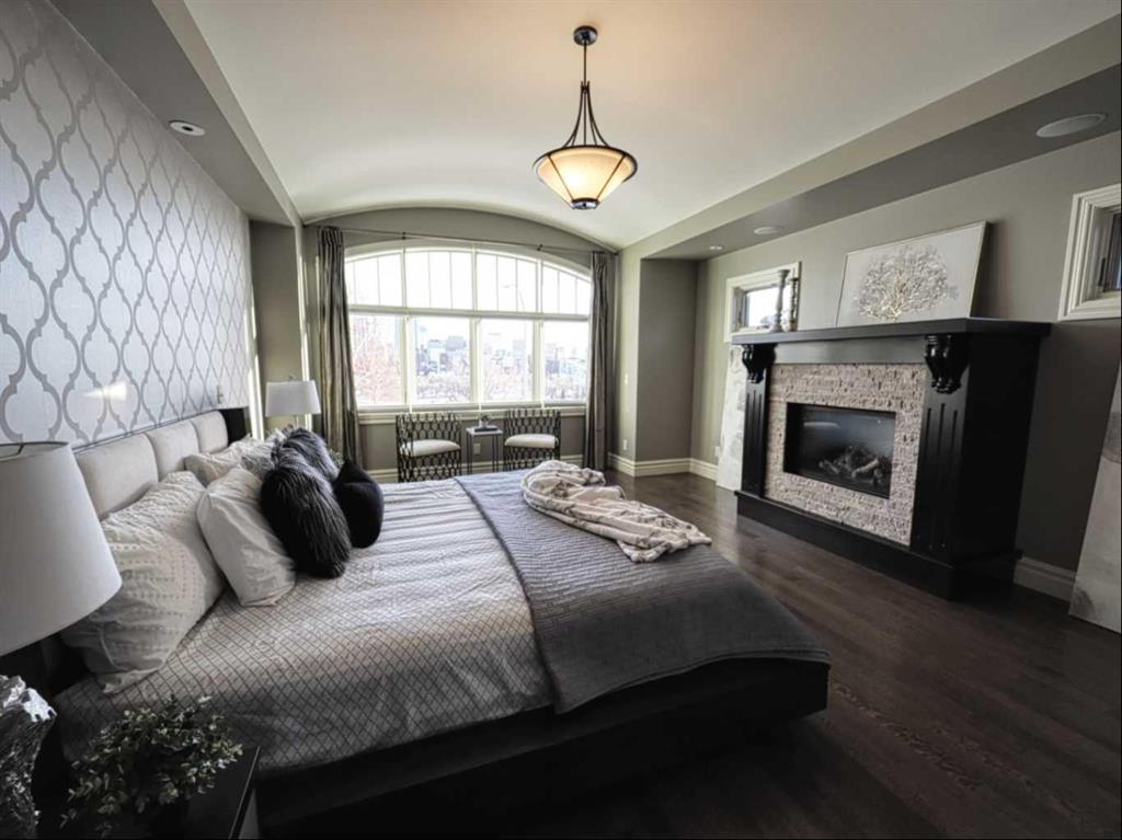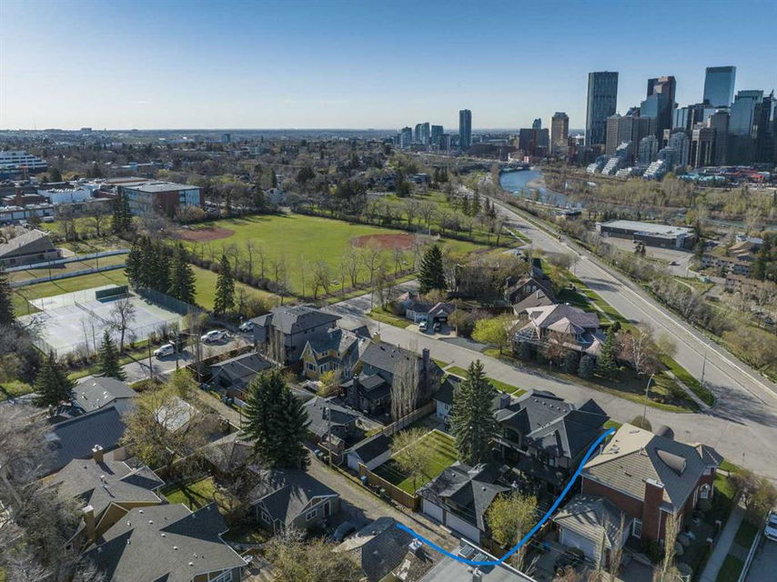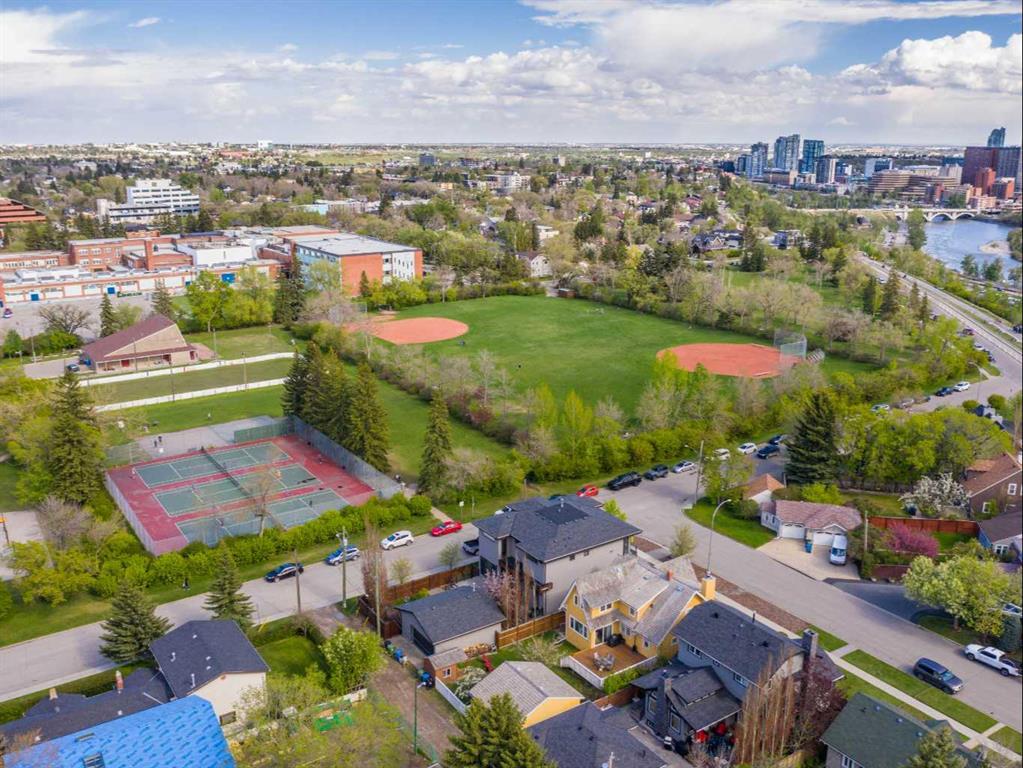 .. The ultimate inner city location, situated next to Crescent Park. Imagine being just steps away from tennis courts, a basketball court, skating rink, playground, curling rink, and two baseball diamonds! Very quiet location tucked in just behind Crescent Road, a short walk to downtown, Prince’s Island, St Patrick’s Island and the Bow River pathway. Bordering Rosedale with City, River & Mountains views and steps from coveted Crescent Road. Impressive, 5024 sq. ft. custom built 4 bedroom home that will blow you away. Timeless design & comfortable elegance featuring 10 & 12 foot coffered ceilings, massive chef’s kitchen, quartz counters, butler’s pantry, Wolf and Sub Zero appliances. Open concept floor plan with seamless transitions. Kitchen flows to the amazing sunken living room complete with stone fireplace, quarter sawn hardwood floors, French doors with easy egress and view of the stunning, backyard oasis. The expansive main floor is equipped with a large custom office and dining room where you can enjoy City views. Posh second floor is complete with a library which could easily be converted to a bedroom, another beautiful bedroom and your private, Master retreat with city views, barrel ceilings, fireplace, luxurious 5 piece ensuite, spacious and efficient walk in closet. The perfectly arranged upstairs laundry room makes this chore a breeze. Thoughtfully designed lower level is sure to please anyone with a media room, bar, fireplace, pool room, gym, wine cellar a bedroom and large custom 4 piece bath with steam shower. Also notable is a heated, triple dream garage which is over the top, sensational!