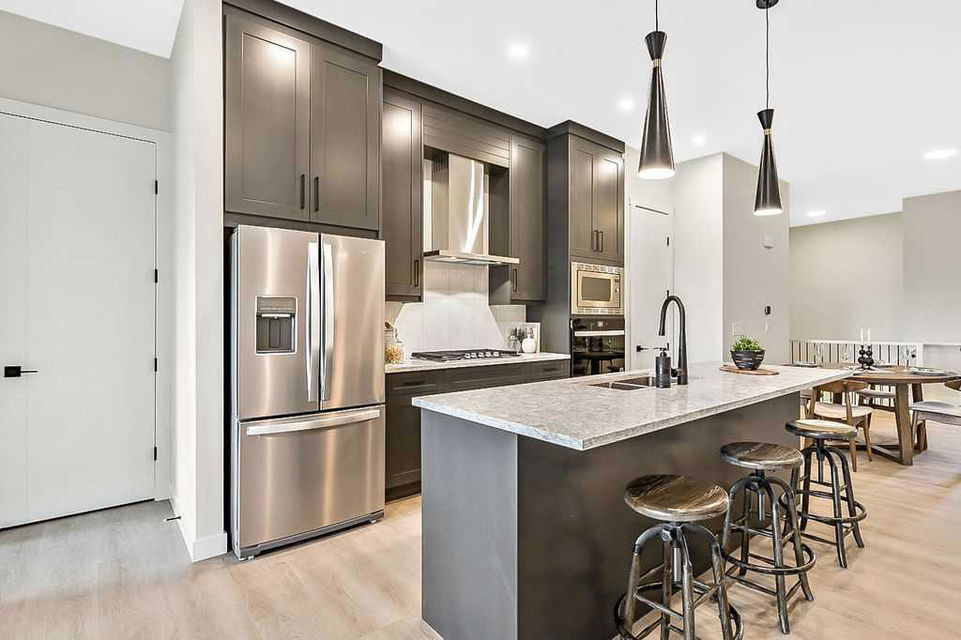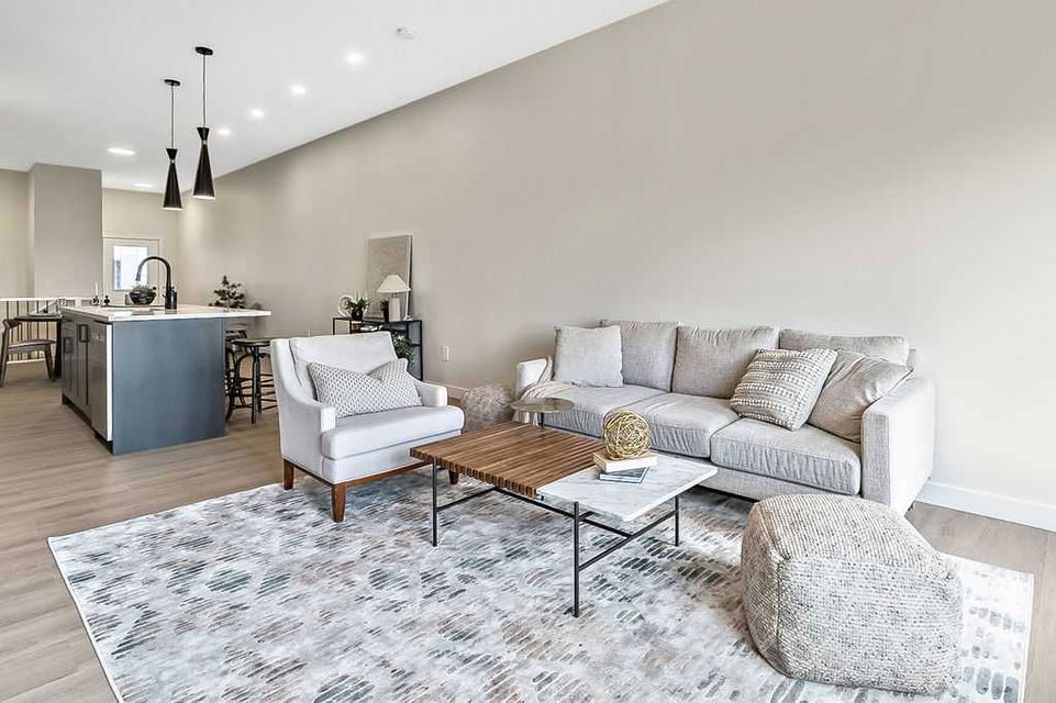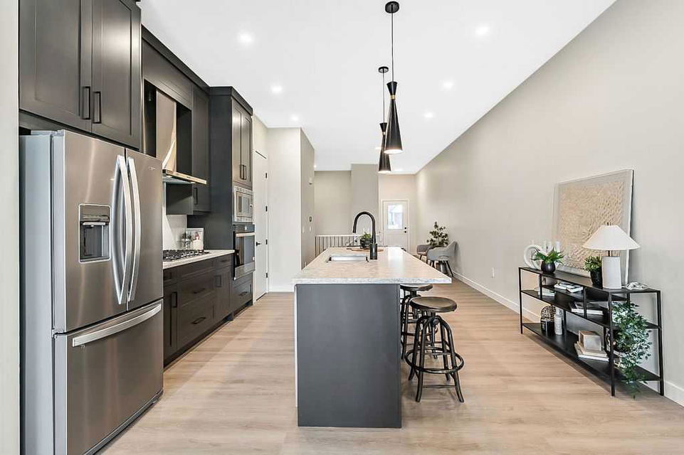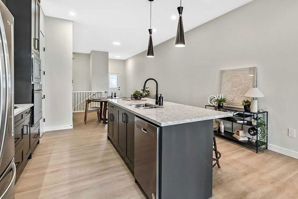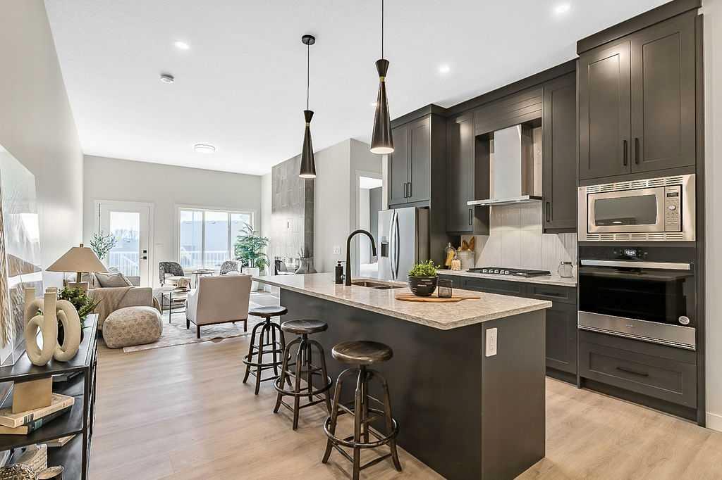 BRAND NEW & GORGEOUS “Sereno” attached 1300sq.ft.+ walk-out bungalow in the heart of charming Okotoks, built by Luxe & ready for quick possession! Step inside (click 3D tour) and you’ll fall in love with this home’s elegant designer style, generous spaces, modern open concept, and south back yard! Beautiful GOURMET KITCHEN & DINING area feature ceiling height cabinets, 36” stove and hood fan, stainless steel appliances, Moen plumbing fixtures, superb oversized island & quartz countertop. LIVING ROOM is flooded with natural light and exudes warm ambiance, features fireplace w floor to ceiling tile surround, and glass door to outdoor lounging area. PRIMARY BEDROOM is perfect for a king sized bed, and features large window, huge walk-in closet & built-ins, spa like ensuite bathroom with 40” high bathroom mirrors, two under mounted sinks, and beautiful quart counters. INTERIOR FINISHING features knockdown texture ceiling, beautiful engineered hardwood floors and tiles, 3” baseboards, swing doors to all closets & more. Other notable items include low-E argon filled windows, programmable thermostat, flow through humidifier, 50 gallon electric hot water tank, air circulation recovery system, and high efficiency heating. WALK-OUT BASEMENT is unfinished, and has ample space for two additional bedrooms and a large rec room. SOUTH BACK YARD offers plenty of room for outdoor lounging & entertaining. Want to know a bit about the builder? Luxe by Luxuria Homes is a family builder focused on families. They have a well-established history of building throughout Calgary, Chestermere, Cochrane and now in Okotoks, together with a strong commitment to foster positive impact in these communities. Luxe offers industry standard 1-2-5-10 year building warranty for all of their product, and are committed to ensuring buyer satisfaction. Priced at just $599K (including GST), this attached walk-out bungalow can’t be beat! Price with developed basement is $650K.