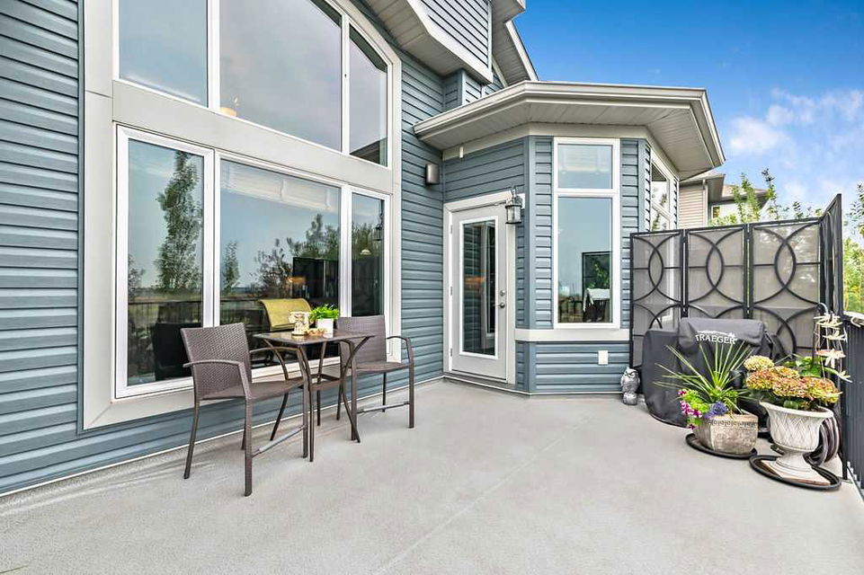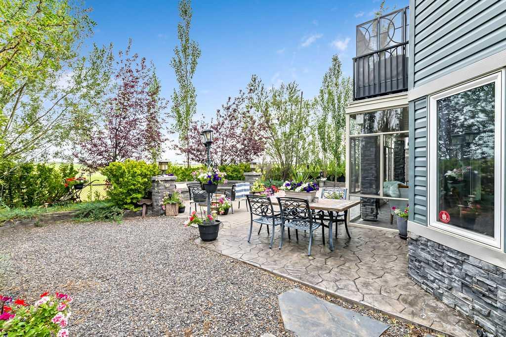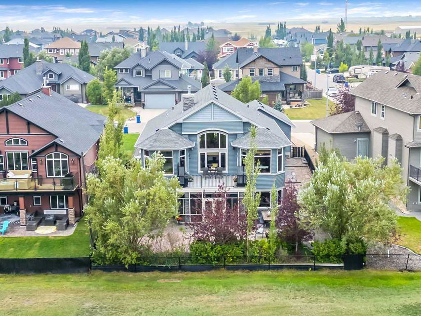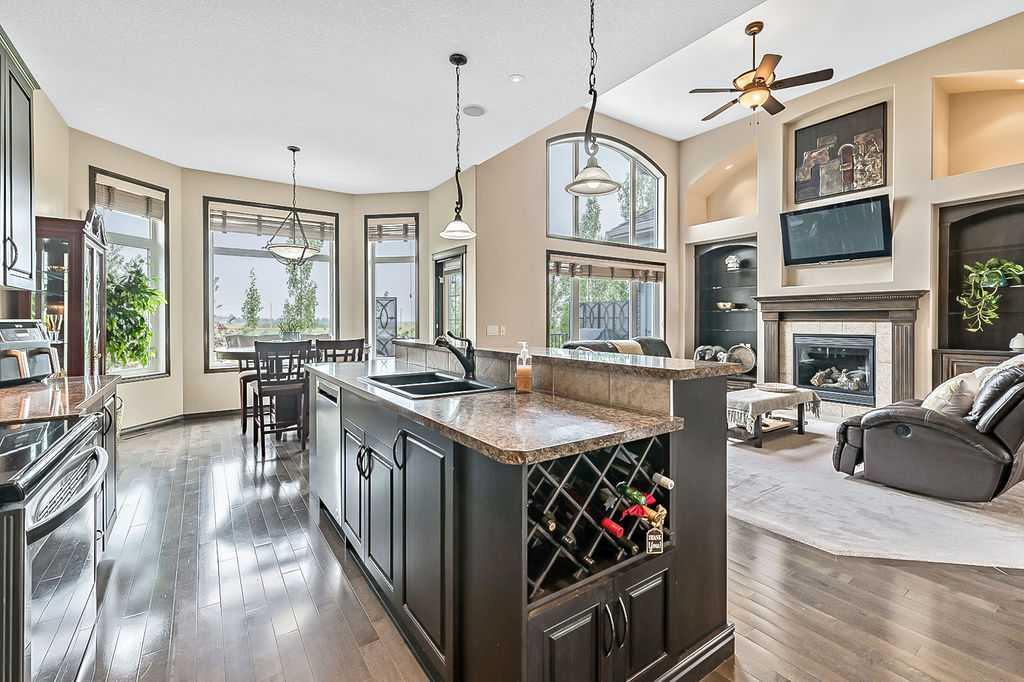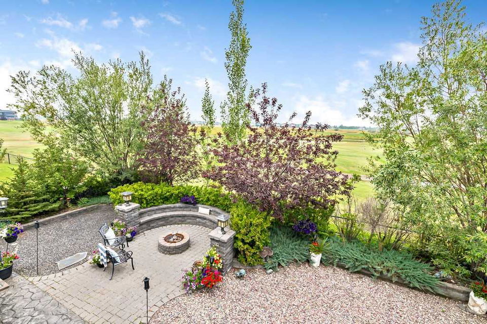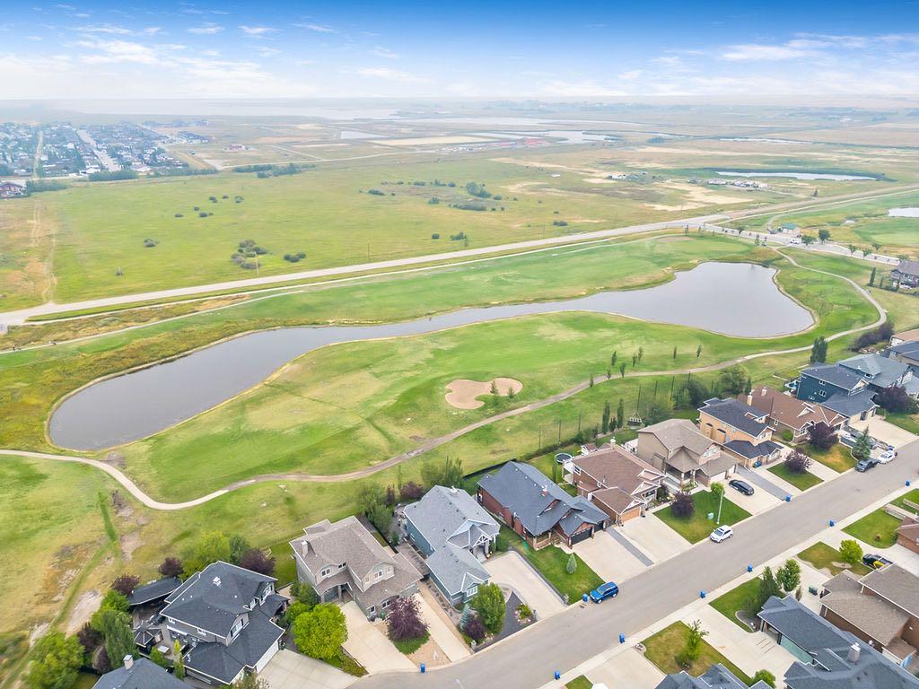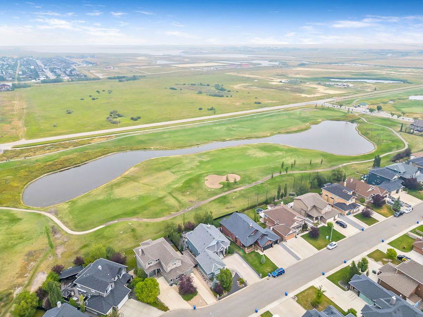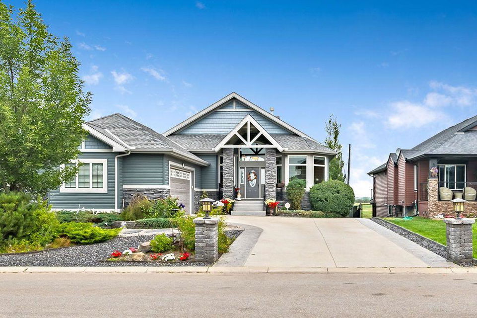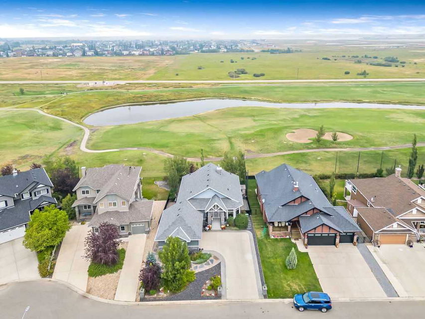 Have you been to Langdon lately? BIGGER LOTS, BETTER PRICES, and amazing GOLF COURSE LIVING make it an appealing choice for many! This gorgeous ESTATE WALKOUT BUNGALOW is a must see with its 3520SQFT+ of living space, superb location backing onto Boulder Creek Golf Course, and stunning views of rolling landscapes, ponds and beautiful mature vegetation. Step in (click 3D for walkthrough video), and you will see quality, warmth and ambiance throughout this custom home. MAIN LEVEL features soaring 14’ high ceiling, large living room with gas fire place, open dining area, and kitchen with walkthrough pantry & huge island. Large windows overlooking the golf course define this space and exude elegant sophistication. Primary bedroom is spacious and features huge ensuite bathroom with double sinks, shower, jetted tub, plus large walk-in closet. Bright den (or second bedroom) with bay window, spacious dining room (or optional second den), main floor laundry, and half bath complete this level. LOWER LEVEL features 9’ ceiling, huge recreation room with gas fire place and plenty of space for pool table & games room, a private media room, plus two additional large bedrooms and full bathroom. And wait, there is more! Stepping outside, you will fall in love with this home’s STUNNING 3-SEASON SUN-ROOM, a fully enclosed “outdoor” room with stamped concrete flooring, optional gas fire table, opening walls/screens & double doors to back yard. BACK YARD is beautifully landscaped with garden beds, mature trees, stamped concrete patio, and beautiful stone fire-pit & seating area. Did we mention the maple hardwood flooring, the permanent LED SOFFIT LIGHTING, underground irrigation system, OVERSIZED (21’1″ x 25’6″) HEATED GARAGE, and newer hot water tank & kitchen appliances? If you’re looking for a gorgeous walk-out bungalow in a tranquil setting with great neighbours, all under $900K, then THIS IS IT!!!