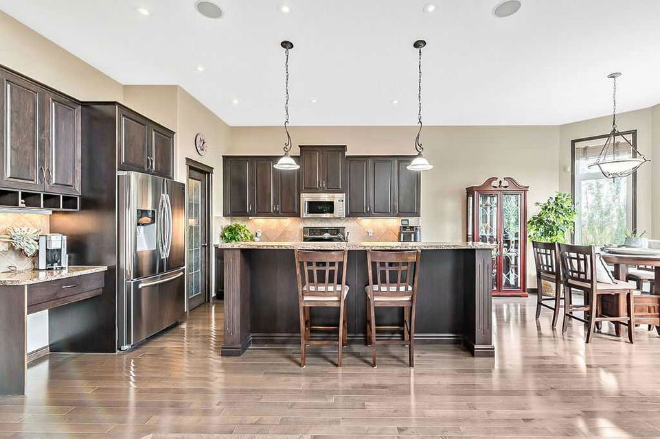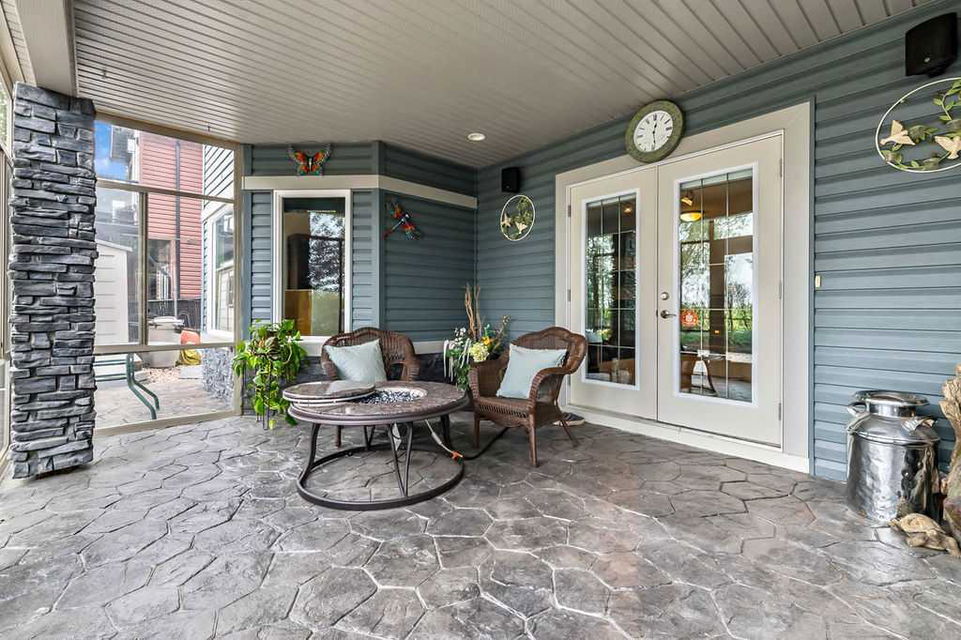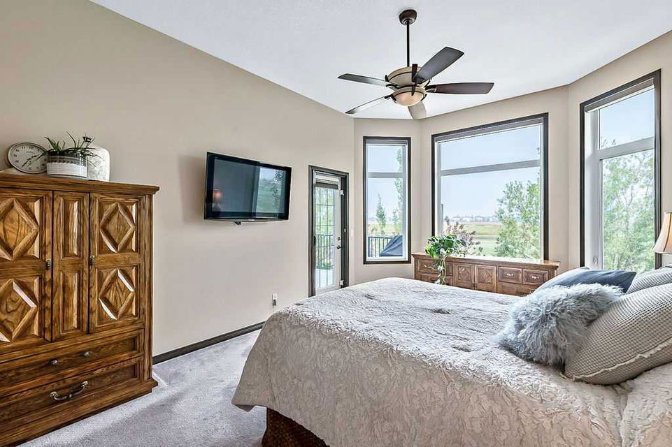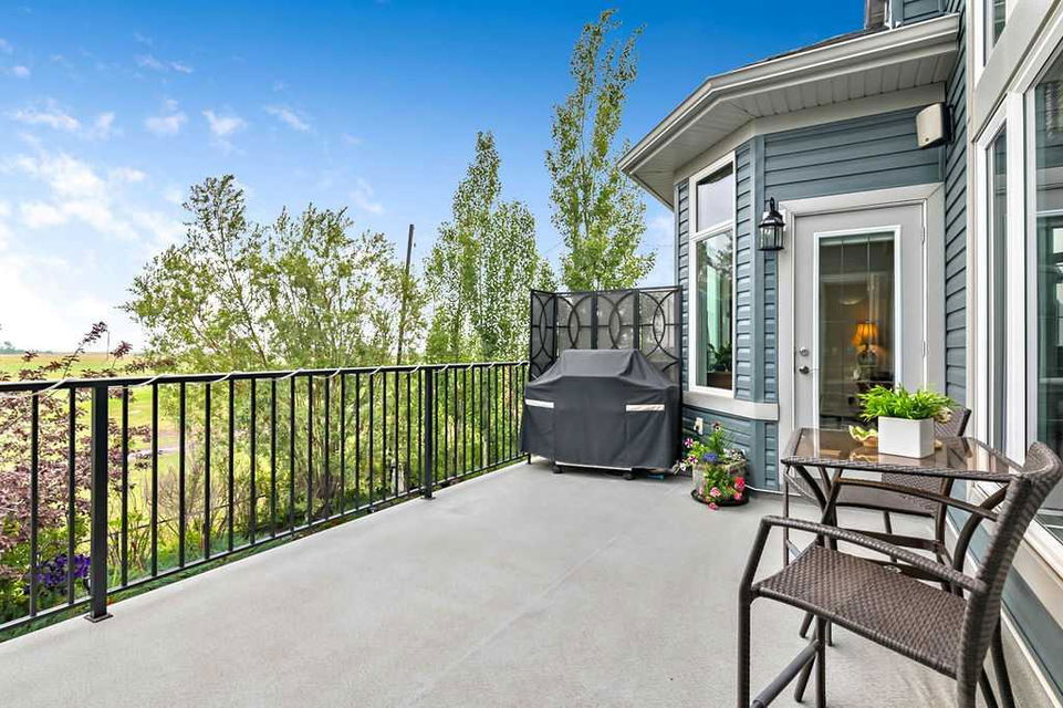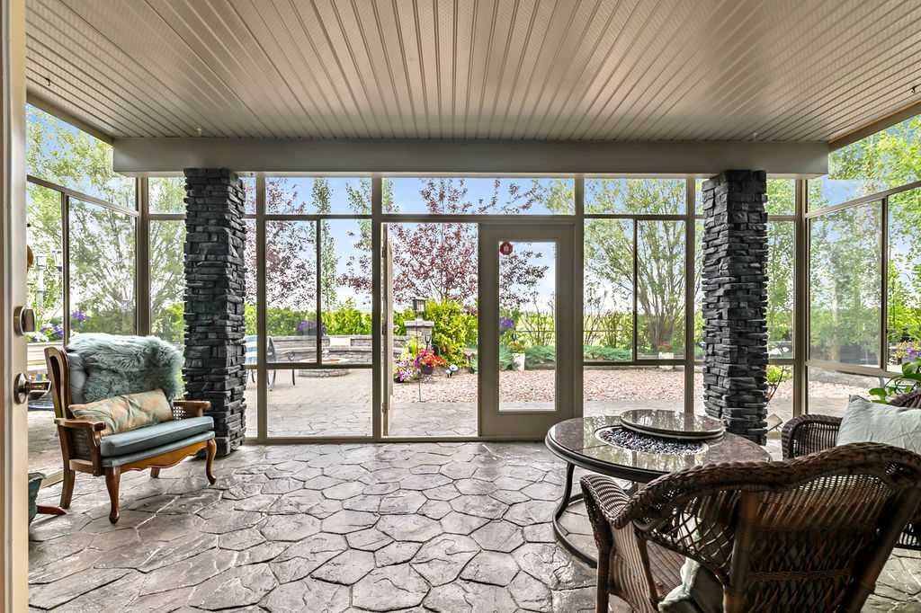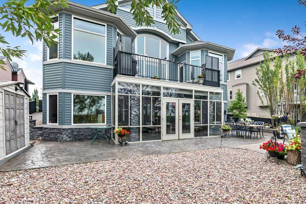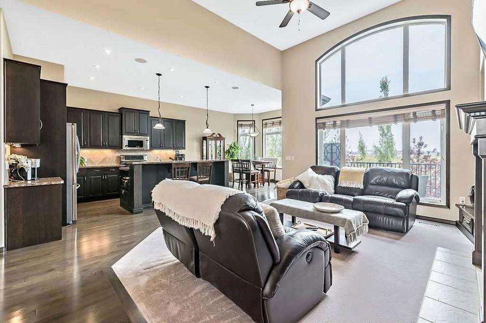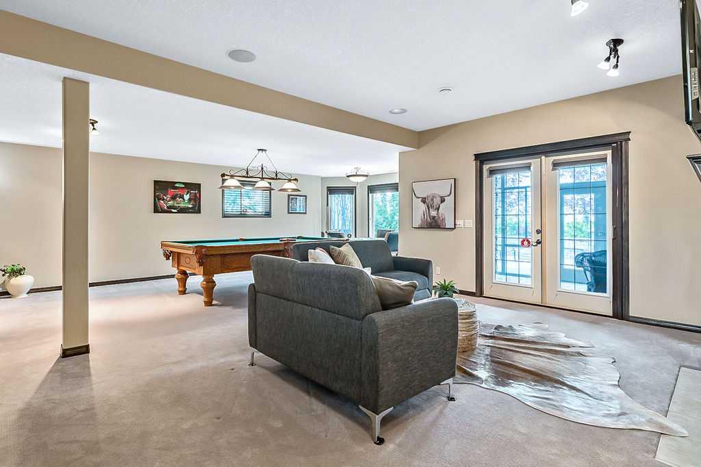 Have you been to Langdon lately? BIGGER LOTS, BETTER PRICES, and amazing GOLF COURSE LIVING make it an appealing choice for many! This gorgeous ESTATE WALKOUT BUNGALOW is a must see with its 3520SQFT+ of living space, superb location backing onto Boulder Creek Golf Course, and stunning views of rolling landscapes, ponds and beautiful mature vegetation. Step in (click 3D for walkthrough video), and you will see quality, warmth and ambiance throughout this custom home. MAIN LEVEL features soaring 14’ high ceiling, large living room with gas fire place, open dining area, and kitchen with walkthrough pantry & huge island. Large windows overlooking the golf course define this space and exude elegant sophistication. Primary bedroom is spacious and features huge ensuite bathroom with double sinks, shower, jetted tub, plus large walk-in closet. Bright den (or second bedroom) with bay window, spacious dining room (or optional second den), main floor laundry, and half bath complete this level. LOWER LEVEL features 9’ ceiling, huge recreation room with gas fire place and plenty of space for pool table & games room, a private media room, plus two additional large bedrooms and full bathroom. And wait, there is more! Stepping outside, you will fall in love with this home’s STUNNING 3-SEASON SUN-ROOM, a fully enclosed “outdoor” room with stamped concrete flooring, optional gas fire table, opening walls/screens & double doors to back yard. BACK YARD is beautifully landscaped with garden beds, mature trees, stamped concrete patio, and beautiful stone fire-pit & seating area. Did we mention the maple hardwood flooring, the permanent LED SOFFIT LIGHTING, underground irrigation system, OVERSIZED (21’1″ x 25’6″) HEATED GARAGE, and newer hot water tank & kitchen appliances? If you’re looking for a gorgeous walk-out bungalow in a tranquil setting with great neighbours, all under $900K, then THIS IS IT!!!