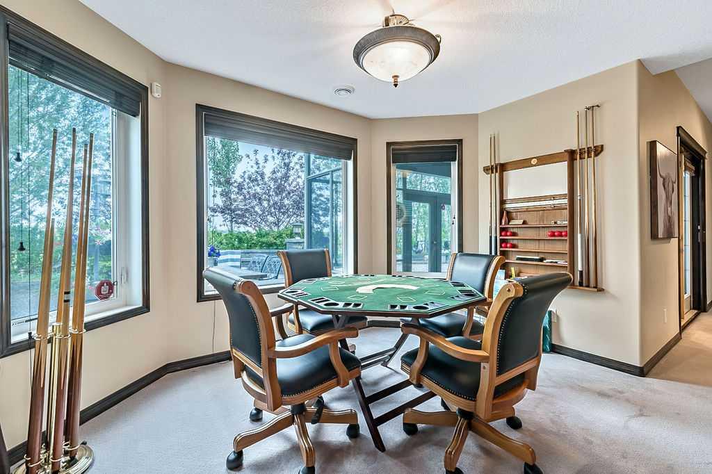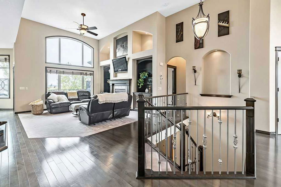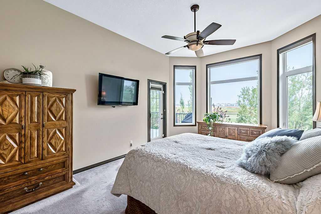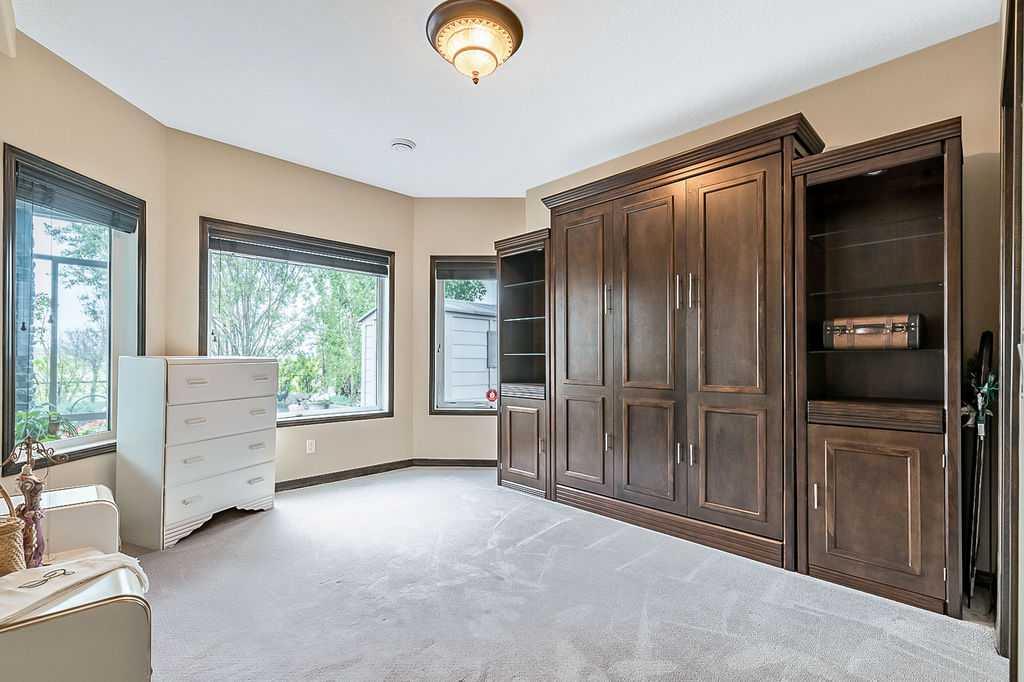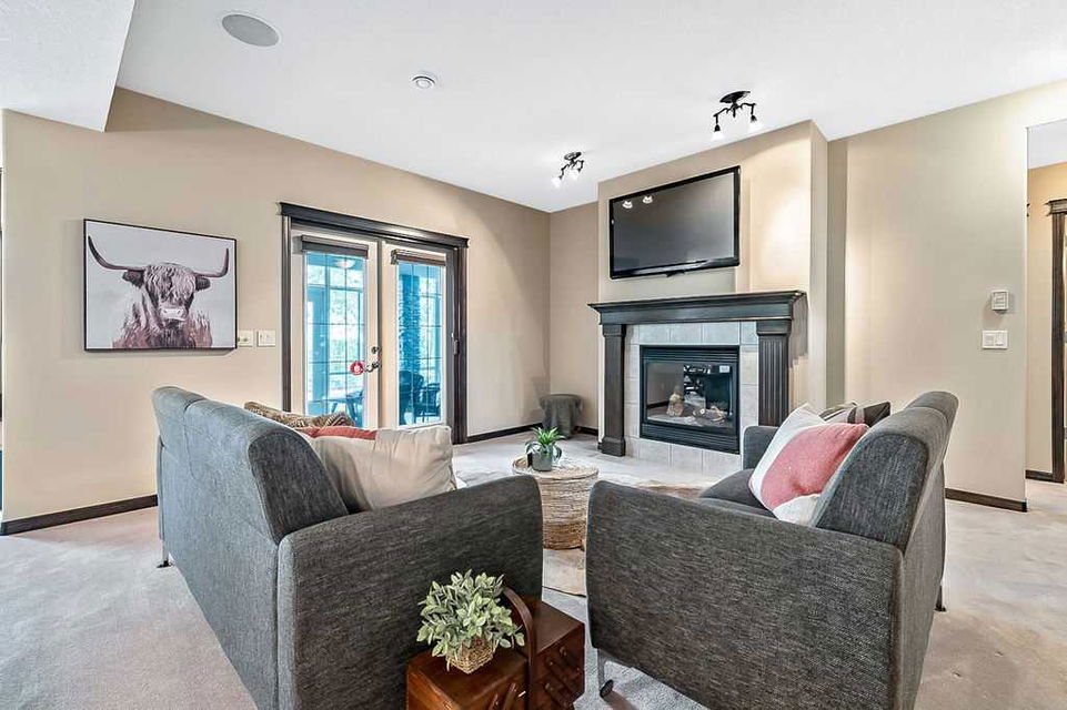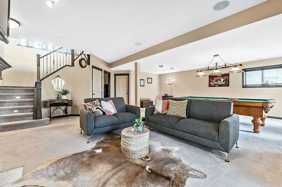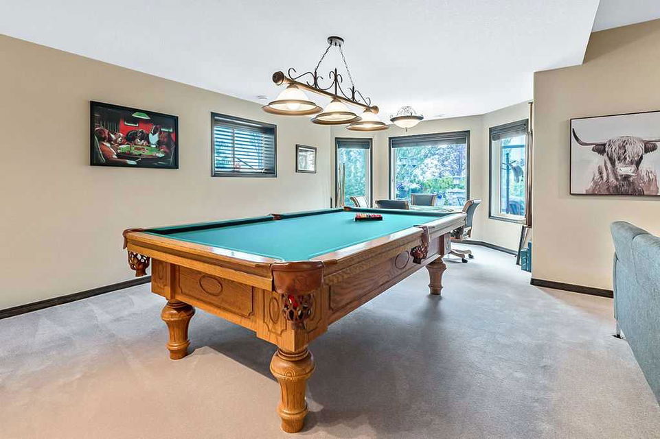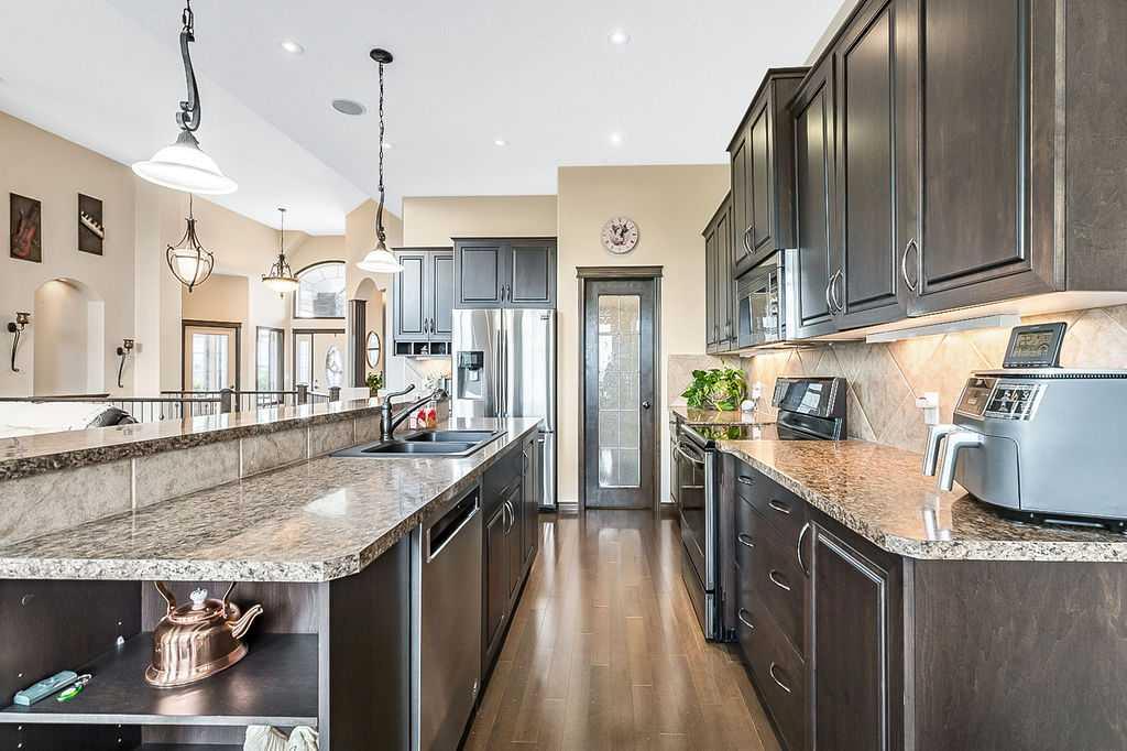Have you been to Langdon lately? BIGGER LOTS, BETTER PRICES, and amazing GOLF COURSE LIVING make it an appealing choice for many! This gorgeous ESTATE WALKOUT BUNGALOW is a must see with its 3520SQFT+ of living space, superb location backing onto Boulder Creek Golf Course, and stunning views of rolling landscapes, ponds and beautiful mature vegetation. Step in (click 3D for walkthrough video), and you will see quality, warmth and ambiance throughout this custom home. MAIN LEVEL features soaring 14’ high ceiling, large living room with gas fire place, open dining area, and kitchen with walkthrough pantry & huge island. Large windows overlooking the golf course define this space and exude elegant sophistication. Primary bedroom is spacious and features huge ensuite bathroom with double sinks, shower, jetted tub, plus large walk-in closet. Bright den (or second bedroom) with bay window, spacious dining room (or optional second den), main floor laundry, and half bath complete this level. LOWER LEVEL features 9’ ceiling, huge recreation room with gas fire place and plenty of space for pool table & games room, a private media room, plus two additional large bedrooms and full bathroom. And wait, there is more! Stepping outside, you will fall in love with this home’s STUNNING 3-SEASON SUN-ROOM, a fully enclosed “outdoor” room with stamped concrete flooring, optional gas fire table, opening walls/screens & double doors to back yard. BACK YARD is beautifully landscaped with garden beds, mature trees, stamped concrete patio, and beautiful stone fire-pit & seating area. Did we mention the maple hardwood flooring, the permanent LED SOFFIT LIGHTING, underground irrigation system, OVERSIZED (21’1″ x 25’6″) HEATED GARAGE, and newer hot water tank & kitchen appliances? If you’re looking for a gorgeous walk-out bungalow in a tranquil setting with great neighbours, all under $900K, then THIS IS IT!!!