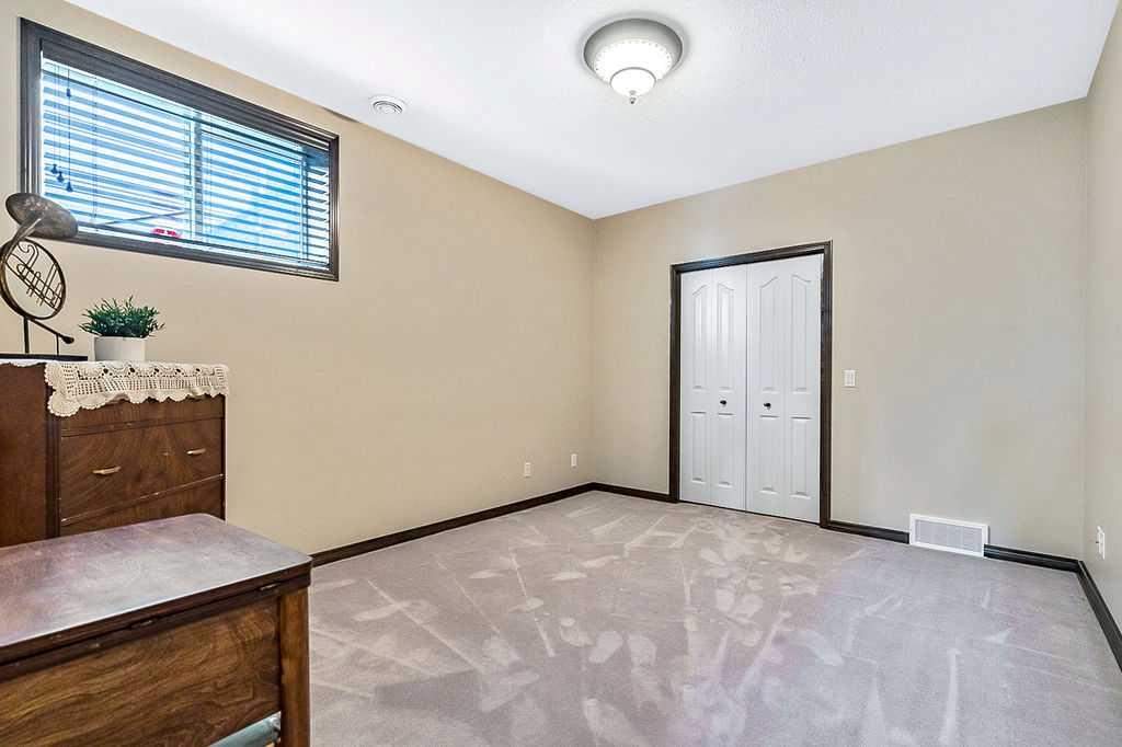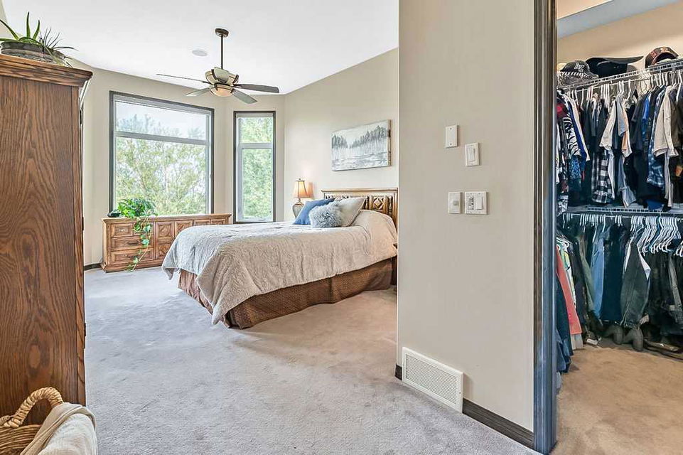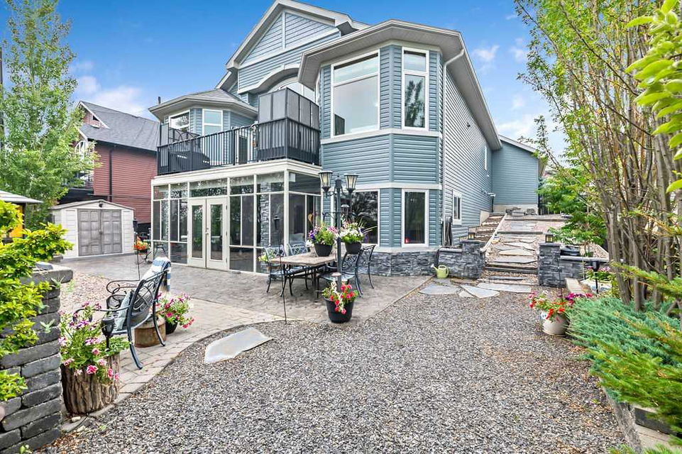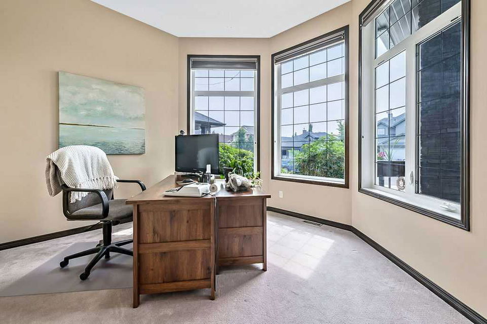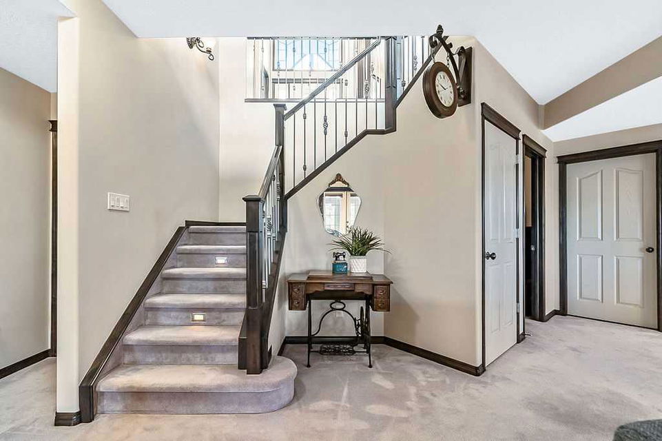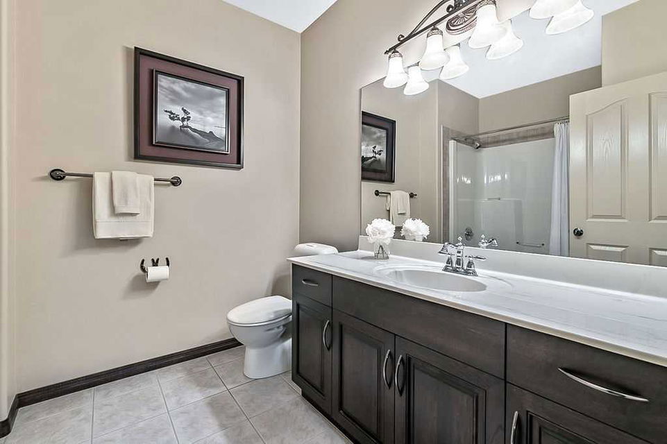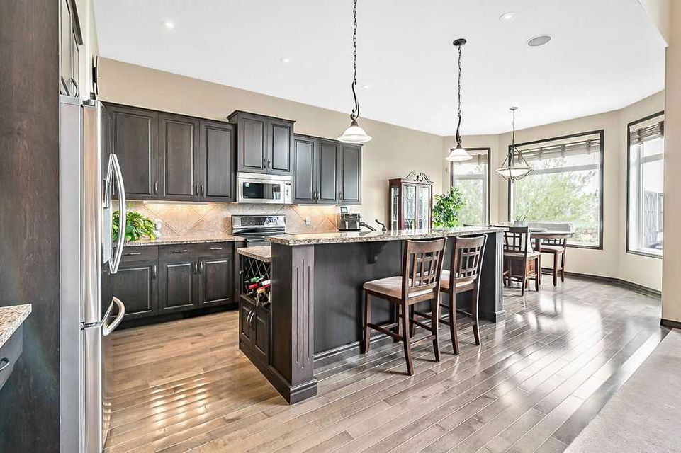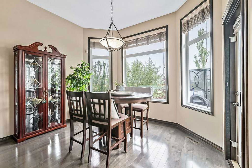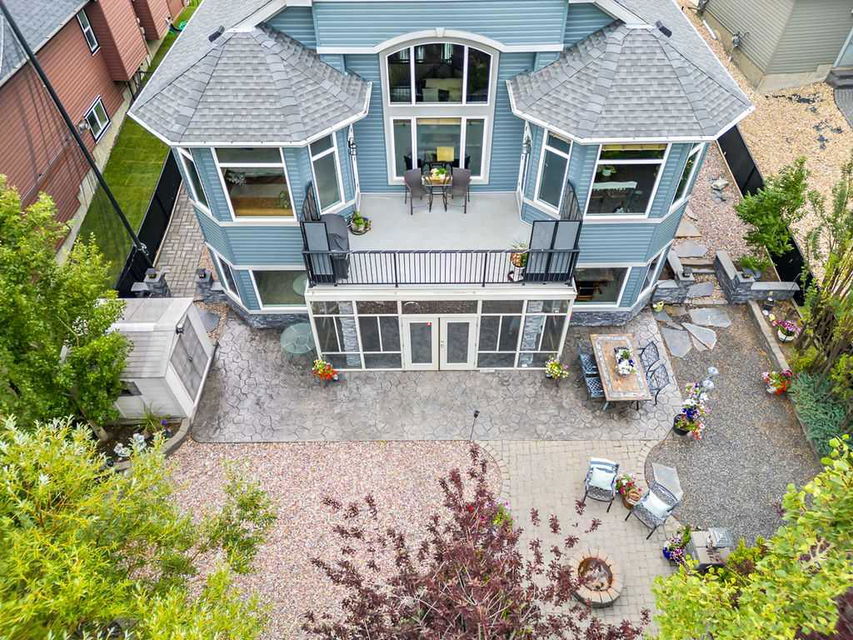 Have you been to Langdon lately? BIGGER LOTS, BETTER PRICES, and amazing GOLF COURSE LIVING make it an appealing choice for many! This gorgeous ESTATE WALKOUT BUNGALOW is a must see with its 3520SQFT+ of living space, superb location backing onto Boulder Creek Golf Course, and stunning views of rolling landscapes, ponds and beautiful mature vegetation. Step in (click 3D for walkthrough video), and you will see quality, warmth and ambiance throughout this custom home. MAIN LEVEL features soaring 14’ high ceiling, large living room with gas fire place, open dining area, and kitchen with walkthrough pantry & huge island. Large windows overlooking the golf course define this space and exude elegant sophistication. Primary bedroom is spacious and features huge ensuite bathroom with double sinks, shower, jetted tub, plus large walk-in closet. Bright den (or second bedroom) with bay window, spacious dining room (or optional second den), main floor laundry, and half bath complete this level. LOWER LEVEL features 9’ ceiling, huge recreation room with gas fire place and plenty of space for pool table & games room, a private media room, plus two additional large bedrooms and full bathroom. And wait, there is more! Stepping outside, you will fall in love with this home’s STUNNING 3-SEASON SUN-ROOM, a fully enclosed “outdoor” room with stamped concrete flooring, optional gas fire table, opening walls/screens & double doors to back yard. BACK YARD is beautifully landscaped with garden beds, mature trees, stamped concrete patio, and beautiful stone fire-pit & seating area. Did we mention the maple hardwood flooring, the permanent LED SOFFIT LIGHTING, underground irrigation system, OVERSIZED (21’1″ x 25’6″) HEATED GARAGE, and newer hot water tank & kitchen appliances? If you’re looking for a gorgeous walk-out bungalow in a tranquil setting with great neighbours, all under $900K, then THIS IS IT!!!