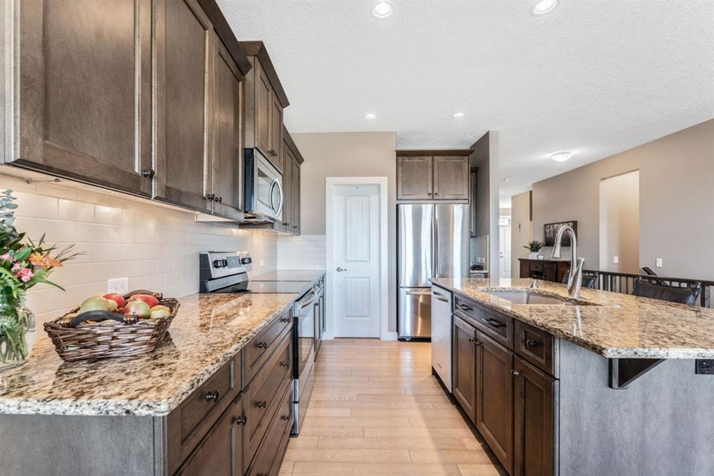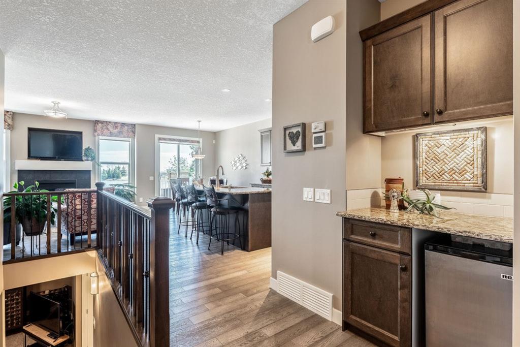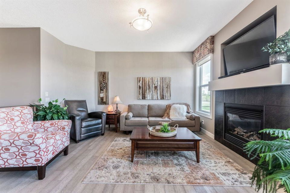 MILLION DOLLAR VIEW alert!!! Immaculate fully developed BUNGALOW backing onto wildlife preserve pond offering amazing views year-round of pond, array of birds & fauna, sunrise, and beautiful sunset reflections. Main floor features open concept plan with 9’ ceiling, stunning kitchen (ss appliances, granite, island, motion sensor tap, soft close drawers & doors, pot drawers), extra large pantry, living room with fireplace, master bedroom with huge ensuite and walk-in closet, a second bedroom plus main floor laundry. Lower level features two more bedrooms, full bathroom, large rec room, and spacious storage room. Upgraded finishing throughout with engineered oak hardwood, ceramic tile and beautiful nutmeg maple cabinetry. Whole-house water filtration system, radon mitigation system, a/c, and central vac complete the package. Double attached garage is long enough at 22’ for a full sized truck. Backyard is an outdoor oasis, professionally landscaped for over $32K, paverstone patio, large deck with gasline for BBQ, privacy screen, programmed underground irrigation w rain sensor, and ‘deer repellant’ vegetation specifically planned for this area by Kayben Landscaping. Neighbourhood is amazing with stunning paths and some of the best neighbours one could ask for. All in all, this is truly a GEM inside and out, on one of the BEST LOTS in Okotoks!