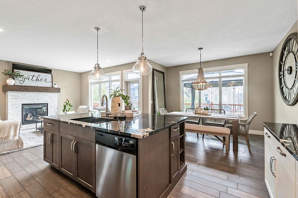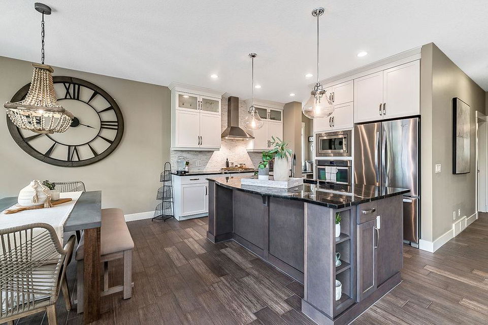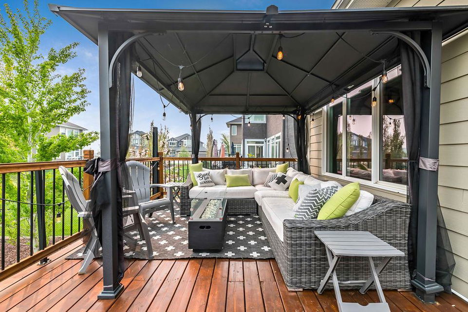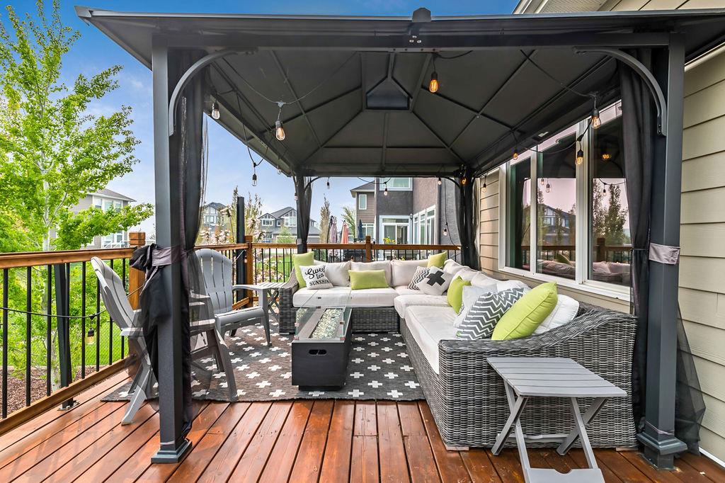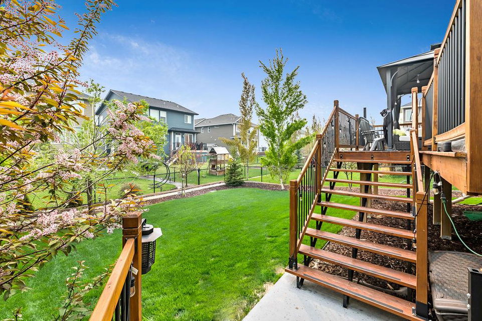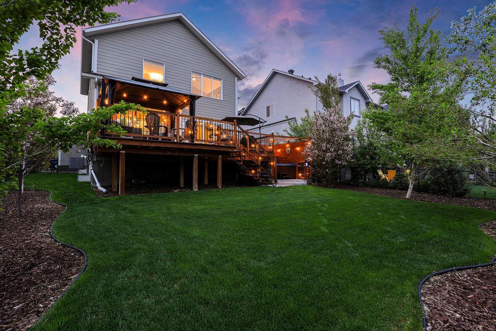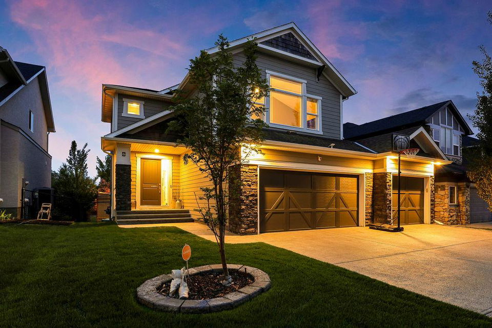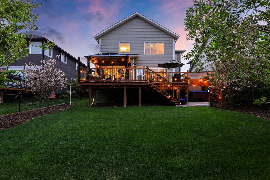 EXQUISITELY FINISHED luxury home with TRIPLE GARAGE on gorgeous 7000sq.ft.+ property with SOUTH YARD in prestigious AIR RANCH, surrounded by estate homes, parks, pathways, wetlands & gorgeous rolling landscapes! Step inside (click 3D for virtual tour), see the $125K+ “extras” these sellers have put put into their property, and fall in love the warm ambiance, superb quality, and amazing indoor/outdoor living spaces of the home. MAIN FLOOR features den with double French doors, living room with gorgeous gas fireplace, stunning kitchen with extended height cabinetry & granite countertop, oversized island, coffee station & walk-in pantry, dining room with windows and natural light, amazing rear hallway with built-in locker storage system, plus half bath. UPPER FLOOR features GORGEOUS primary bedroom with VAULTED CEILING, luxurious ensuite bathroom w large soaker tub and spacious stone tile shower (plus private toilet area), and huge walk-in closet. Two more bedrooms, both with their own walk-in closets, another full bathroom, spacious laundry room, and large bonus room with vaulted ceiling & great natural light complete this floor. BASEMENT is undeveloped space with four large windows, and offers ample room for rec room, gym, fourth bedroom & more. TRIPLE GARAGE (23.6’ by 30’) is insulated, drywalled, painted, heated, and comes with professional built-in cabinetry, slat walls PLUS five-layer epoxy flooring. BACK YARD is professionally landscaped, and offers a private oasis with large deck (12’ x 28’), gazebo, hot tub with privacy screen on 3 sides, plus gorgeous mature vegetation and six-zone underground irrigation system. Did we mention Hardie-board exterior, rounded corners throughout, AC, dual-zone heating (plus upstairs bathrooms hot water on-demand)? LOCATION is truly one of the best in Okotoks, in a private cul-de-sac within an estate neighbourhood, and still only minutes from parks, schools, recreation centre, golf, river pathways, shopping & more. If you’re looking for a STUNNING ESTATE home with all the luxury upgrades plus triple garage in a sought-after community, then this is the one!!!
