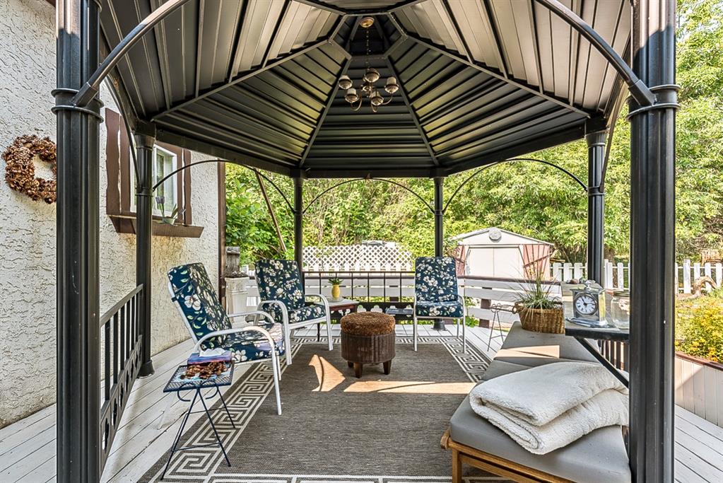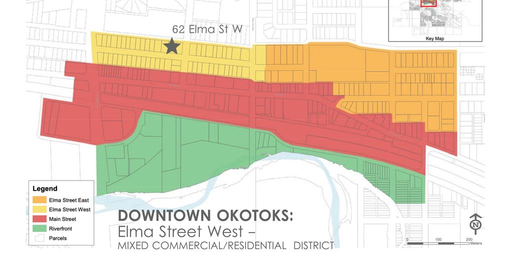 Property in Downtown Okotoks in mixed use residential/commercial area on beautiful Elma Street! Imagine a place where you can live, work and play … imagine a home where running a shop, a bed & breakfast, a small restaurant, or a studio is a possibility. Imagine living steps from the coolest little coffee places, galleries and boutique stores. If that’s what you’ve been looking for, then THIS MAY BE THE ONE! This adorable home on HUGE 75’x125’ LOT on beautiful Elma Street is surrounded by a mix of residential homes, artist workshops, adorable coffee places and small retail shops and is filled with potential. Home was originally built in 1941 and has seen multiple updates over the years with newer roof, windows & doors, and added insulation. With numerous updates over the years, home today is a mixture of old-world charm, big windows and light. Main floor is bright and spacious, featuring large living room with views of Elma Street, open concept kitchen and dining room with views of huge back yard, two bedrooms and main bathroom. Basement has low ceilings but is certainly usable, currently featuring laundry room, a third bedroom with bathroom (sometimes rented out on AirBnB), and partially developed rec room, storage & tool room. Huge yard backs onto Lineham Park, and is truly private oasis with large deck, gazebo, shed, mature trees and shrubs. All in all, 62 Elma is the perfect cottage on one of the biggest lots in Okotoks’ one and only heritage district. Make it your own!