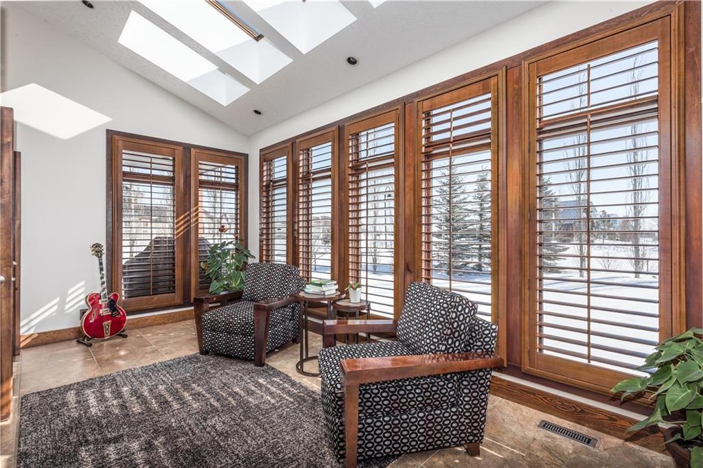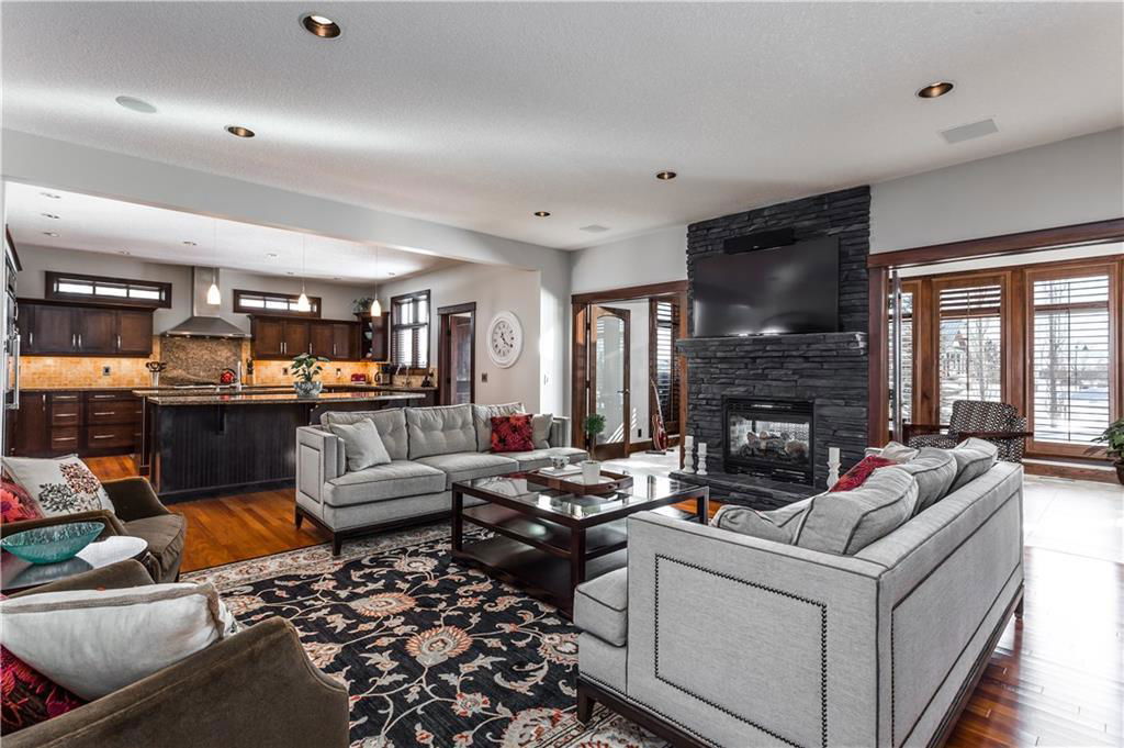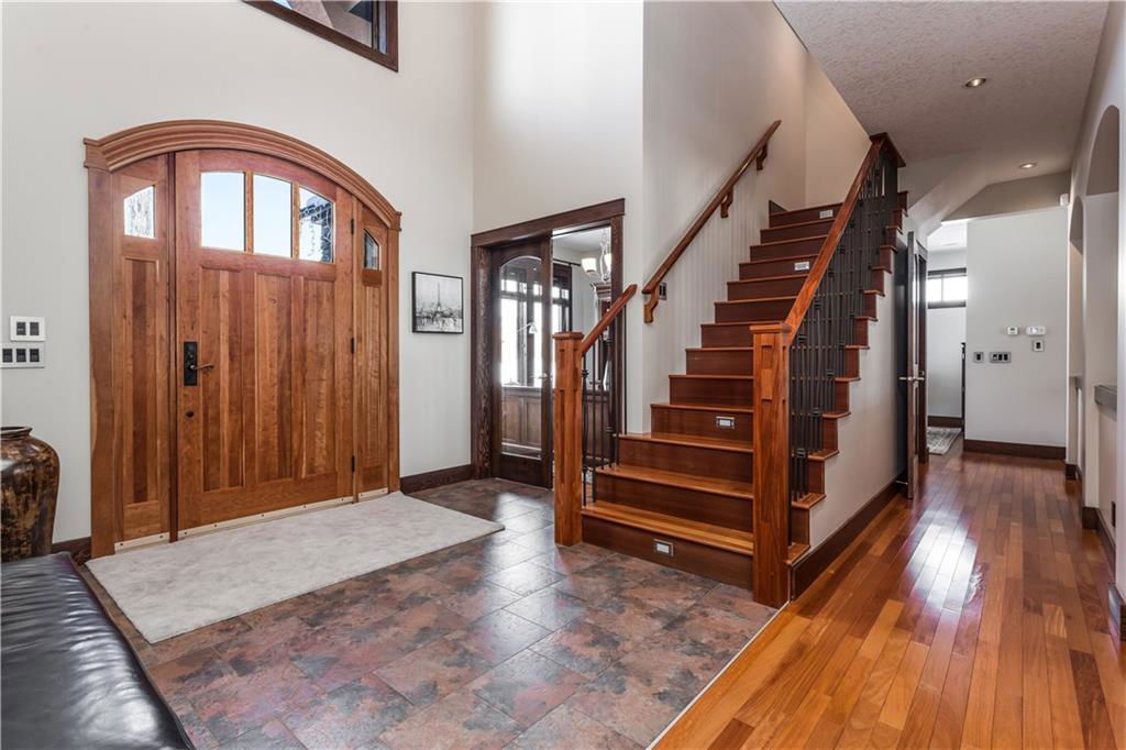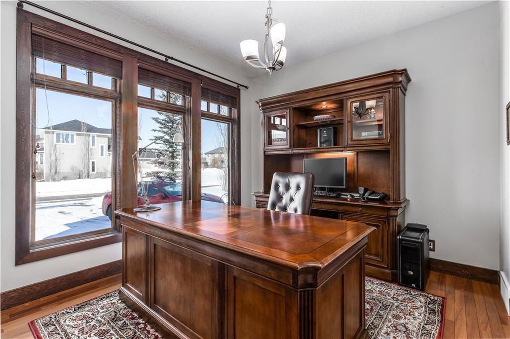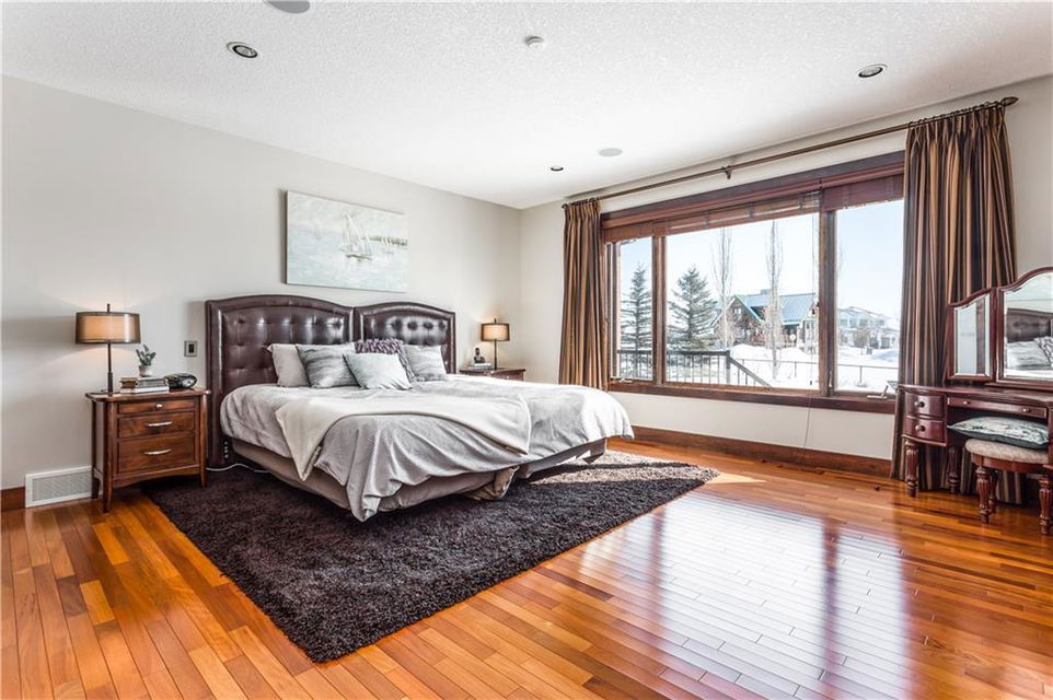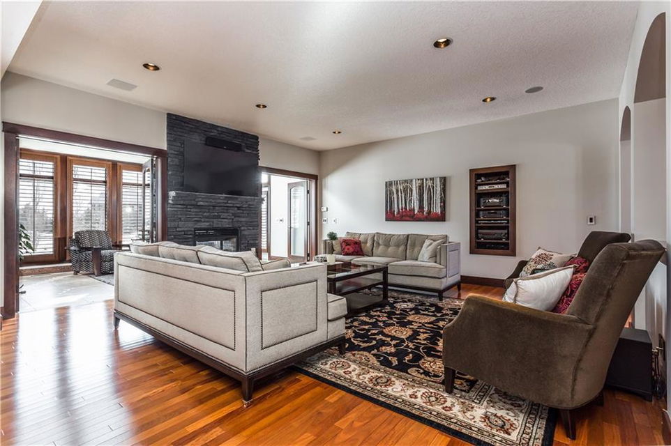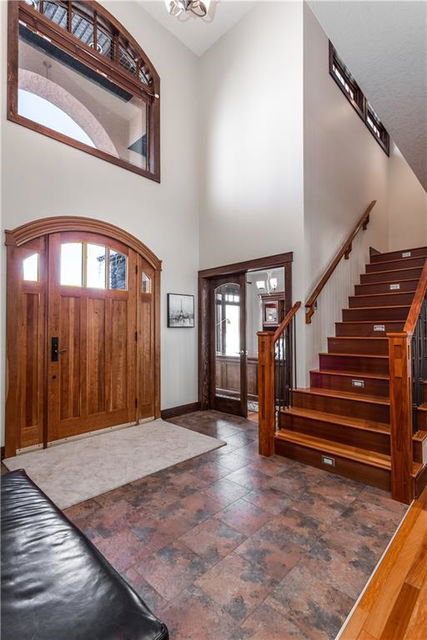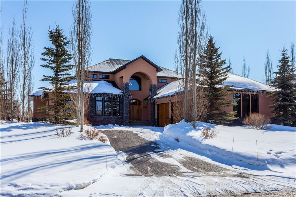 Luxurious fully developed 2 story home on 1/2 acre lot in the prestigious community of Air Ranch, close to pathways & nature reserve … all within the wonderful charm & amenities of a small town, and just fifteen minutes from Calgary! Main floor boasts open-concept great room with beautiful sun room, joined by two sided stone fireplace. Spacious gourmet kitchen with Thermador fridge, granite, 2 islands, stainless steel appliances, +built-in espresso cappuccino maker & wine cooler. Large dining room with removable stained-glass inserts for window panels. Main floor also showcases master bedroom with 5pc luxury ensuite and 2 walk-in closets, plus den, and great mudroom with built-in lockers. Mahogany floors throughout with ceramic tile in foyer, laundry and mudroom. Upstairs features bonus room, beautiful library, 3 spacious bedrooms and 2 full bathrooms. See notes below for exquisite $175,000 basement development. Click on red “3D” link above for 3D video walk-through of home. Basement was developed in 2011 with huge recreation room with built-in bar, two spacious bedrooms, full bathroom, PLUS top-of-the-line $45,000 theater and a fully insulated music/acoustic room. In-floor heating on all three floors, air conditioning, and triple garage with full workshop area.Yard is beautiful with mature trees, gazebo, huge patio, and plenty of room for kids to run around on this half acre lot. This executive home has all the bells and whistles you’d imagine … stunning home on stunning lot with no expenses spared. One of the best finds in Okotoks!