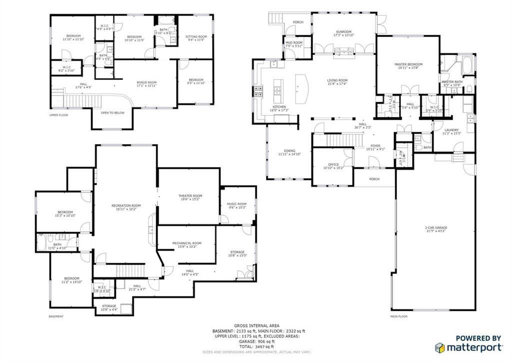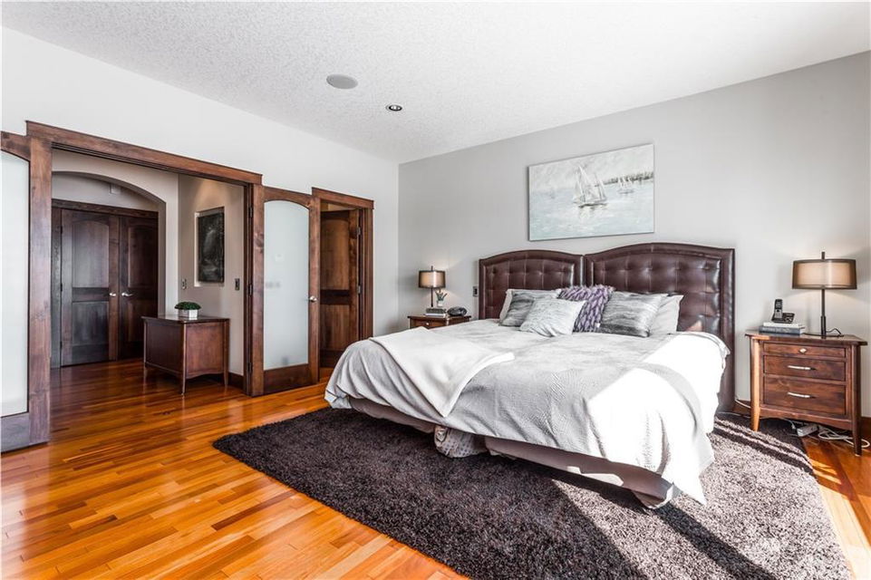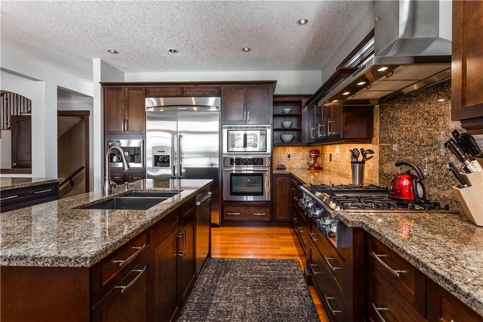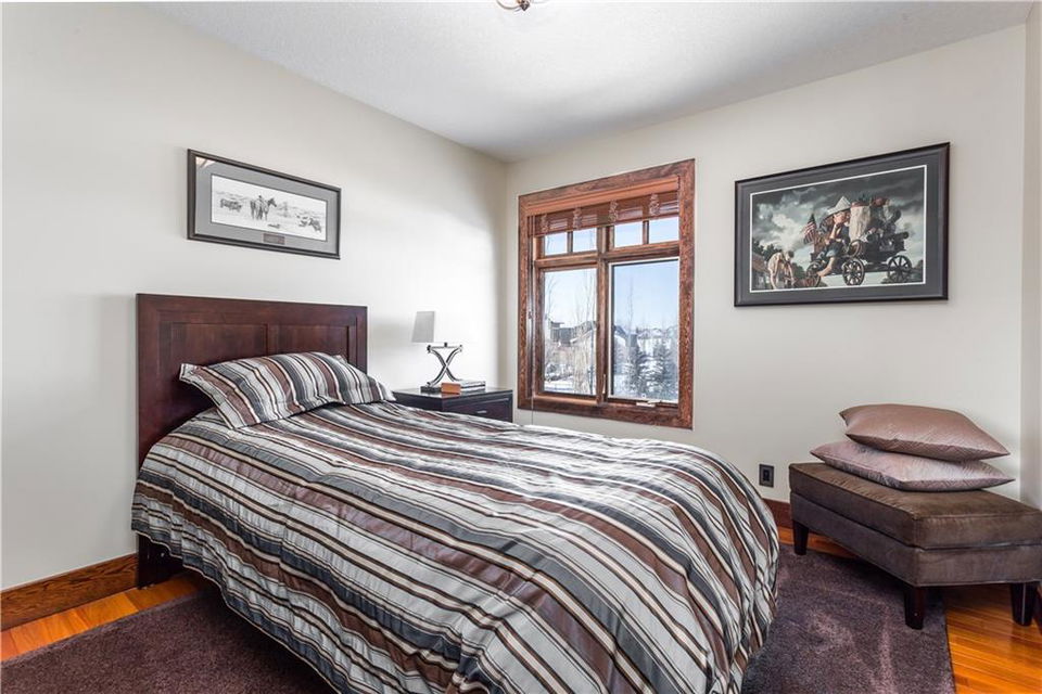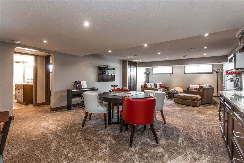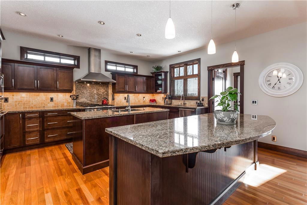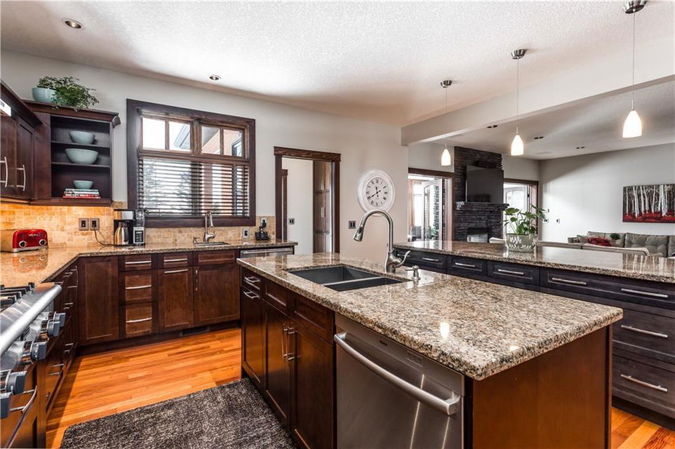 Luxurious fully developed 2 story home on 1/2 acre lot in the prestigious community of Air Ranch, close to pathways & nature reserve … all within the wonderful charm & amenities of a small town, and just fifteen minutes from Calgary! Main floor boasts open-concept great room with beautiful sun room, joined by two sided stone fireplace. Spacious gourmet kitchen with Thermador fridge, granite, 2 islands, stainless steel appliances, +built-in espresso cappuccino maker & wine cooler. Large dining room with removable stained-glass inserts for window panels. Main floor also showcases master bedroom with 5pc luxury ensuite and 2 walk-in closets, plus den, and great mudroom with built-in lockers. Mahogany floors throughout with ceramic tile in foyer, laundry and mudroom. Upstairs features bonus room, beautiful library, 3 spacious bedrooms and 2 full bathrooms. See notes below for exquisite $175,000 basement development. Click on red “3D” link above for 3D video walk-through of home. Basement was developed in 2011 with huge recreation room with built-in bar, two spacious bedrooms, full bathroom, PLUS top-of-the-line $45,000 theater and a fully insulated music/acoustic room. In-floor heating on all three floors, air conditioning, and triple garage with full workshop area.Yard is beautiful with mature trees, gazebo, huge patio, and plenty of room for kids to run around on this half acre lot. This executive home has all the bells and whistles you’d imagine … stunning home on stunning lot with no expenses spared. One of the best finds in Okotoks!