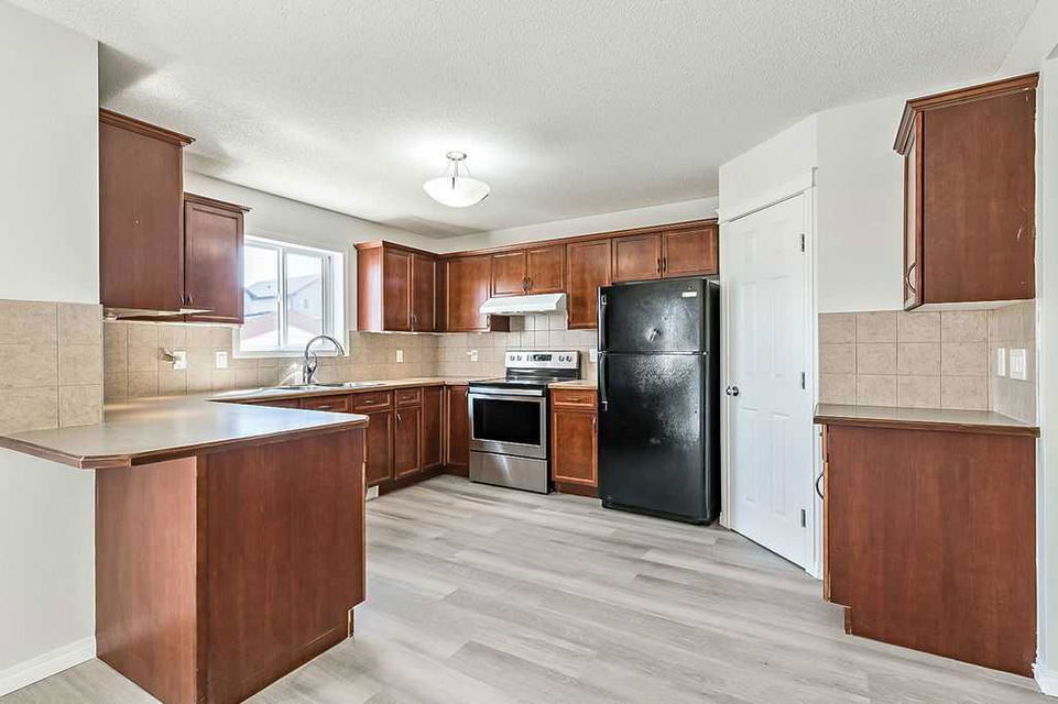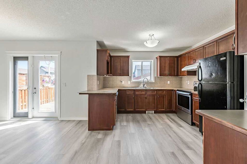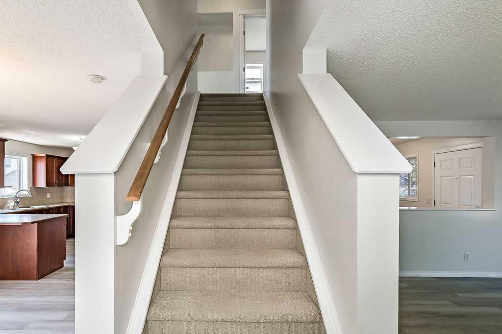 ** Open House Sat 1-4 ** AFFORDABLE & ready for quick possession in the heart of Cimarron Grove, close to paths, schools, shopping & community amenities!!! This well-maintained home features front living room with large windows and fire place, and rear kitchen and dining area with windows overlooking back deck and yard. Primary bedroom with ensuite bathroom & closet, two additional bedrooms and full bath are featured on second level. Basement is undeveloped but is perfectly laid out for fourth bedroom, bathroom and rec room. Back yard is fully fenced. Schools and shopping amenities are within walking distance, and parks and pathways are literally just steps away. If you’re looking to get settled in a home for under $540K in Okotoks, then this is the one!!