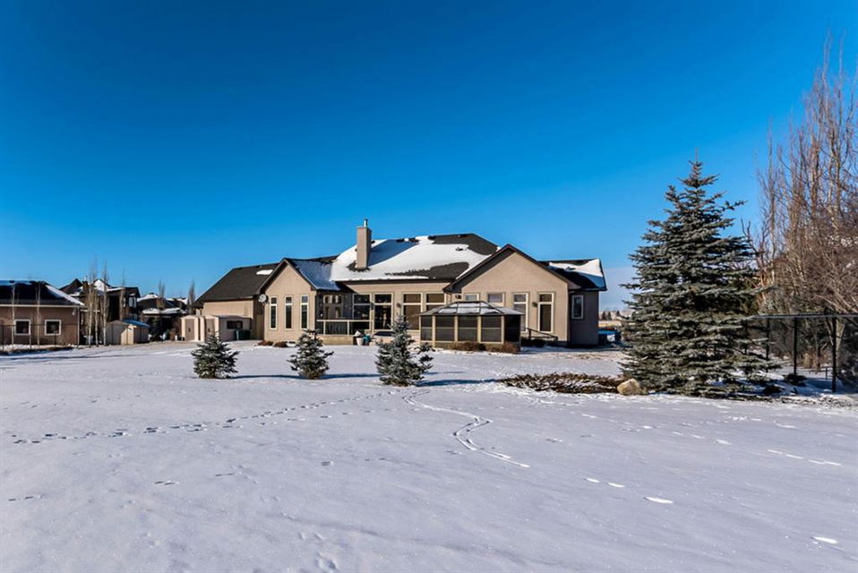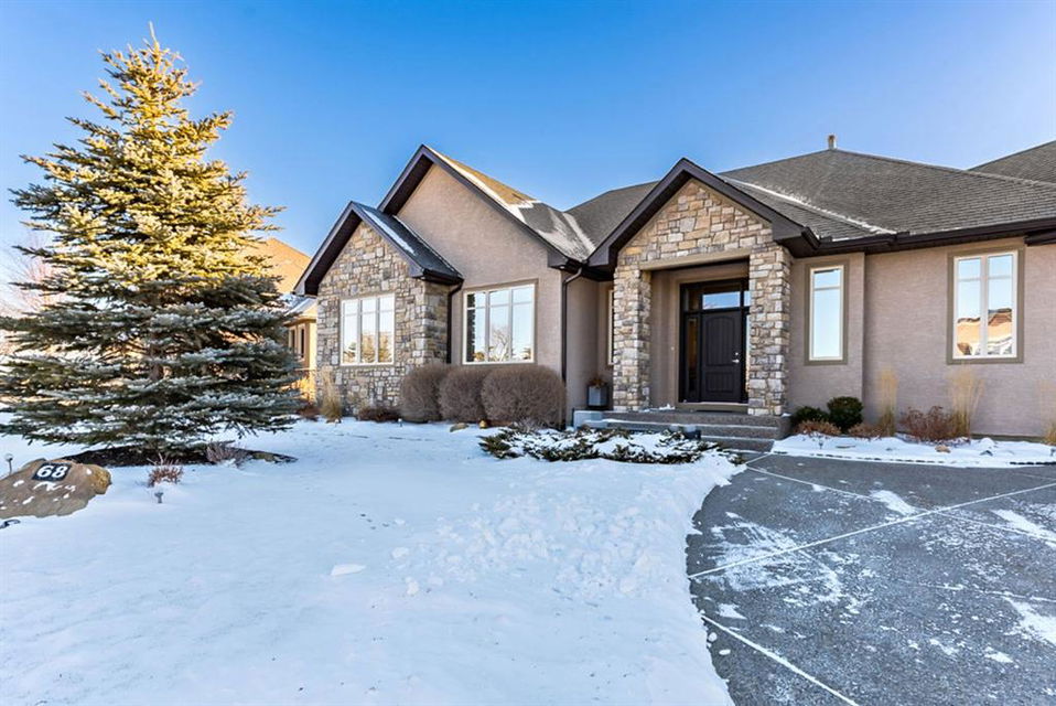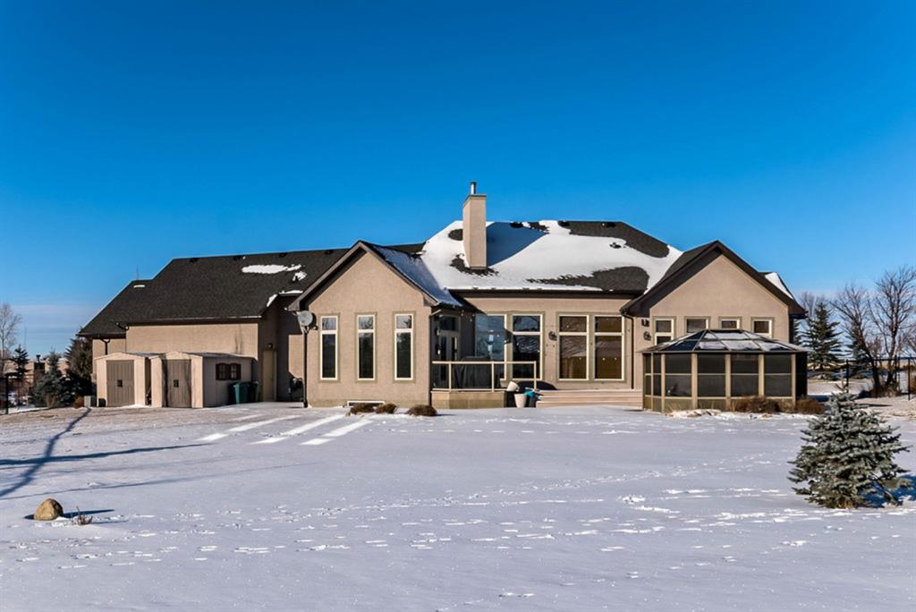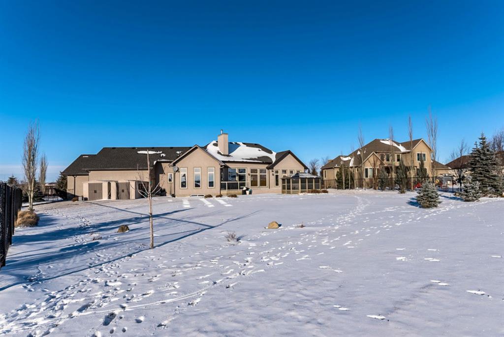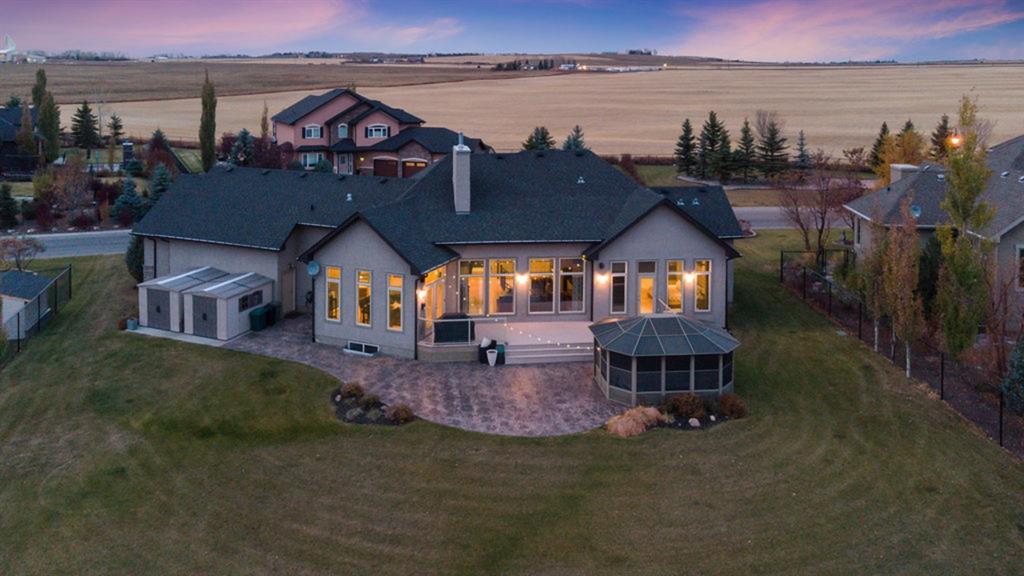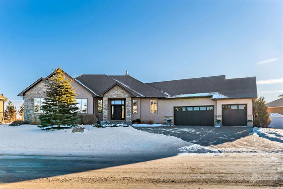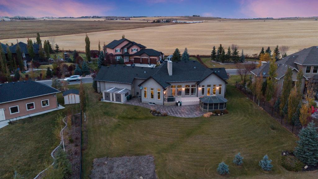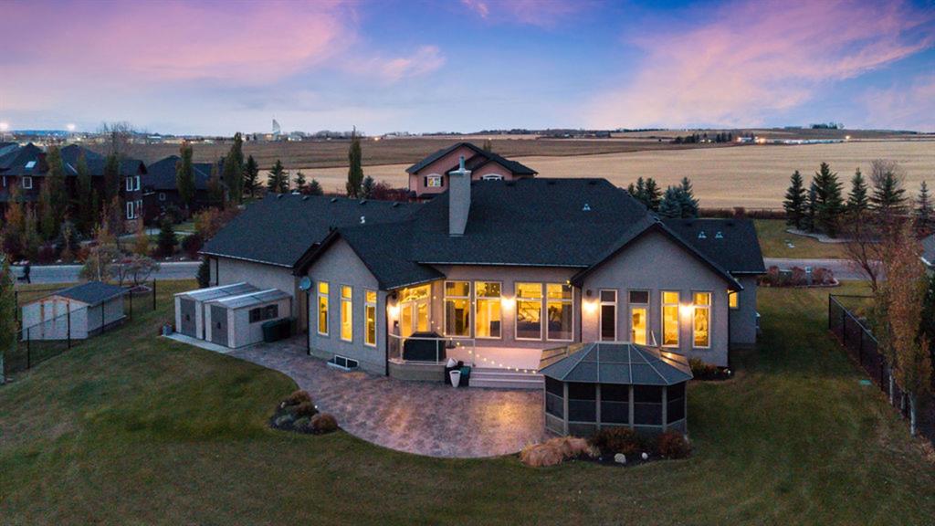 LUXURIOUS ESTATE BUNGALOW with 4700sq.ft. space on one of the largest lots in highly sought after Air Ranch, just ten minutes south of Calgary in the charming town of Okotoks. If you are looking for PRIVACY, OPULATENT SPACES with QUALITY FINISHING, A/C, HEATED TRIPLE GARAGE, HUGE DECK & GORGEOUS ½ ACRE LOT, then this is it! **Click 3D video** for virtual tour. 2360SQFT MAIN LEVEL is laid out perfectly with open concept plan, 10’ high ceilings, spacious entrance, large living room with two-sided fire place, gourmet kitchen with huge island, and dining room with windows all around. This level also features primary bedroom with walk-in closet and stunning ensuite bathroom, two other bedrooms and full bathroom, large mud room with built in lockers, half bath and laundry. Soft close drawers, auto lights when closet doors are opened, on demand hot water at every tap, built in sound system. LOWER LEVEL is professionally finished with heated floors, 9’ ceiling, and features recreation room with built-ins, wet bar, office, theatre room, two additional bedrooms and another full bathroom. Triple garage is heated & fully finished with built-in cabinetry. HUGE LOT with 140’ width by 167’ length, landscaped beautifully with mature vegetation, large stamped concrete patio, 32’ width composite deck, underground sprinklers, gazebo and two sheds. AMAZING COMMUNITY with bike trails, walking paths & natural bird sanctuary … and just minutes from golf courses, schools, sport fields, rec centre, health clinic, great shopping & amenities. If you are looking for ELEGANCE, LUXURY & PRIVACY with the tranquility of small-town life just minutes from Calgary, then this is the one!