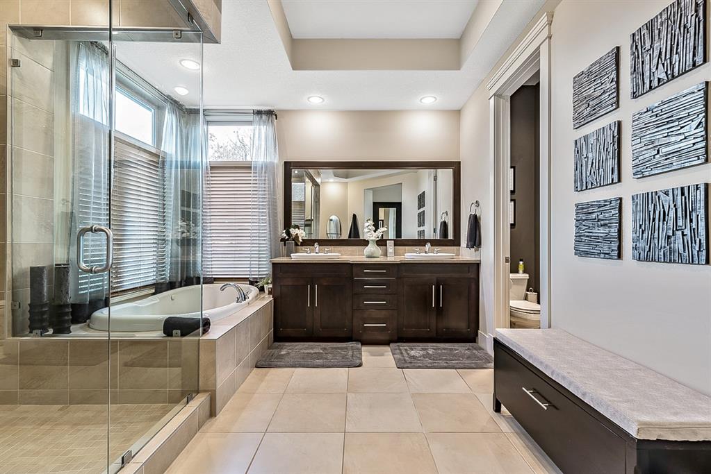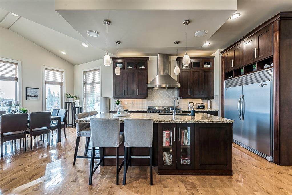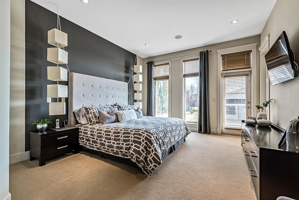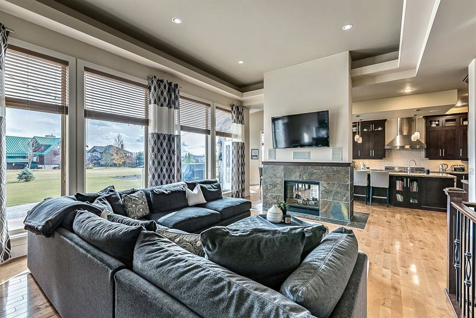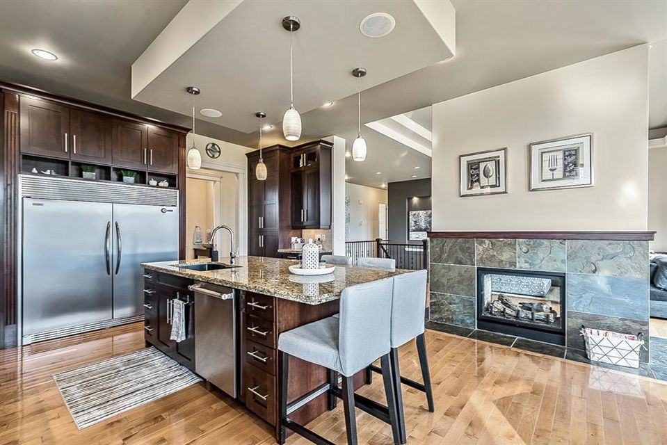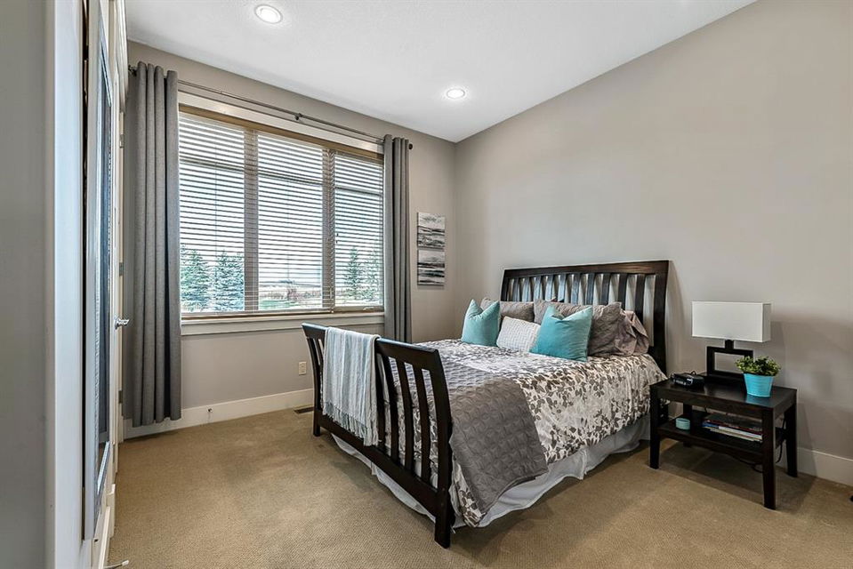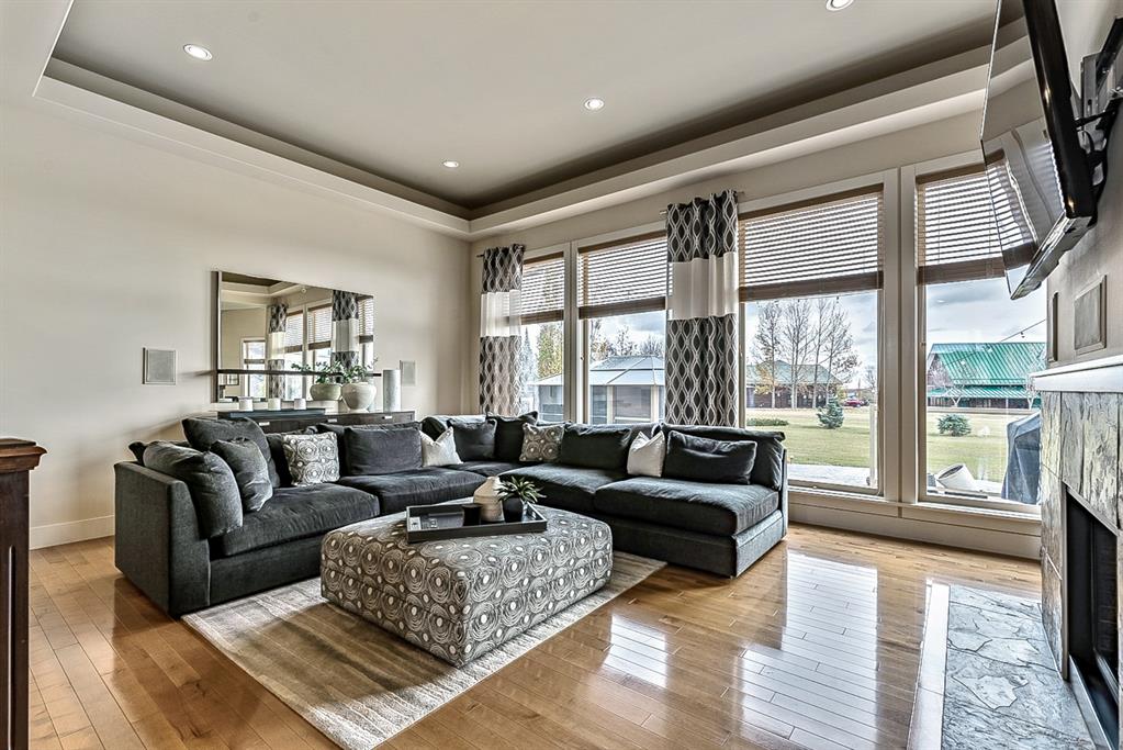 LUXURIOUS ESTATE BUNGALOW with 4700sq.ft. space on one of the largest lots in highly sought after Air Ranch, just ten minutes south of Calgary in the charming town of Okotoks. If you are looking for PRIVACY, OPULATENT SPACES with QUALITY FINISHING, A/C, HEATED TRIPLE GARAGE, HUGE DECK & GORGEOUS ½ ACRE LOT, then this is it! **Click 3D video** for virtual tour. 2360SQFT MAIN LEVEL is laid out perfectly with open concept plan, 10’ high ceilings, spacious entrance, large living room with two-sided fire place, gourmet kitchen with huge island, and dining room with windows all around. This level also features primary bedroom with walk-in closet and stunning ensuite bathroom, two other bedrooms and full bathroom, large mud room with built in lockers, half bath and laundry. Soft close drawers, auto lights when closet doors are opened, on demand hot water at every tap, built in sound system. LOWER LEVEL is professionally finished with heated floors, 9’ ceiling, and features recreation room with built-ins, wet bar, office, theatre room, two additional bedrooms and another full bathroom. Triple garage is heated & fully finished with built-in cabinetry. HUGE LOT with 140’ width by 167’ length, landscaped beautifully with mature vegetation, large stamped concrete patio, 32’ width composite deck, underground sprinklers, gazebo and two sheds. AMAZING COMMUNITY with bike trails, walking paths & natural bird sanctuary … and just minutes from golf courses, schools, sport fields, rec centre, health clinic, great shopping & amenities. If you are looking for ELEGANCE, LUXURY & PRIVACY with the tranquility of small-town life just minutes from Calgary, then this is the one!