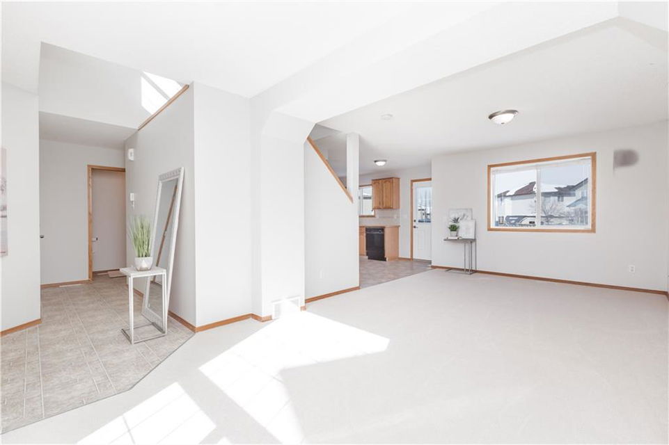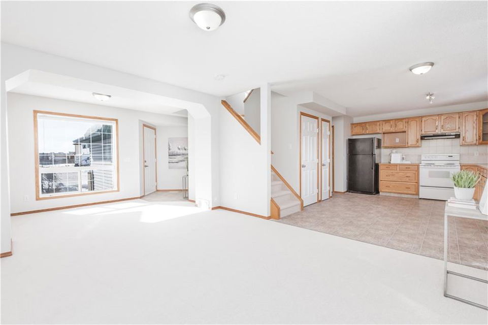 One of the BEST starter homes around with over 1350sq.ft. on two levels PLUS double attached garage on HUGE PIE lot! Main floor offers open concept large living room, dining room and kitchen. Second floor offers bright master bedroom with walk-in closet and plenty room for an ensuite, plus two additional bedrooms and a full bathroom. Home exudes charm & modern flair with new carpet and new paint! Home is minutes to local schools, parks, shopping and a variety of great amenities. SUPERB STARTER!