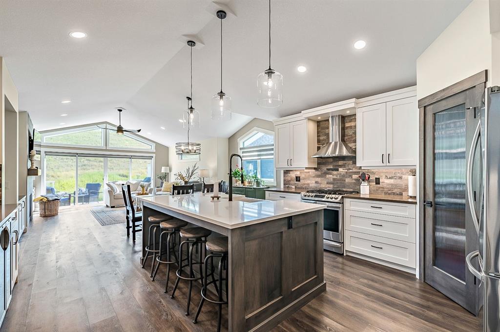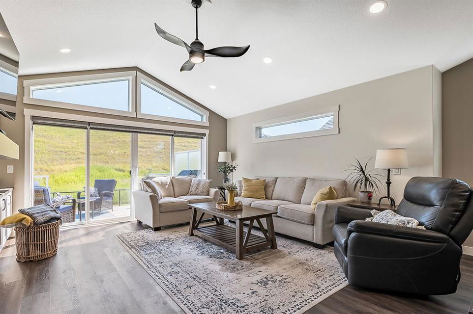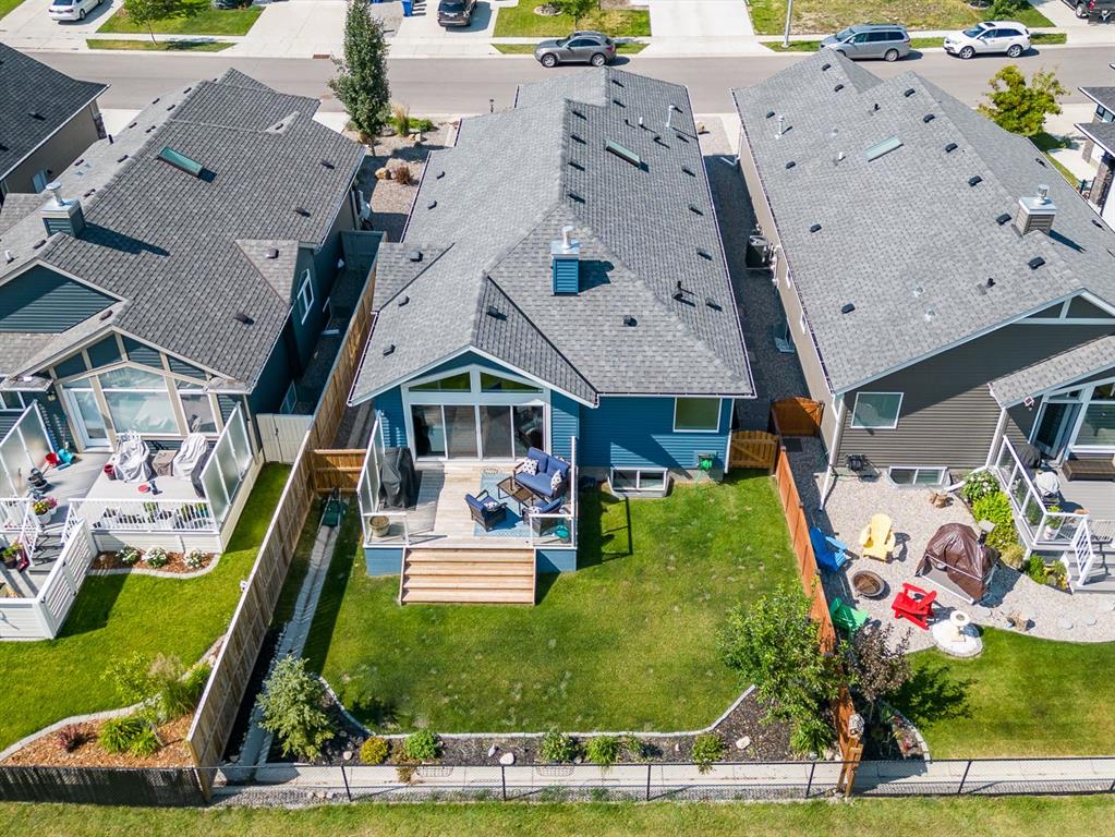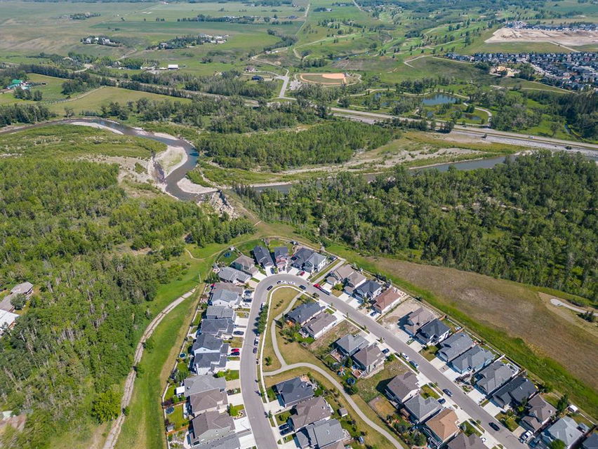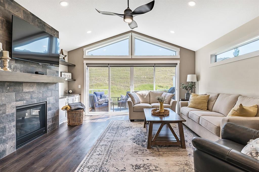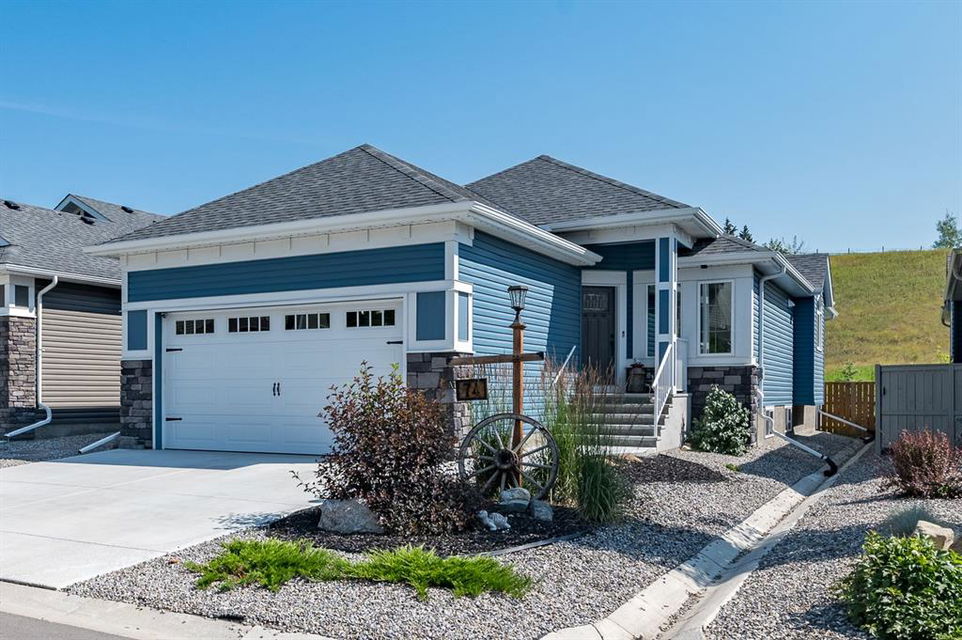 BEAUTIFULLY FINISHED spacious 3 year old bungalow built by Dream West Homes, in one of the most private locations of Okotoks … tucked into the hills of Sheep River Cove and just steps from miles of river paths and nature reserves. This one will impress even the most discerning buyer, as this home truly showcases the best of the best. STEP INSIDE & see (click 3D video, or come to Open House on Saturday or Sunday) … MAIN FLOOR features open concept plan with vaulted ceilings, gorgeous white kitchen and huge island w farmhouse sink, large living room area with fireplace and built in cabinetry, double sliding doors that open up to back deck, dining room, den with modern barn door, spacious primary bedroom with gorgeous ensuite bathroom w heated floors and walk-in closet, and direct access to main floor laundry. LOWER LEVEL features high ceilings & large windows, spacious recreation room, two additional bedrooms, and full bathroom. Lush carpet, luxury vinyl plank, tile, A/C, water softener, custom blinds, and designer finishing throughout make this home 10/10. GARAGE is heated and set up with floor drain. PROPERTY features gorgeous low maintenance zero-scape front yard and beautiful & private backyard with expansive deck. Bungalows are tough to find … but bungalows with this level of finishing, with nearly 1500sq.ft. of space, and with this location are next to impossible to find. Book your showing or come by the Open House on Saturday 1-3 or Sunday 11-1!