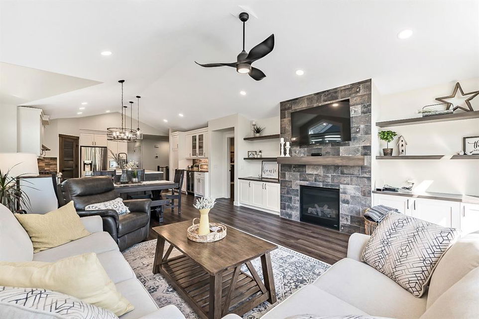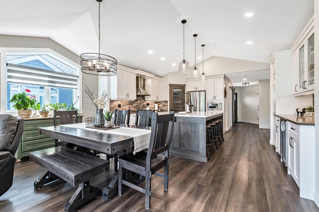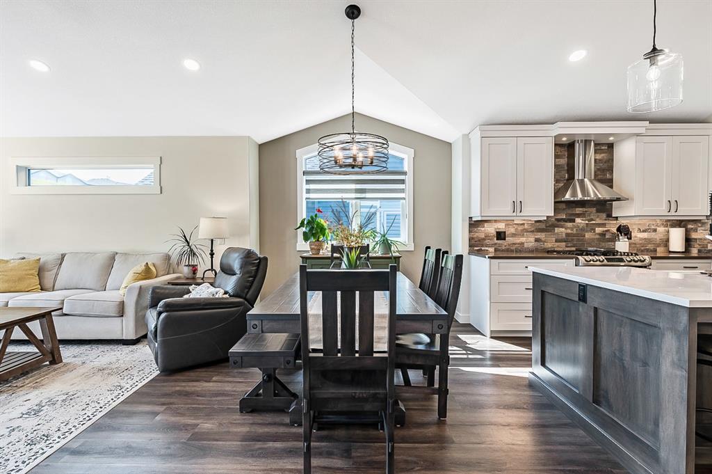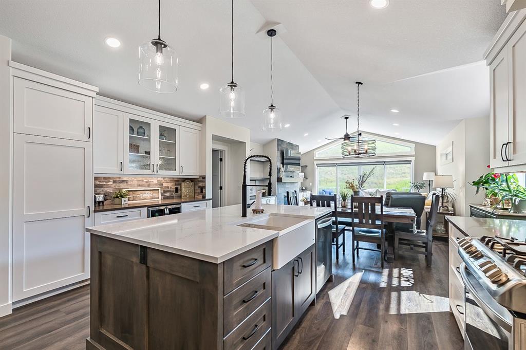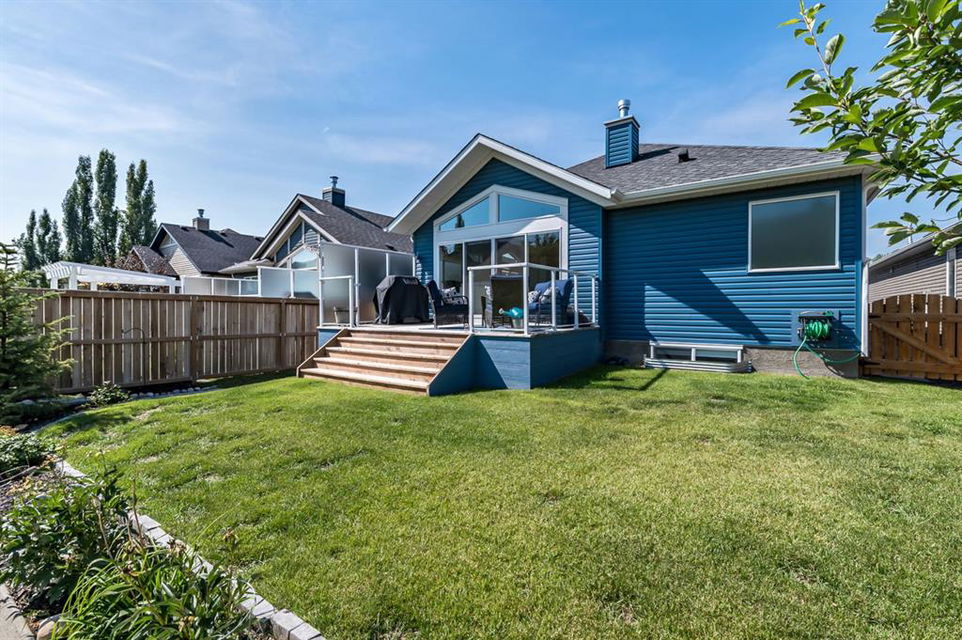 BEAUTIFULLY FINISHED spacious 3 year old bungalow built by Dream West Homes, in one of the most private locations of Okotoks … tucked into the hills of Sheep River Cove and just steps from miles of river paths and nature reserves. This one will impress even the most discerning buyer, as this home truly showcases the best of the best. STEP INSIDE & see (click 3D video, or come to Open House on Saturday or Sunday) … MAIN FLOOR features open concept plan with vaulted ceilings, gorgeous white kitchen and huge island w farmhouse sink, large living room area with fireplace and built in cabinetry, double sliding doors that open up to back deck, dining room, den with modern barn door, spacious primary bedroom with gorgeous ensuite bathroom w heated floors and walk-in closet, and direct access to main floor laundry. LOWER LEVEL features high ceilings & large windows, spacious recreation room, two additional bedrooms, and full bathroom. Lush carpet, luxury vinyl plank, tile, A/C, water softener, custom blinds, and designer finishing throughout make this home 10/10. GARAGE is heated and set up with floor drain. PROPERTY features gorgeous low maintenance zero-scape front yard and beautiful & private backyard with expansive deck. Bungalows are tough to find … but bungalows with this level of finishing, with nearly 1500sq.ft. of space, and with this location are next to impossible to find. Book your showing or come by the Open House on Saturday 1-3 or Sunday 11-1!