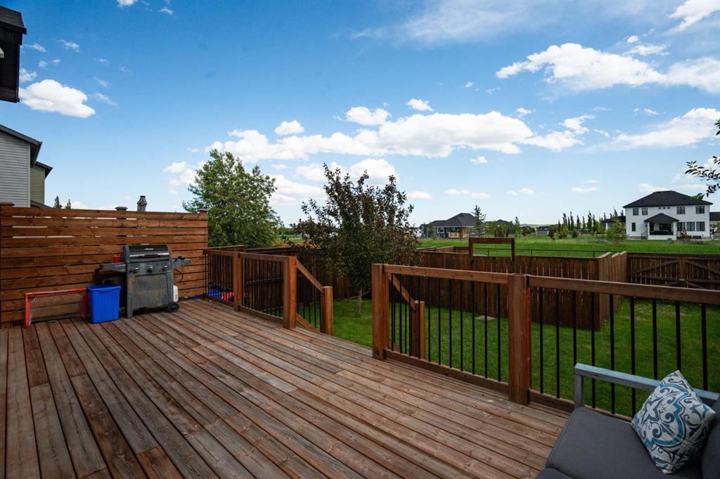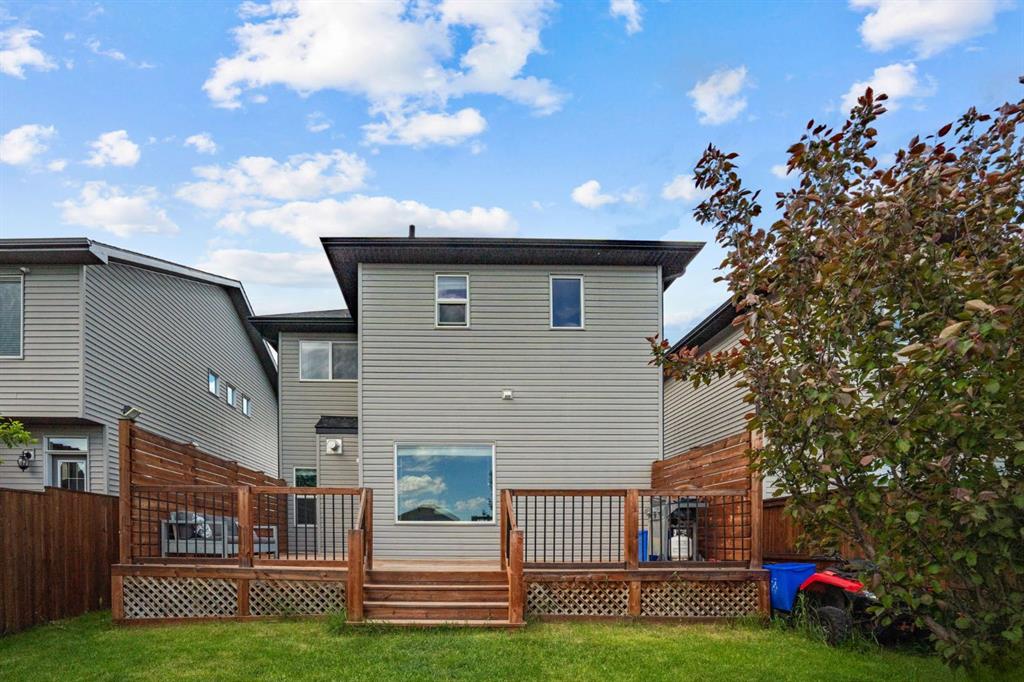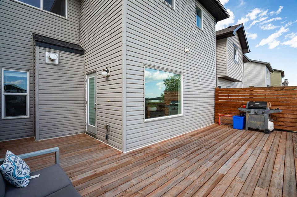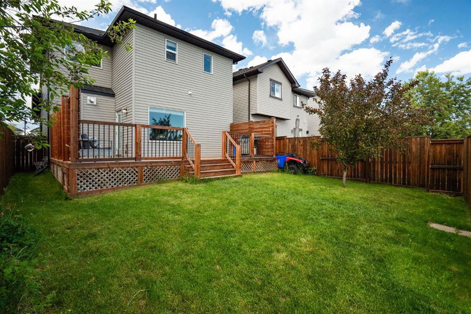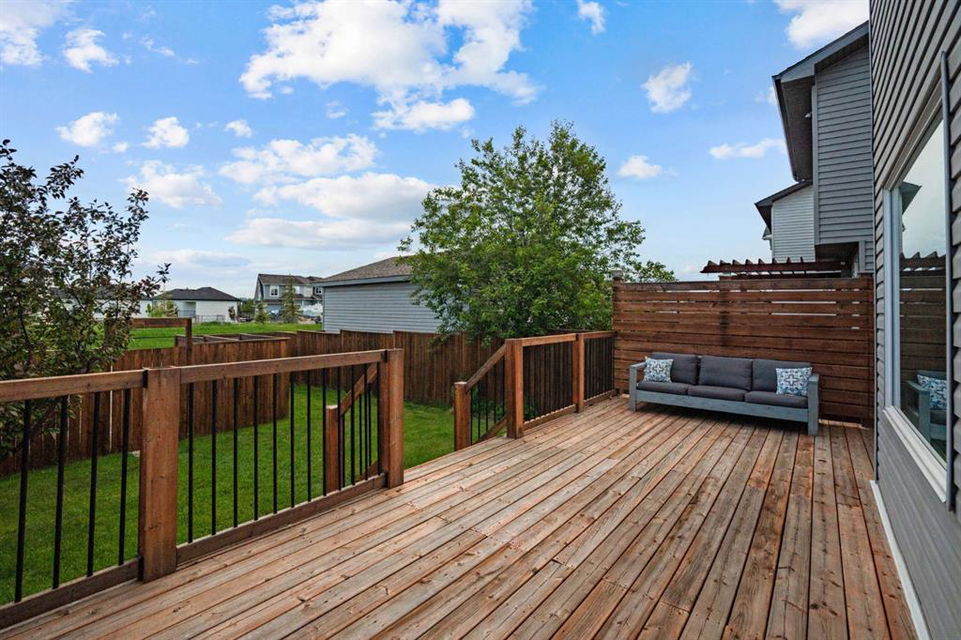 Outside, you’ll love the fully fenced backyard, perfect for kids and pets to play. The huge deck with a privacy wall is ideal for outdoor dining, entertaining, or simply enjoying the peaceful surroundings. With a paved alley and your own parking pad, this home combines convenience and tranquility in one perfect package. Don’t miss your chance to make this wonderful property in Drake Landing your new home!