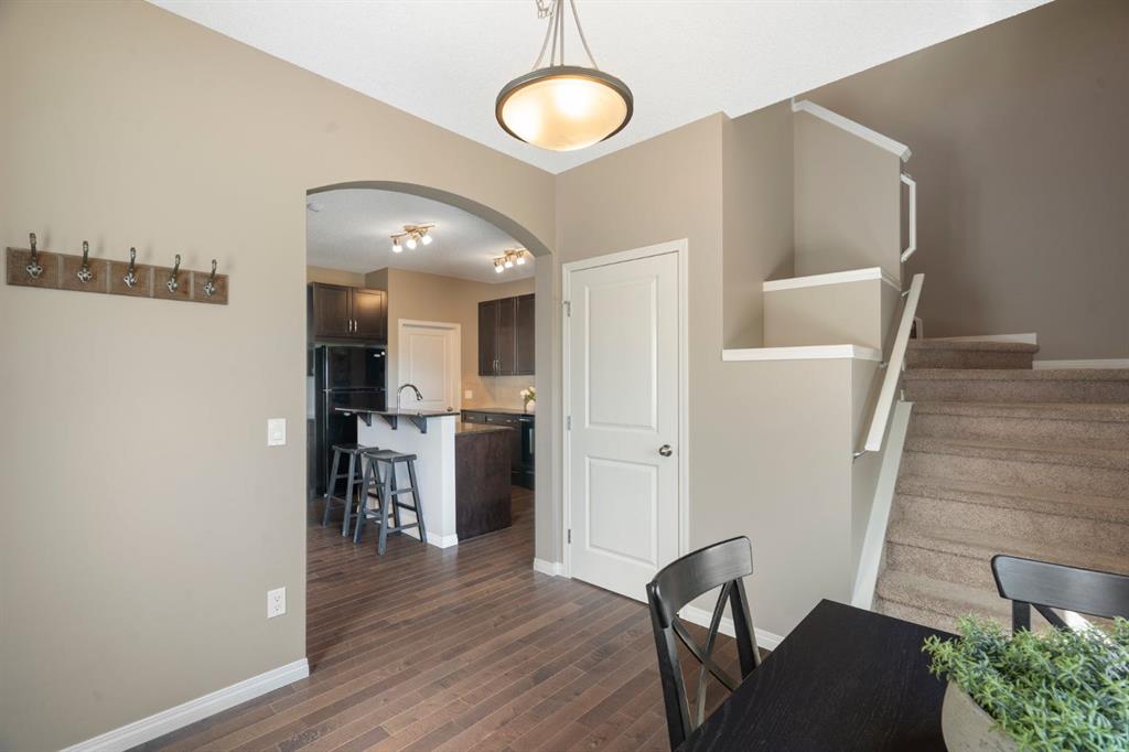 Welcome to this charming two-storey home in the highly sought-after community of Drake Landing in Okotoks. This beautifully designed residence offers 1,560 sq ft of comfortable living space, boasting a south-facing backyard backing onto Green Haven Estates, providing you with serene views and all-day sunshine.