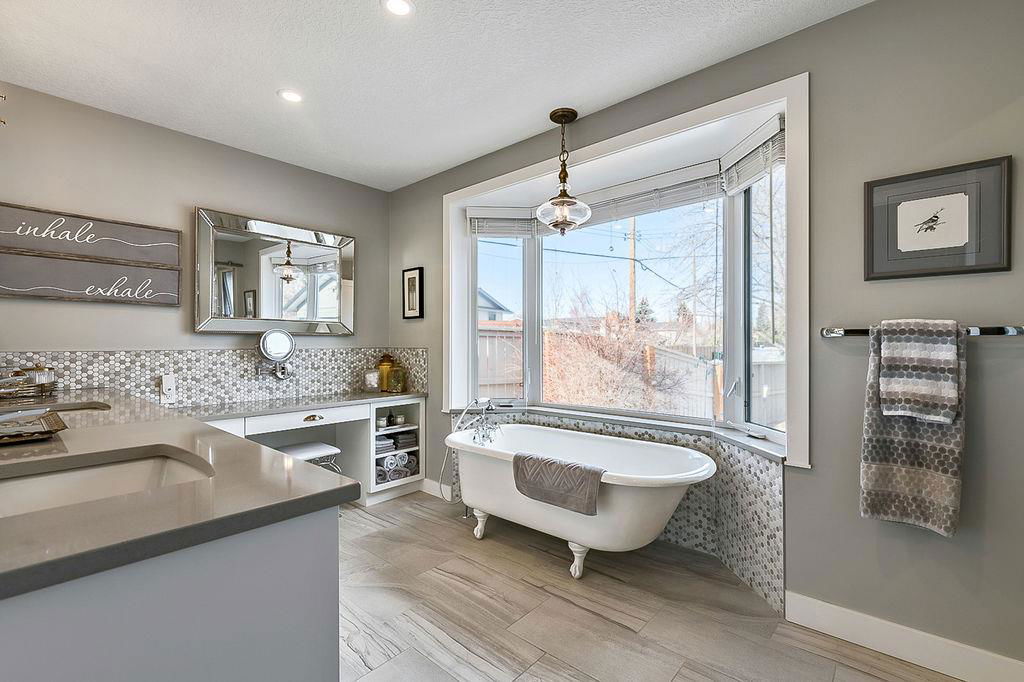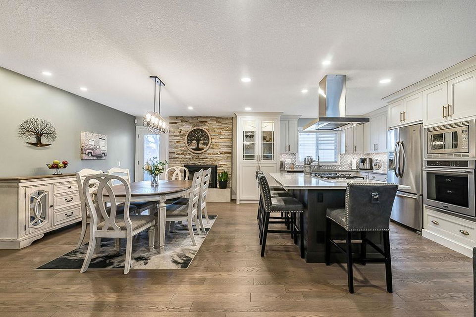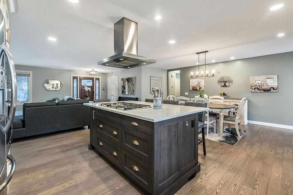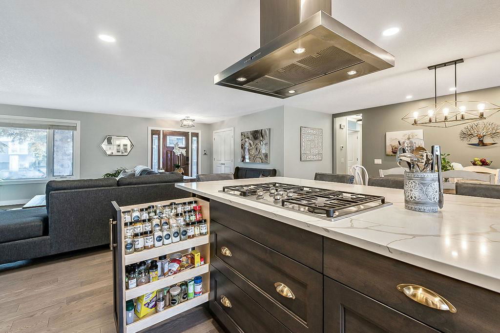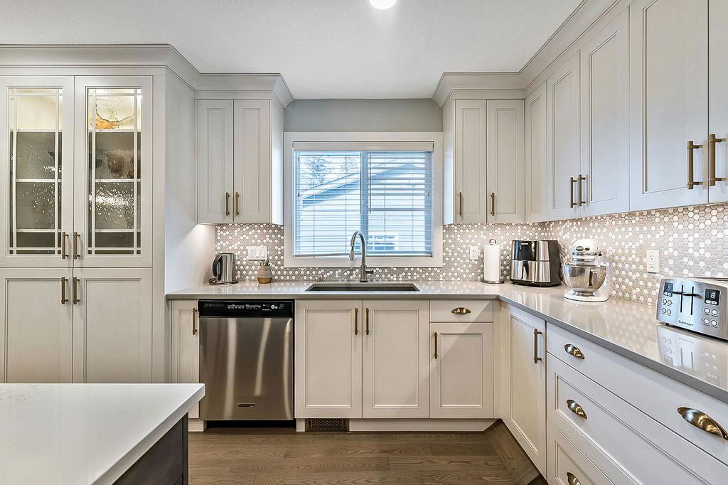 If you are waiting for a spacious, gorgeous, renovated bungalow on a pretty street just steps away from Fish Creek you better act fast because here it is. This renovation was done right. An open concept living space was created with a huge living room, beautiful dining room with gas fireplace and a STUNNING kitchen. As you drive up you will fall in love with the color, the front porch, the mature landscaping and the street. (I know because I grew up on this street.) Once you enter you will need to take a minute to just enjoy your first impressions. Do you love to entertain? This home is perfect for that. Do you love just staying home and being cozy on the couch? This home is perfect for that. Do you love enjoying your outdoor space? This home is also perfect for that. Do you love walking and enjoying nature? This home and location is perfect for that too. The owner has owned many homes and has taken the best of all of them to create this home. When you visit ensure you open the cabinets to see the incredible storage solutions including a spice cabinet and pull out pantry drawers. A massive island is a must and this one will not disappoint. When dining what would be more romantic than a fireplace? This home was created for a small family, a single person or empty nesters and because of this the main floor consists of an office or guest room and one of the most stunning primary retreats you will have the pleasure to view. As you enter notice the upgraded high end carpet. This space easily handles your king size bed and oversized furniture. The walk-in closet has custom built-ins and a window.. The ensuite has plenty of room for two to get ready at the same time, a special clawfoot tub and light fixtures that look like they jumped right out of a magazine. The main bathroom features an air tub and a fantastic tile floor. Make your way downstairs and here you will find a sweet laundry room with tons of storage, a pretty bedroom for the teenager or your guests and another full bathroom. The family room is large enough to handle your big screen TV, exercise equipment and maybe even a pool table. The built-ins will help to keep all of your keepsakes organized. One of the things that makes Parkland so beautiful is the huge trees and large lots. This home has both of those. Sit on your patio and watch the many birds and enjoy the peace and quiet. The garage is oversized at 22′ x 28′. Air conditioning, underground sprinklers and wired for a hot tub, the list of improvements goes on and on, This is a must view in person property.