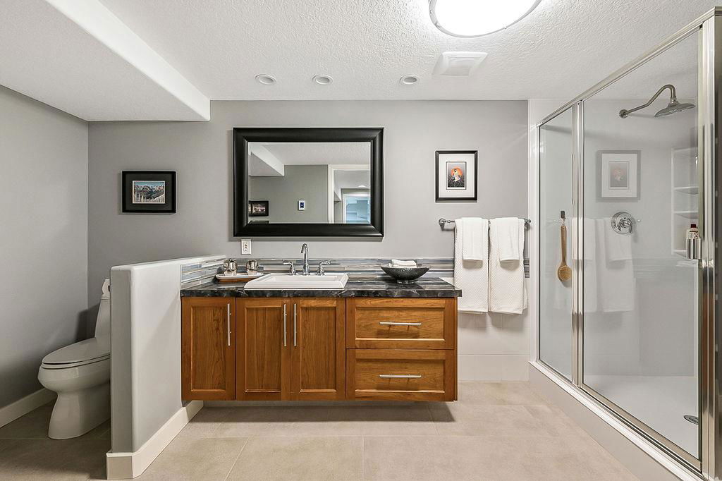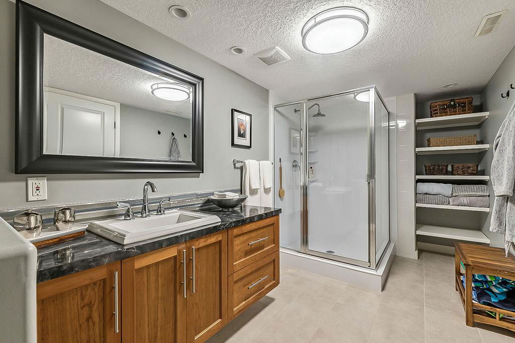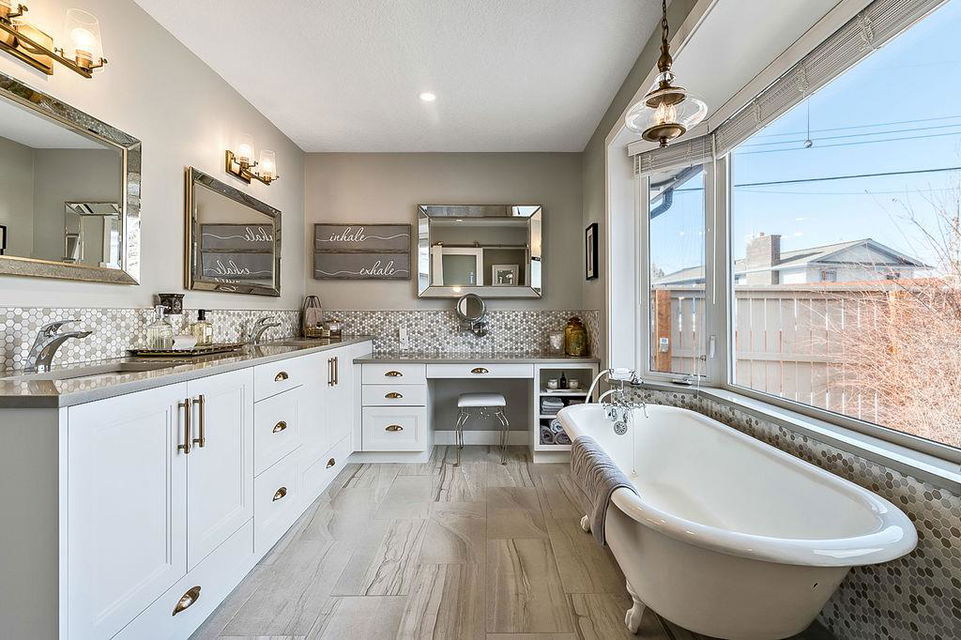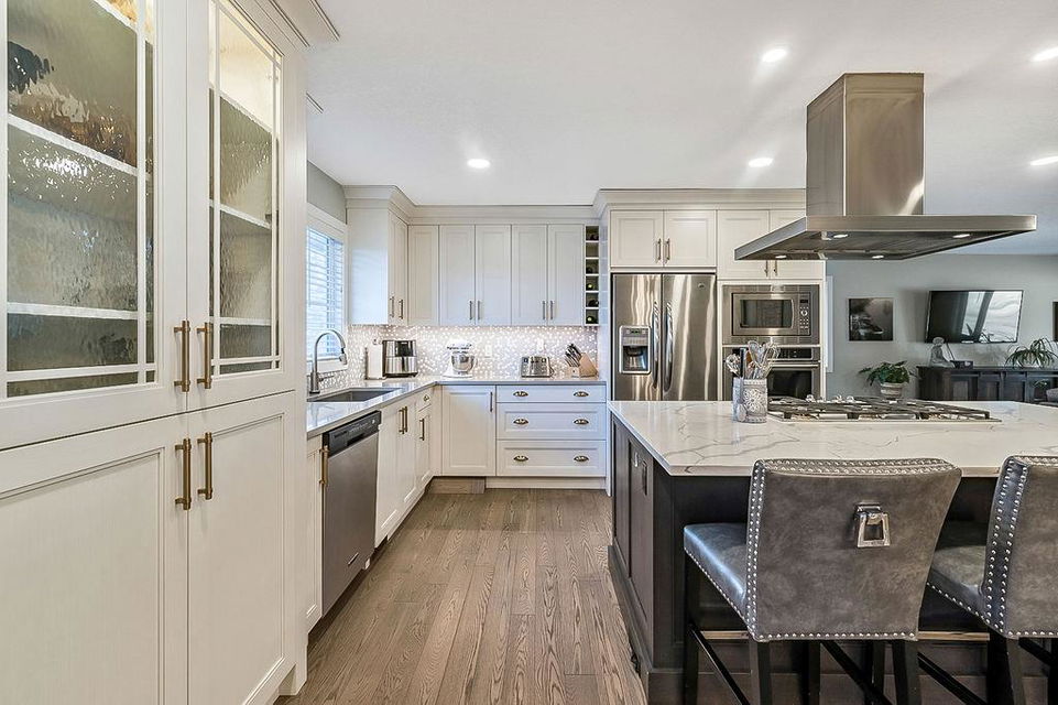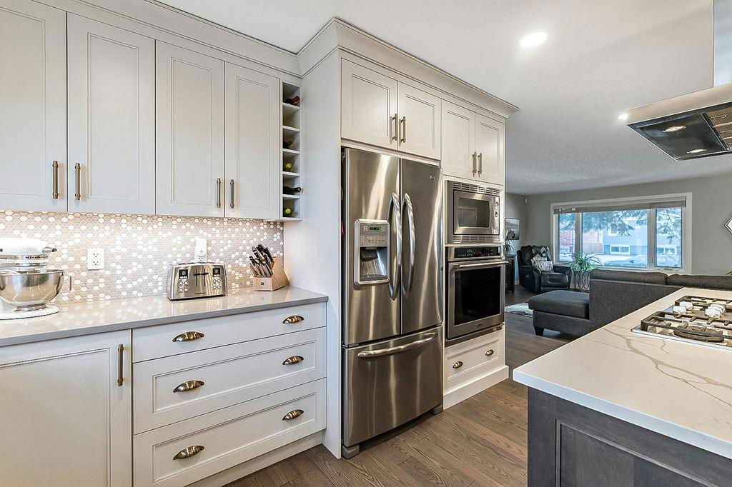 If you are waiting for a spacious, gorgeous, renovated bungalow on a pretty street just steps away from Fish Creek you better act fast because here it is. This renovation was done right. An open concept living space was created with a huge living room, beautiful dining room with gas fireplace and a STUNNING kitchen. As you drive up you will fall in love with the color, the front porch, the mature landscaping and the street. (I know because I grew up on this street.) Once you enter you will need to take a minute to just enjoy your first impressions. Do you love to entertain? This home is perfect for that. Do you love just staying home and being cozy on the couch? This home is perfect for that. Do you love enjoying your outdoor space? This home is also perfect for that. Do you love walking and enjoying nature? This home and location is perfect for that too. The owner has owned many homes and has taken the best of all of them to create this home. When you visit ensure you open the cabinets to see the incredible storage solutions including a spice cabinet and pull out pantry drawers. A massive island is a must and this one will not disappoint. When dining what would be more romantic than a fireplace? This home was created for a small family, a single person or empty nesters and because of this the main floor consists of an office or guest room and one of the most stunning primary retreats you will have the pleasure to view. As you enter notice the upgraded high end carpet. This space easily handles your king size bed and oversized furniture. The walk-in closet has custom built-ins and a window.. The ensuite has plenty of room for two to get ready at the same time, a special clawfoot tub and light fixtures that look like they jumped right out of a magazine. The main bathroom features an air tub and a fantastic tile floor. Make your way downstairs and here you will find a sweet laundry room with tons of storage, a pretty bedroom for the teenager or your guests and another full bathroom. The family room is large enough to handle your big screen TV, exercise equipment and maybe even a pool table. The built-ins will help to keep all of your keepsakes organized. One of the things that makes Parkland so beautiful is the huge trees and large lots. This home has both of those. Sit on your patio and watch the many birds and enjoy the peace and quiet. The garage is oversized at 22′ x 28′. Air conditioning, underground sprinklers and wired for a hot tub, the list of improvements goes on and on, This is a must view in person property.