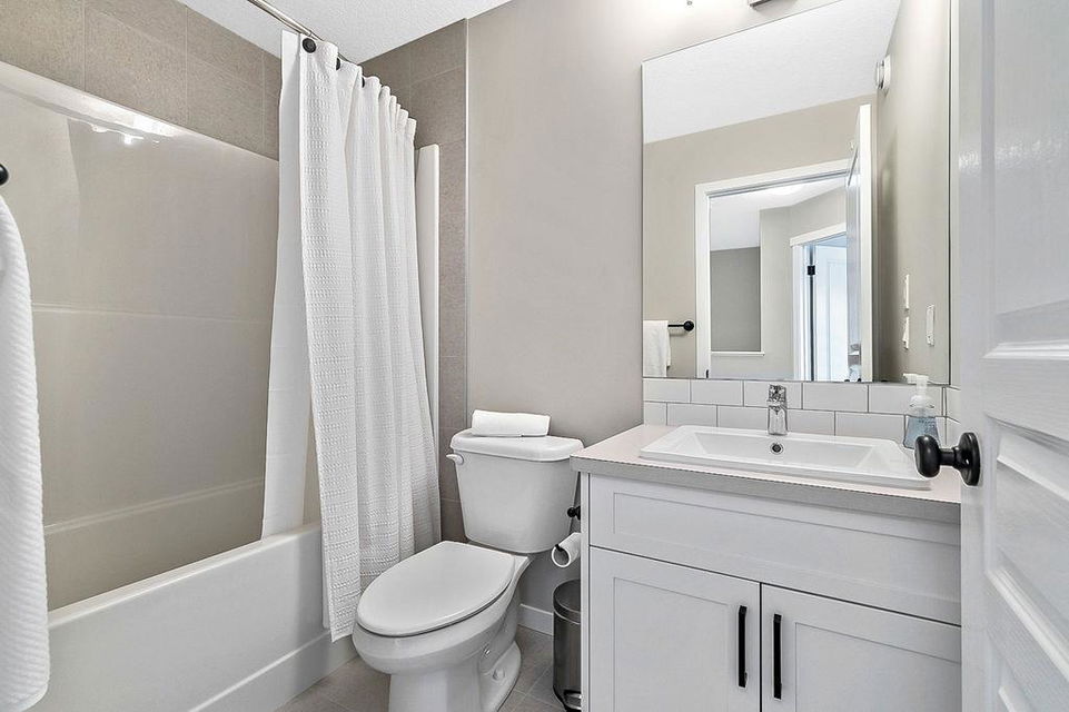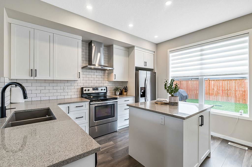 MAHOGANY LIVING for under $525K! This home has it all, from its superb location walking distance to main beach, tennis courts, wetlands, trails, schools & shopping plaza, to its modern open concept layout with superb finishing throughout and its fenced in back yard with large deck. CLICK 3D for virtual tour, or call your agent to book a showing as this one won’t last! MAIN FLOOR features front living room with large windows and custom blinds, spacious dining area, and kitchen with extended white cabinetry, quartz countertop, stainless steel appliances, upgraded hood fan, pantry & island with microwave. UPPER FLOOR features primary bedroom with ensuite bath and walk-in shower plus walk-in closet, two additional bedrooms, bathroom, and laundry. BASEMENT is unfinished and ready for future fourth bedroom, third full bathroom and rec room. BACK YARD is fully fenced and features large deck with natural gas line for BBQ hookup, perfect for entertaining or private enjoyment. Central Vac throughout. All this, in one of the most IMPECCABLY KEPT homes you’ll find on market … indeed, it looks, feels and even smells new!!! If you are after a PERFECT STARTER in an AMAZING LAKE COMMUNITY for under $525K, then this is it!