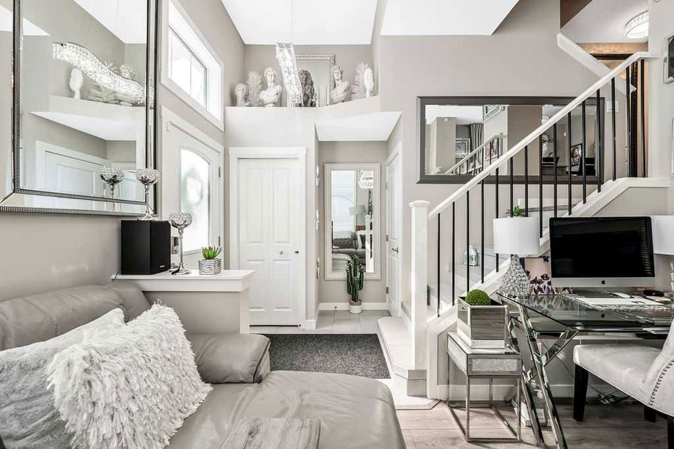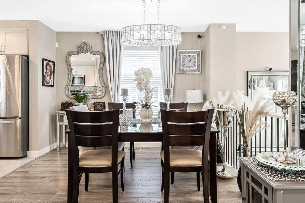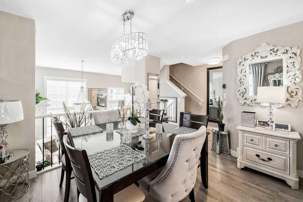 Owner is relocating to another city, meaning this is your lucky chance to own one of the most upgraded units in the complex! LUXURIOUS, BRIGHT & nearly-new 3bdrm 2.5bath END CORNER UNIT with 1330SQT+ space & HIGH-END UPDATES THROUGHOUT, tucked away in one of the NICEST communities of the city in quiet Riverstone near parks & Bow River’s endless pathways, yet just minutes from Seton’s impressive shopping, restaurants and amenities. A three year old Brookfield “Crimson” townhome, this unit was finished with $40K+ of gorgeous upgrades … just step in and you’ll see and feel the quality! MAIN FLOOR features stunning soaring 14′ ceiling in living room with windows all around for amazing natural light, impressive kitchen with white cabinetry, 42″ height cabinets w soft closer drawers, natural stone backsplash, granite countertops & LG fingerprint-resistant ss appliances. Dining area adjacent to kitchen overlooks living space and is surrounded by windows all around. UPPER FLOOR features primary bedroom with ensuite bathroom and walk-in closet, two additional bedrooms, main bathroom, and closet with laundry hook-ups. LOWER LEVEL features storage area with over 200SQ of space, currently set up with wall-to-wall shelving and laundry. DOUBLE GARAGE is pristine, and is fully finished with paint and polyaspartic flooring! Did we mention Lennox A/C, smart entry lock, climate control, pot lights, Hunter Douglas blinds, European tile and luxury vinyl plank flooring throughout including stairs, and upgraded railing? PRIVATE FRONT YARD is perfect for lounging. LOCATION is absolutely fantastic, within walking distance of many parks, pathways, and the Bow River ecological area … yet just minutes the community’s tennis courts, skating rink and splash park, with easy access to Deerfoot & beyond. Truly, this home has it all, from ample living space with 3bdrms & double garage, to private front yard, to superb luxurious finishing, to prime location close to Bow River, Fish Creek Park, playgrounds, transit, shopping, cinema, YMCA & more. If you’re looking for SUPERB QUALITY & IMPECCABLE PERFECTION, then this is it!