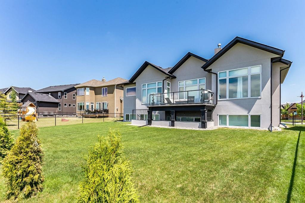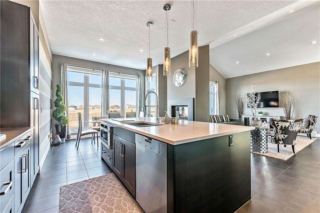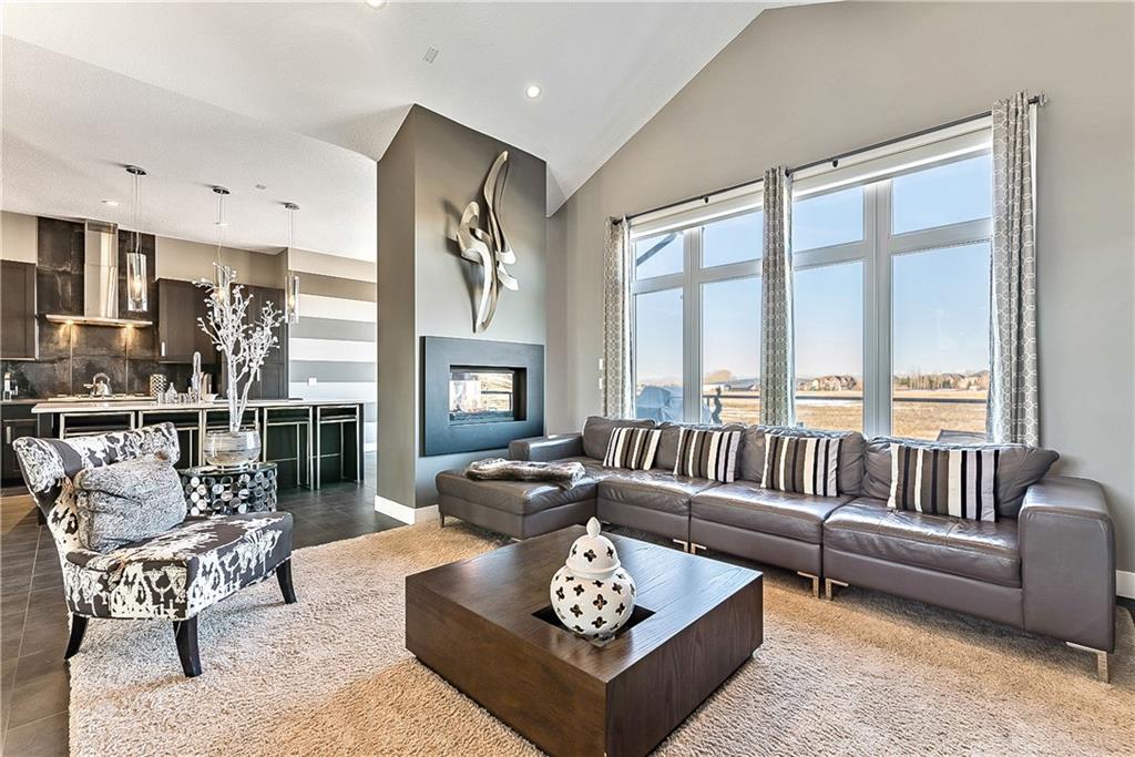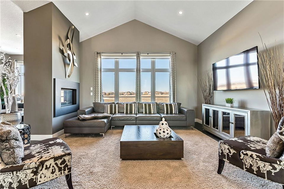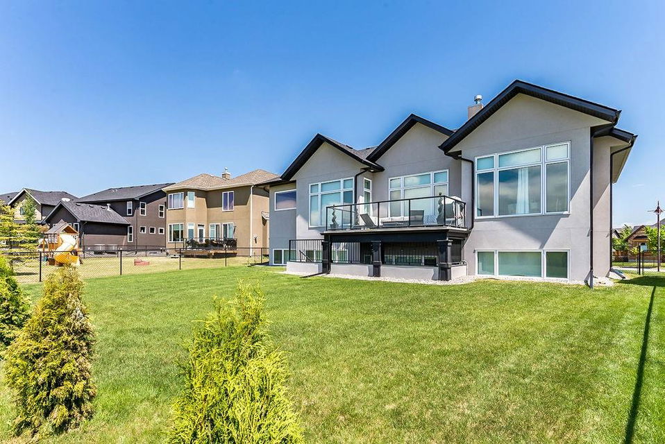 INCREDIBLE VALUE at $150K below what it cost to build! LUXURIOUS bi-level walk-out bungalow with beautiful contemporary spaces steeped in exquisite FINISHING, QUALITY & STYLE THROUGHOUT (see virtual tour via 3D link)! Spacious entrance w statement chandelier & $30k glass staircase railings. Main level w large living room, dual fireplace, spectacular over-sized windows with MOUNTAIN VIEWS, vaulted ceilings, stunning gourmet kitchen w Miele and Fisher & Paykel appliances, large office/den, amazing master bedroom w huge ensuite & walk-in dressing room. Lower walk-out level w large rec room, gym, two more bedrooms, study, bathroom and storage room. A/C, custom windows with triple panes for added insulation … plus OVERSIZED TRIPLE GARAGE w extra height & potential for mezzanine or car lift! Large deck, hot tub, and low maintenance yard. One of the BEST HOMES in one of the BEST NEIGHBOURHOODS in Okotoks!
