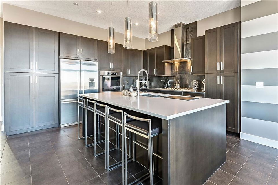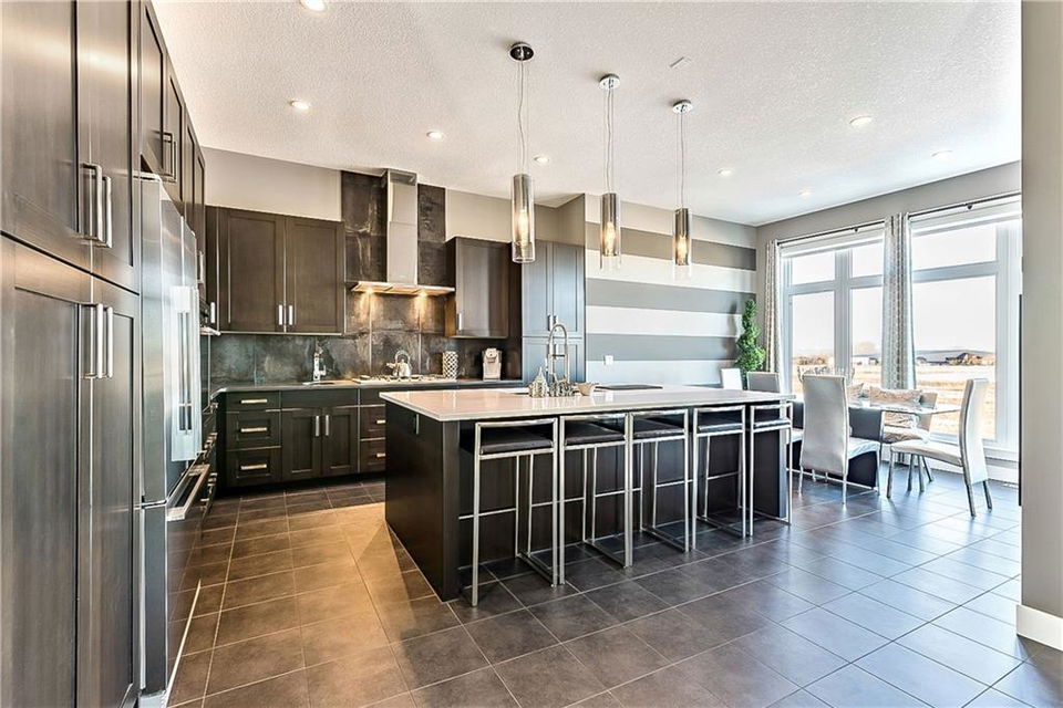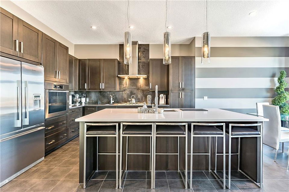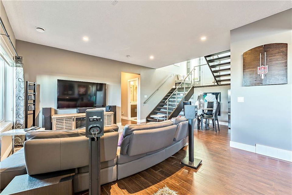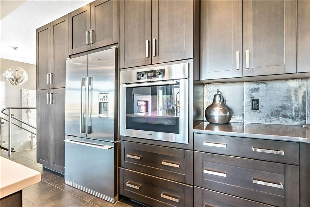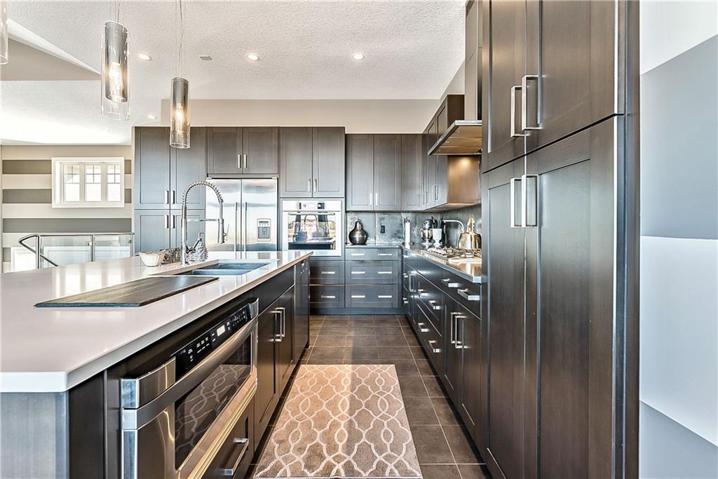 INCREDIBLE VALUE at $150K below what it cost to build! LUXURIOUS bi-level walk-out bungalow with beautiful contemporary spaces steeped in exquisite FINISHING, QUALITY & STYLE THROUGHOUT (see virtual tour via 3D link)! Spacious entrance w statement chandelier & $30k glass staircase railings. Main level w large living room, dual fireplace, spectacular over-sized windows with MOUNTAIN VIEWS, vaulted ceilings, stunning gourmet kitchen w Miele and Fisher & Paykel appliances, large office/den, amazing master bedroom w huge ensuite & walk-in dressing room. Lower walk-out level w large rec room, gym, two more bedrooms, study, bathroom and storage room. A/C, custom windows with triple panes for added insulation … plus OVERSIZED TRIPLE GARAGE w extra height & potential for mezzanine or car lift! Large deck, hot tub, and low maintenance yard. One of the BEST HOMES in one of the BEST NEIGHBOURHOODS in Okotoks!